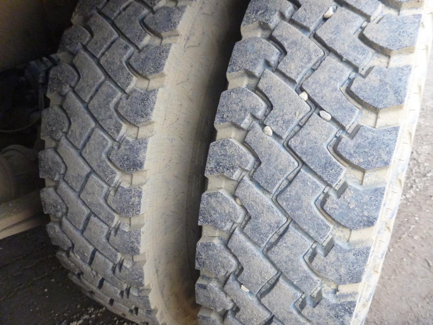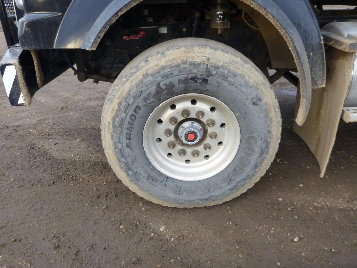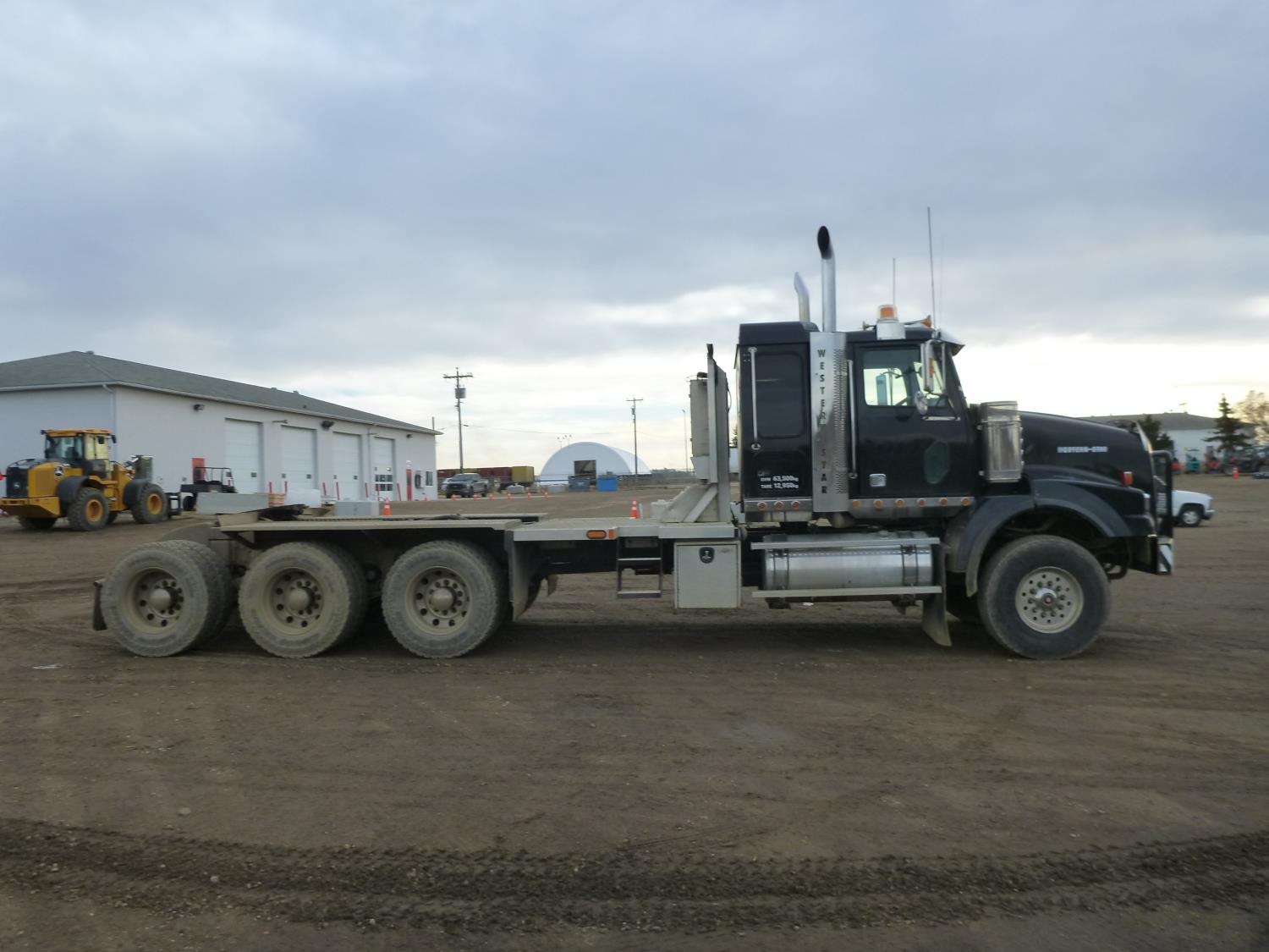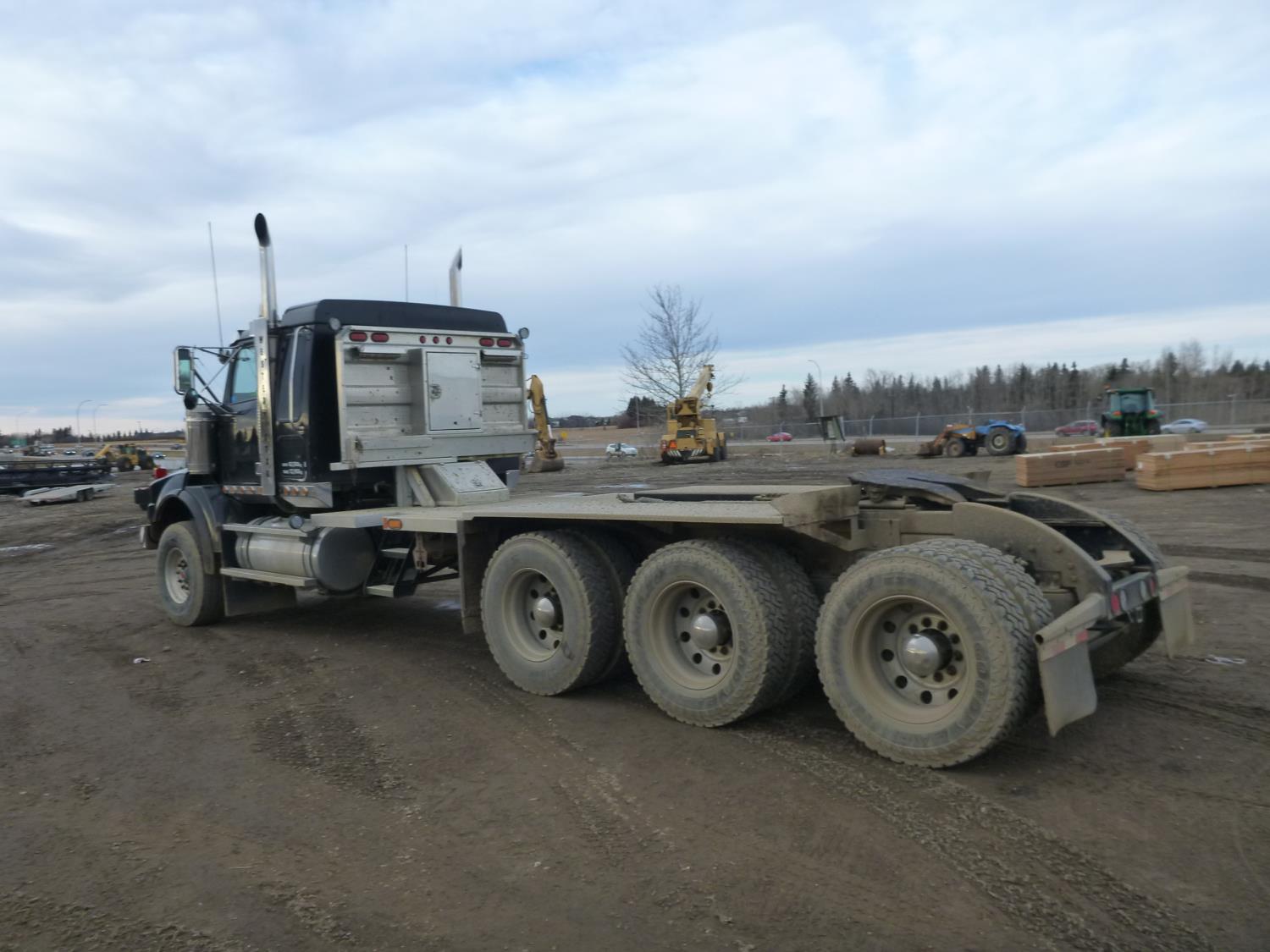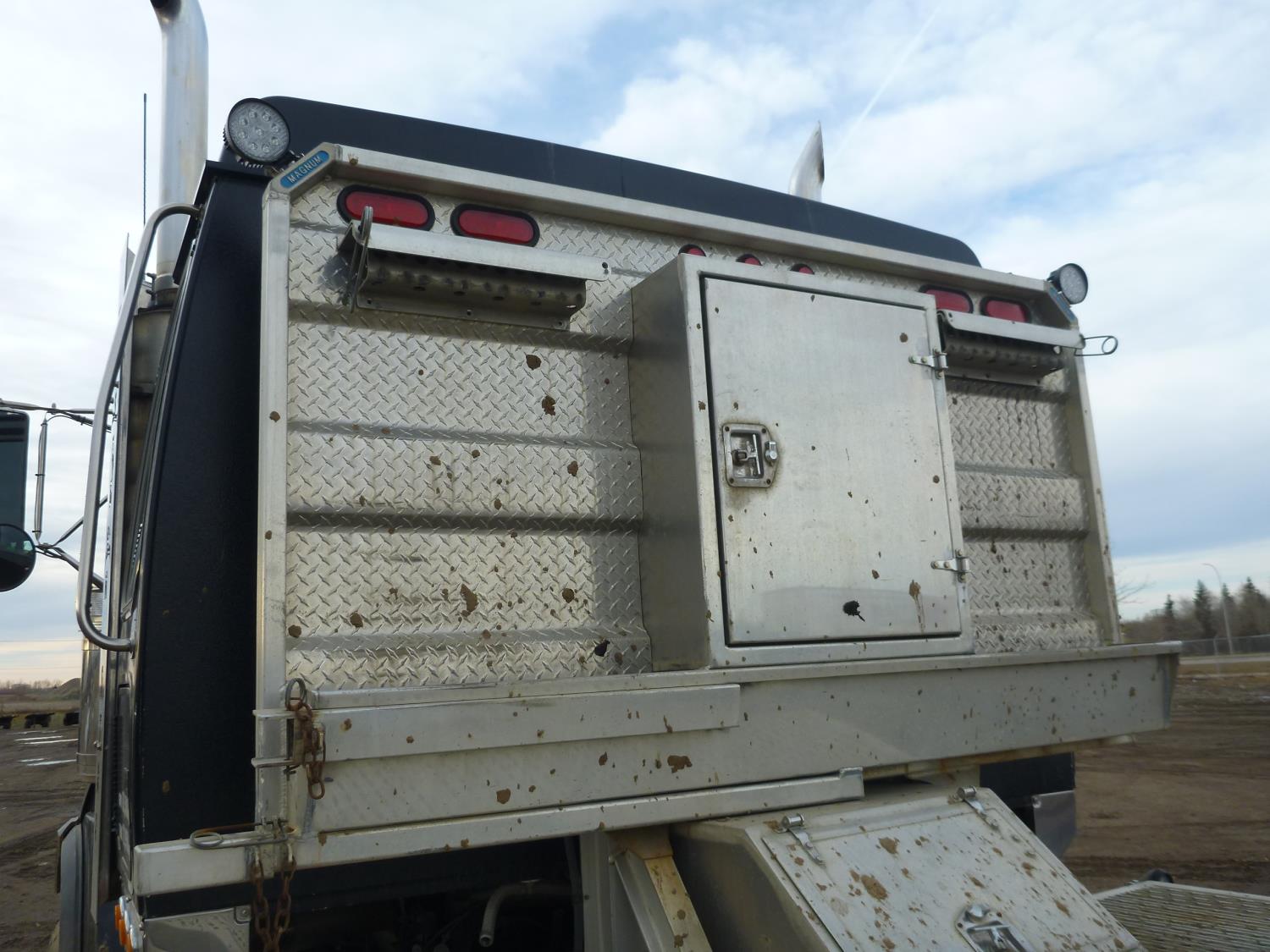 Detroit 14 L 6 cylinder 515 HP diesel engine, engine brake, Eaton Fuller 18 speed manual transmission, flat top 32 inch sleeper, A/C, cruise control, air ride driver seat, radio, stereo, steel moose bumper, aluminum headache rack, aluminum tool boxes, air ride suspension, 20,000 lb front axle, 61,200 lb rear axles, full lockers, 272 inch WB, all aluminum wheels, 425/65R22.5 front tires, 11R24.5 rear tires