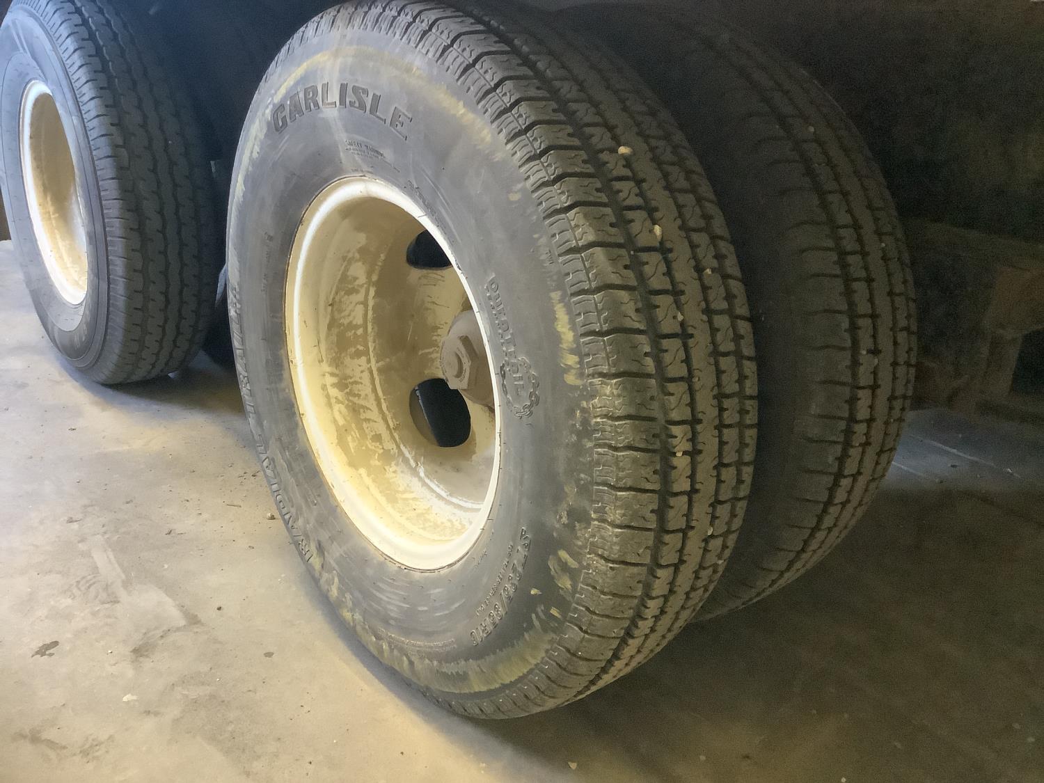 60 inch beaver tails, wood deck, flip over ramps, spring suspension, ball hitch, rub rails, stake pockets, oil bath bearings, electric over hydraulic, in floor D rings, 235/85R16 tires