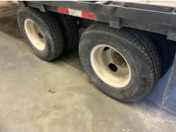 This trailer has tandem axles with electric over hydraulic brakes so possibly they are 12,000 or 15,000 LB axles. The serial number states ten thousand pound but you can’t get electric over hydraulic brakes on that size of a axle. Tires are real good. Former customer moved from Ontario to Alberta.