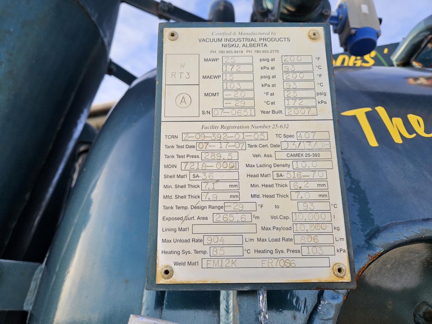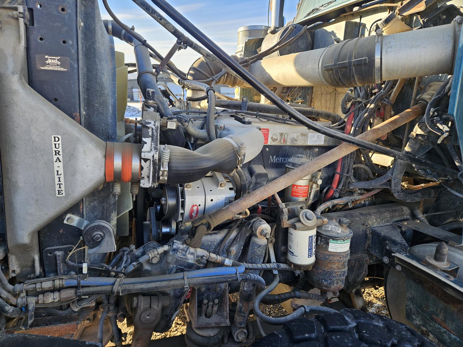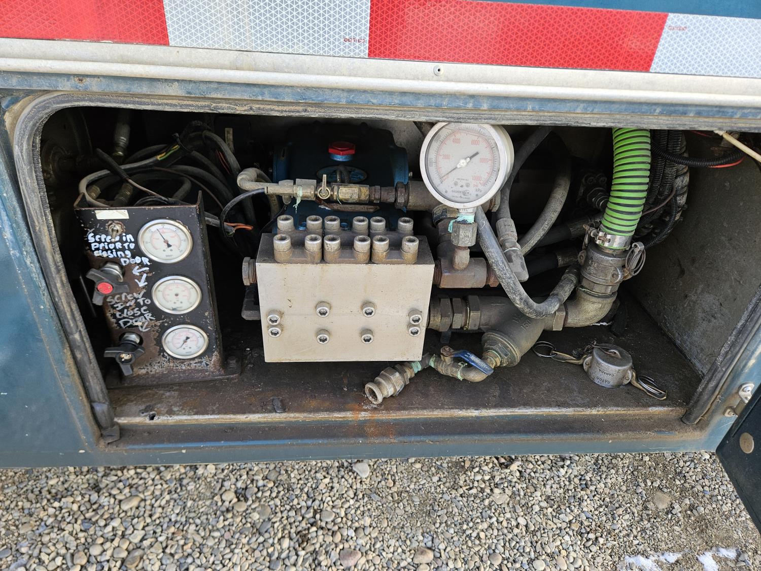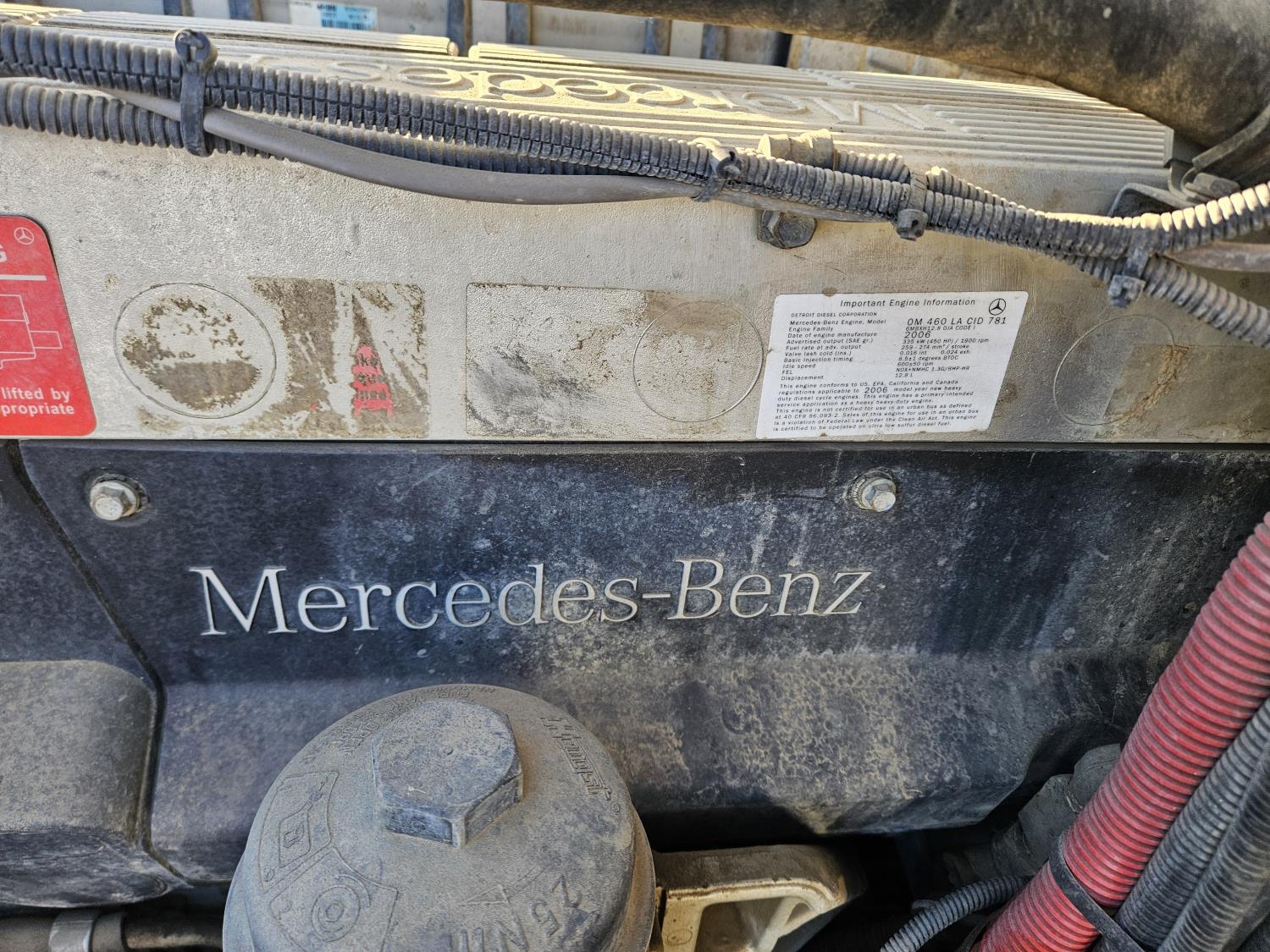 Mercedes Benz MBE 4000 12.8 L 6 cylinder 450 HP diesel engine, engine brake, engine block heater, positive air shutoff, Eaton Fuller 18 speed manual transmission, 32 inch sleeper, A/C, cruise control, air ride seats, radio, hydraulic wet kit, aluminum moose bumper, tool boxes, beacons, Vacuum Industrial Products 10000 liter tank, Hotsy, Hose/Reels, poly tank, wireless remote control, , air ride suspension, 20,000 lb front axle, 52,000 lb rear axles, full lockers, all aluminum wheels, 445/65R22.5 front tires, 11R24.5 rear tires