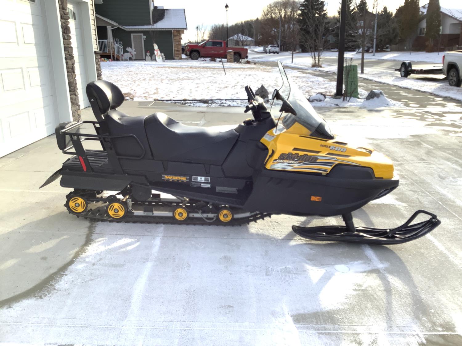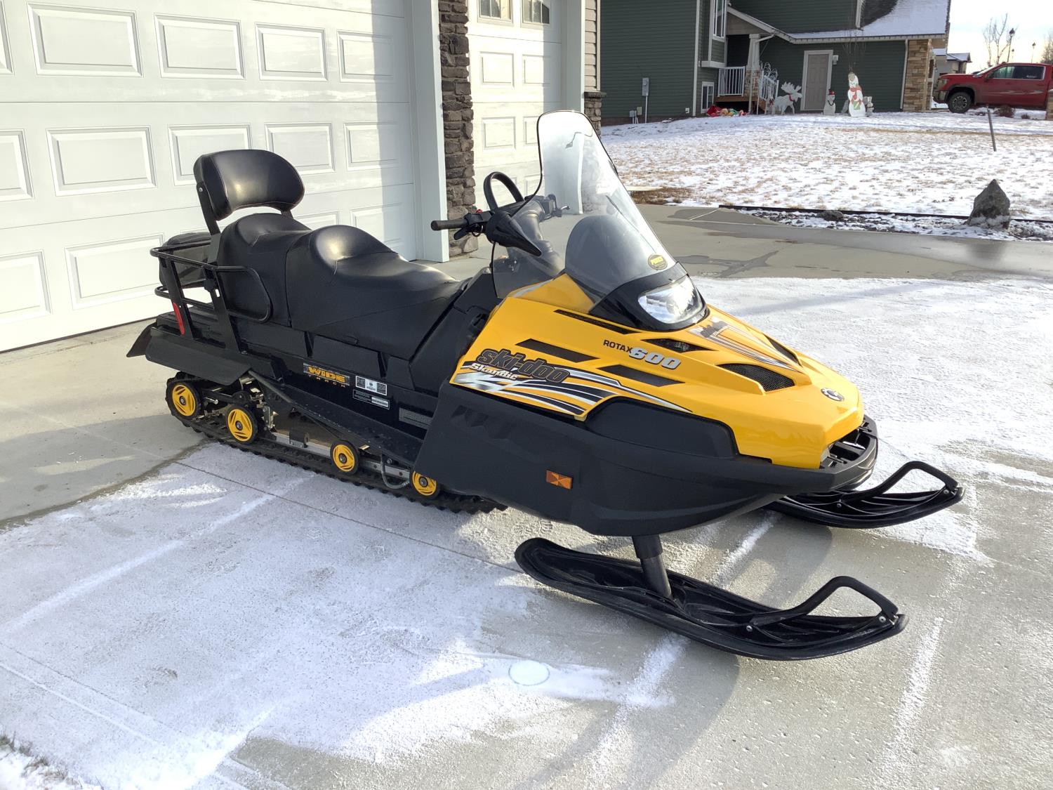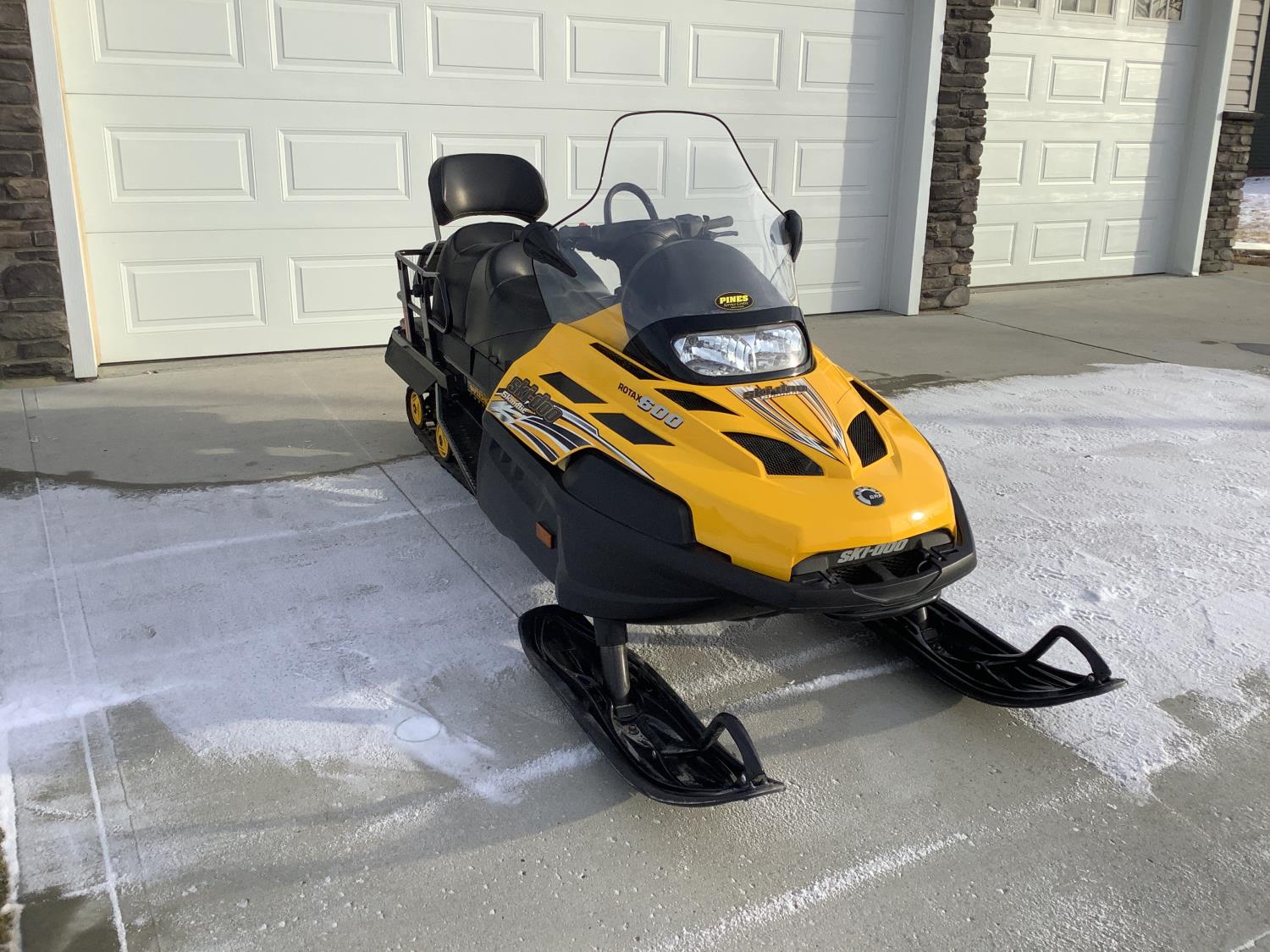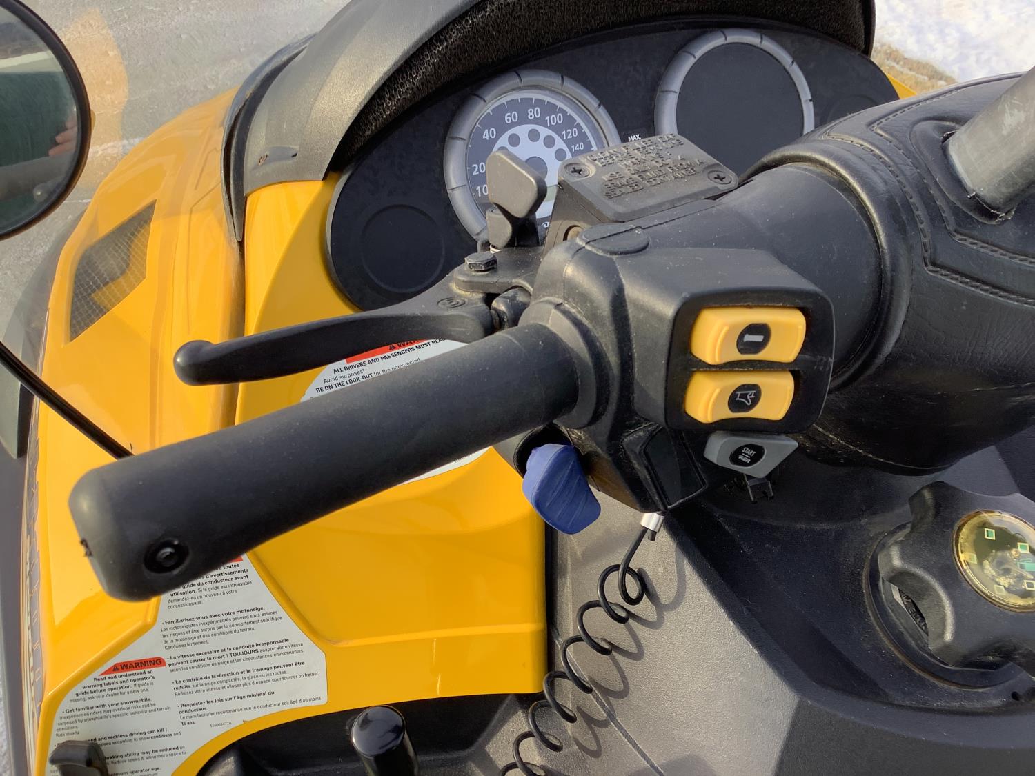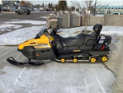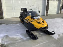 600 cc Rotax liquid cooled engine, electric start, hand and thumb warmers, 20 inch wide track, rear tow hitch, dual carb, Hi/Lo/ Reverse transmission, removeable 3 passenger seat
