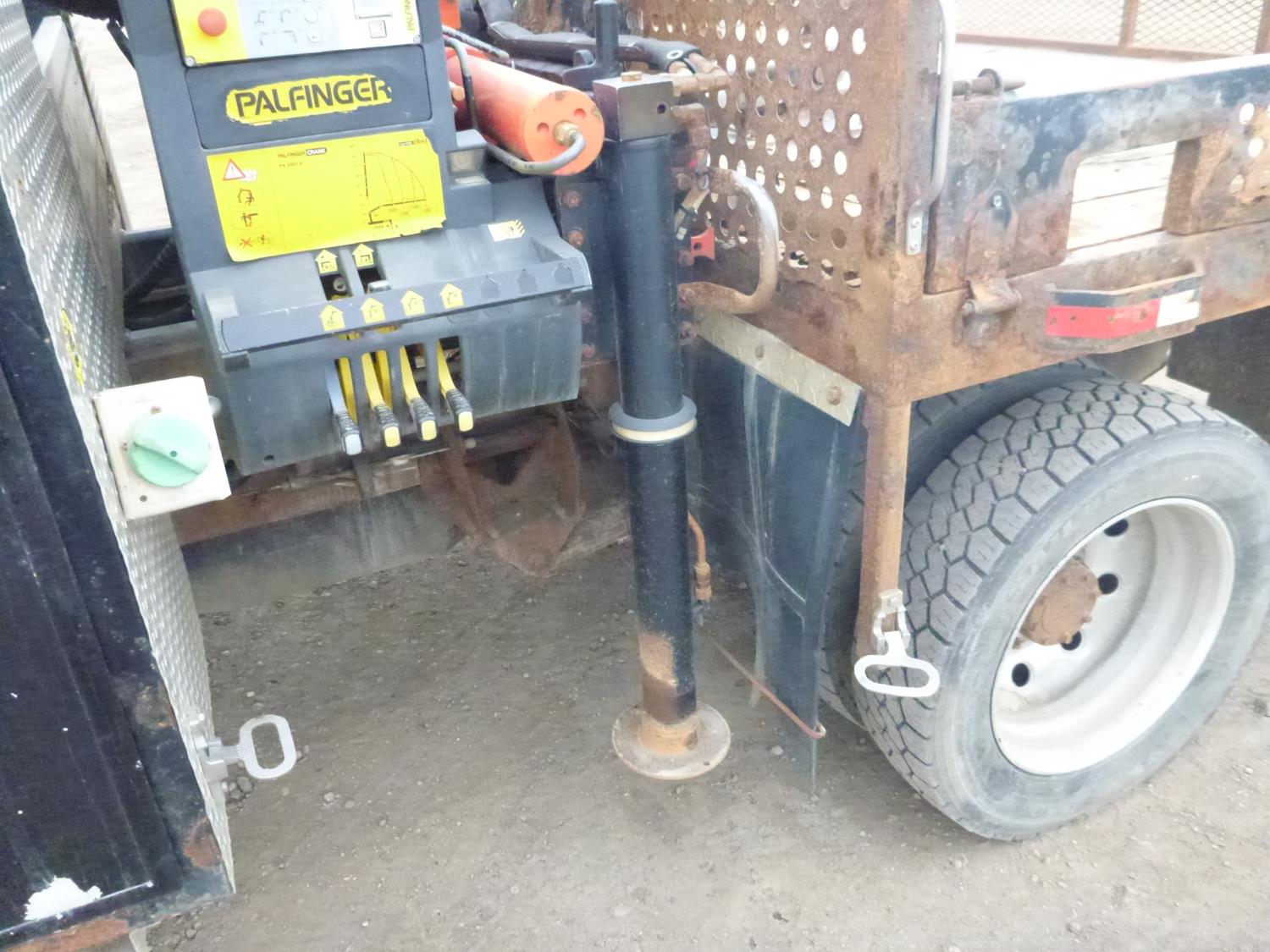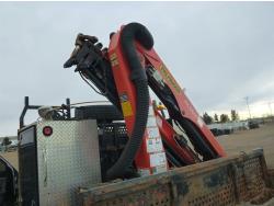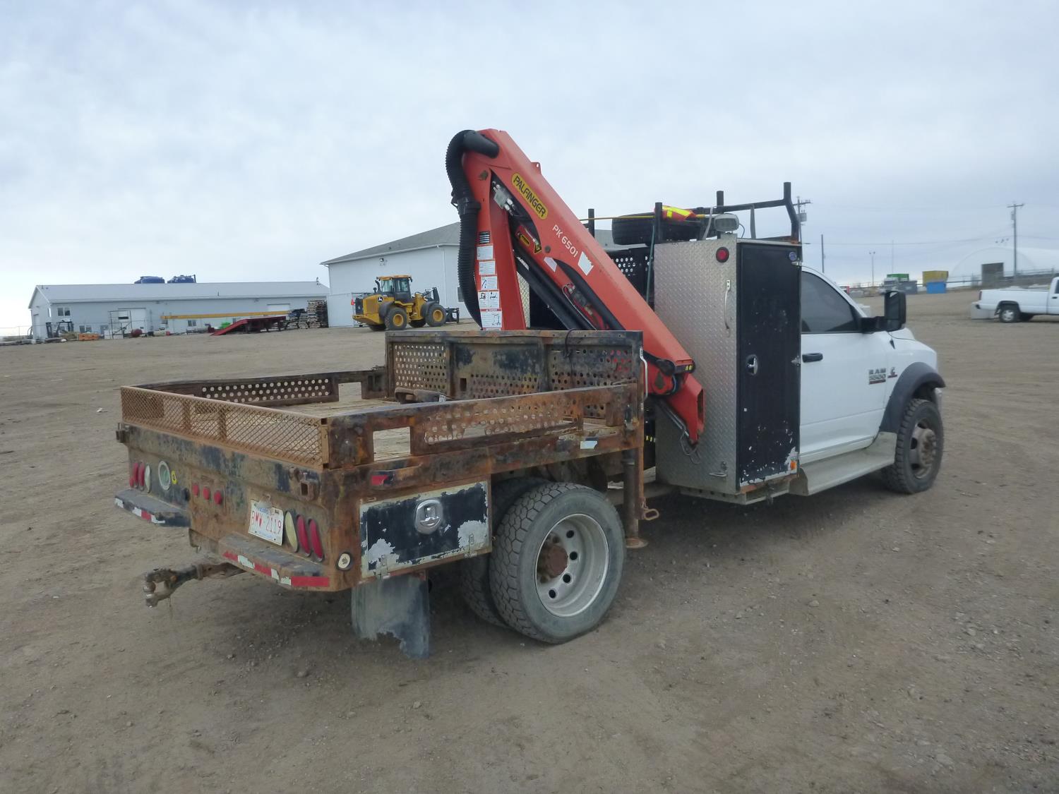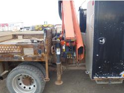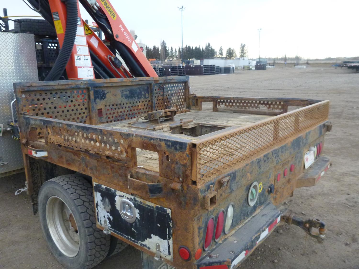Cummins 6.7 L diesel engine, automatic transmission, A/C, P/W, P/L, cruise control, radio, stereo, running boards, 5th wheel pin hitch, aluminum tool boxes, 6 ft deck, beacons, saddle boxes, Palfinger PK6501 3 section knuckle front mount crane, outriggers, 225/70R19.5 tires