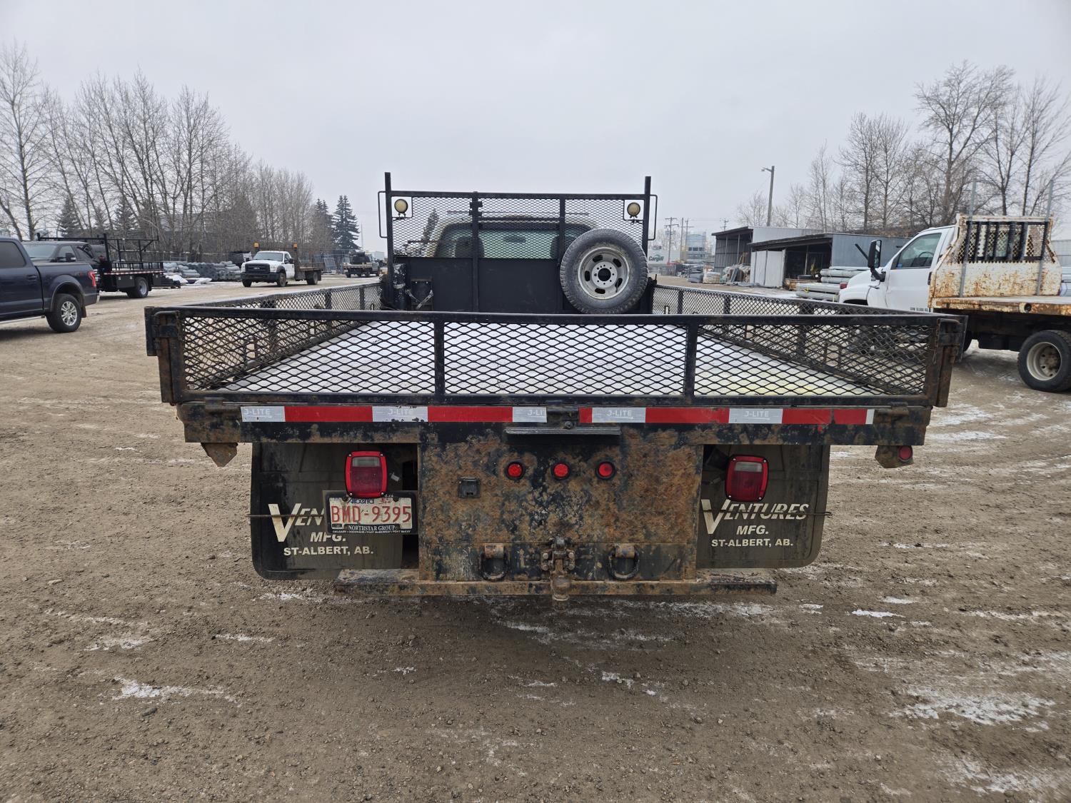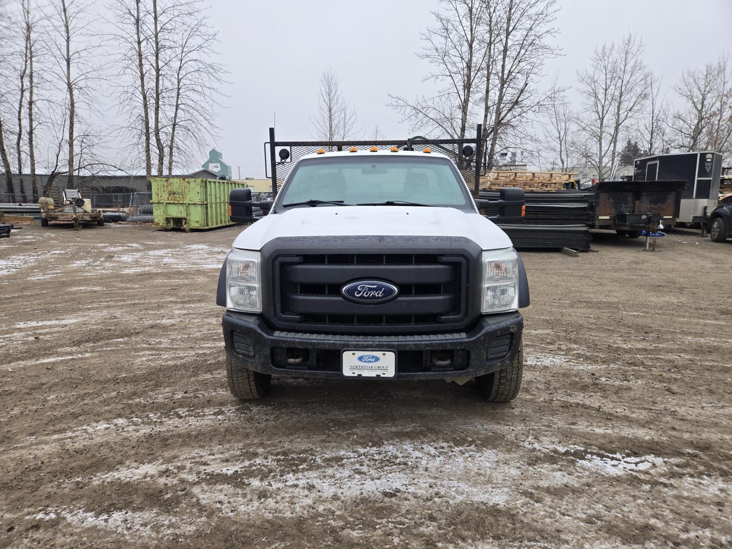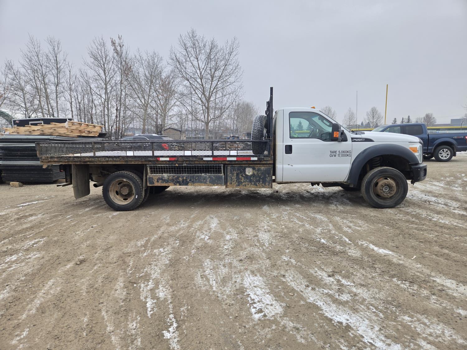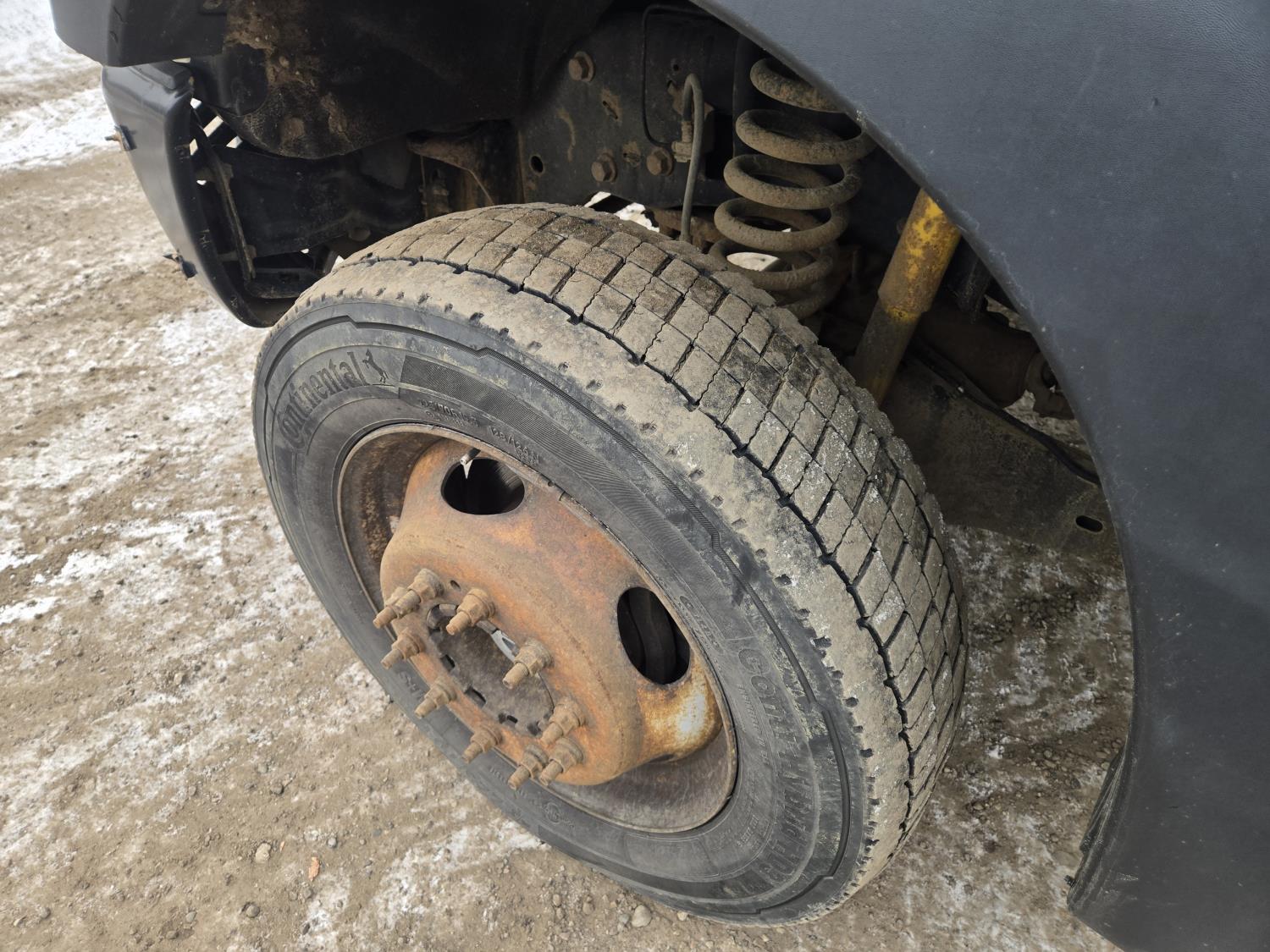 Ford 6.8 L V10 gas engine, automatic transmission, A/C, P/W, P/L, 8 ft 6 inch x 15 ft deck, 12" expanded metal fold down sides, under deck storage boxes, pintle trailer hitch, 4X4, 225/70R19.5 tires