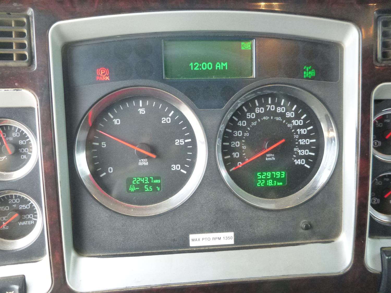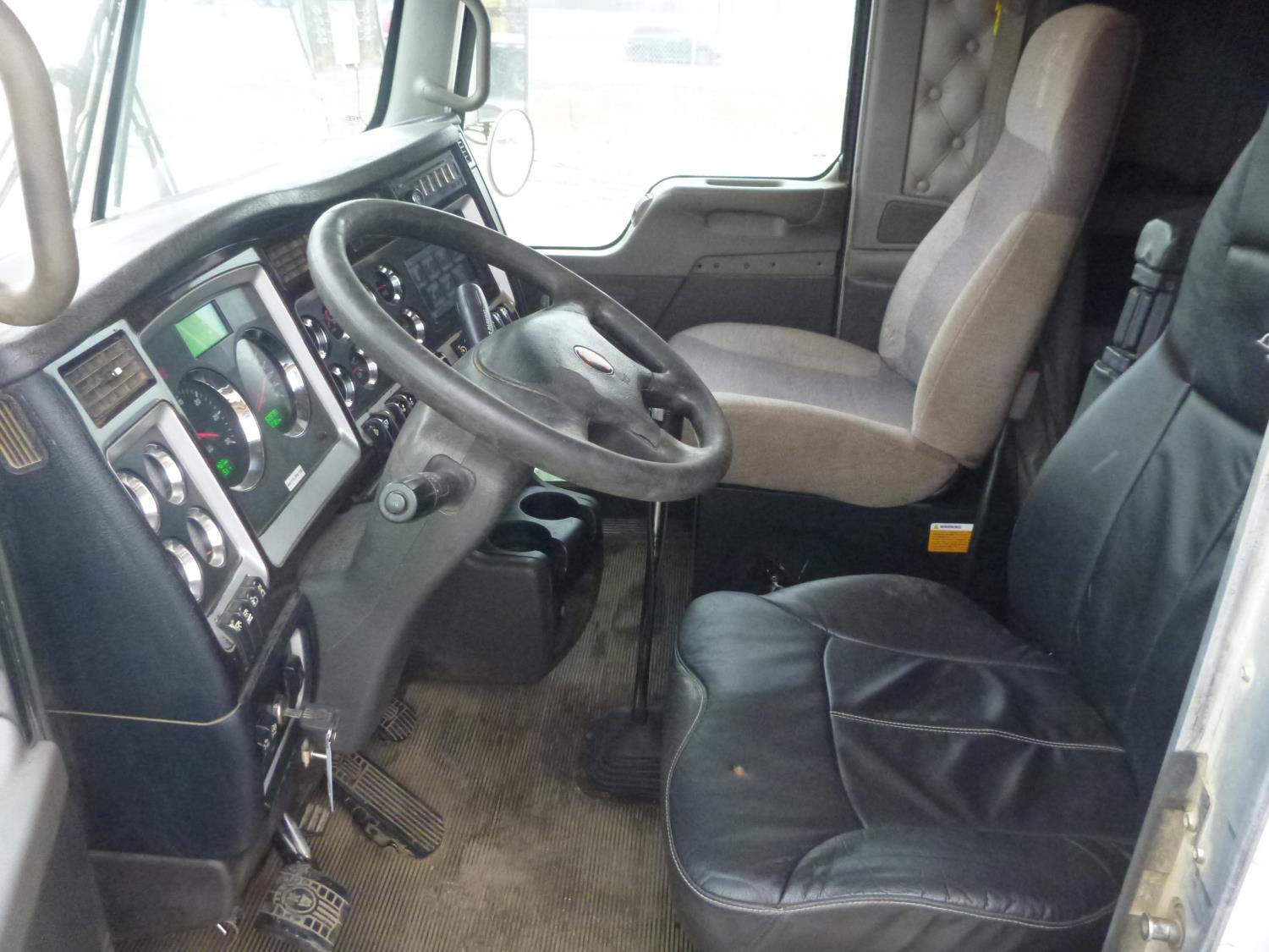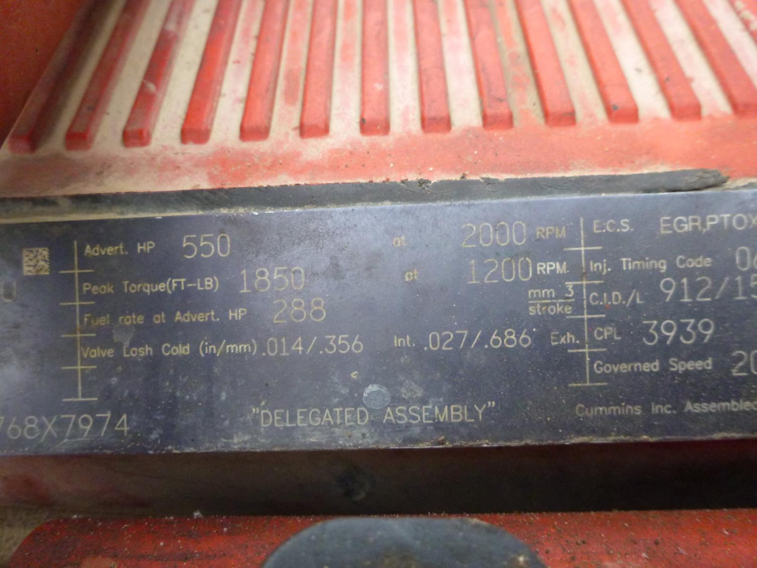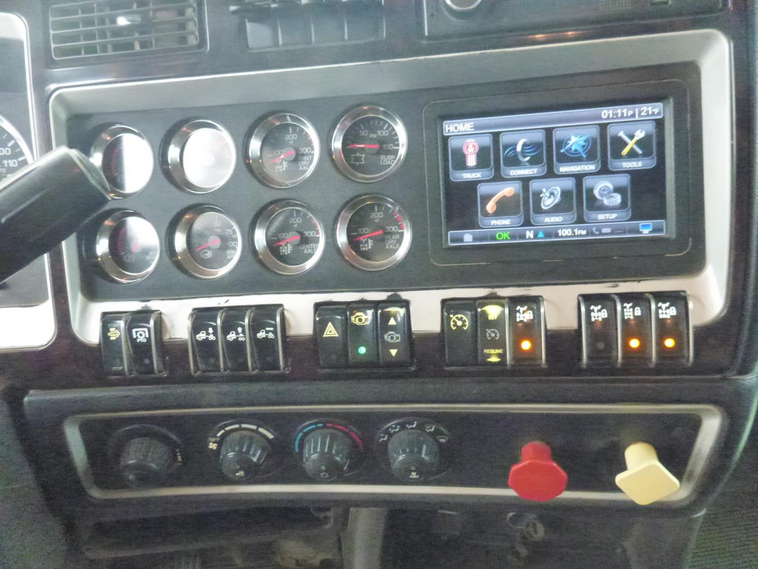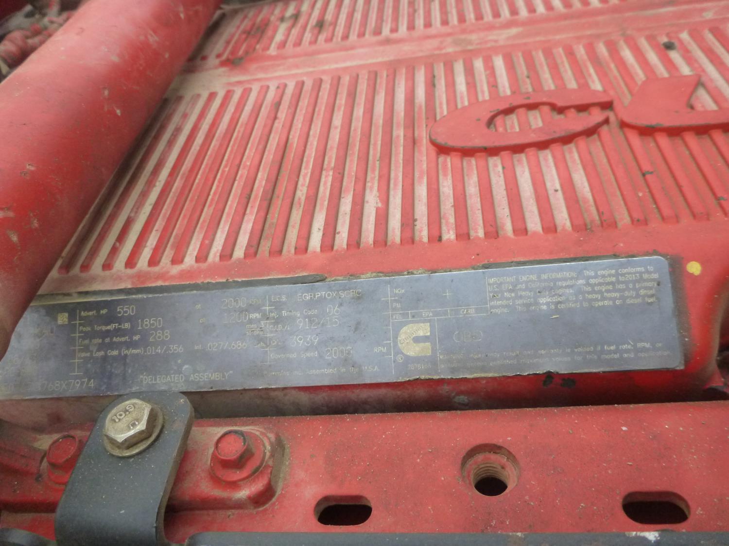 Cummins ISX15 550 HP diesel engine, engine brake, emissions deleted, Eaton Fuller RTL018918B 18 speed manual transmission, mid rise 64 inch sleeper, A/C, cruise control, leather interior, air ride driver seat, stereo, hydraulic wet kit, aluminum moose bumper, aluminum headache rack, beacons, air ride cab, air ride suspension, full lockers, 263 inch WB, all aluminum wheels, 385/65R22.5 front tires, 11R24.5 rear tires