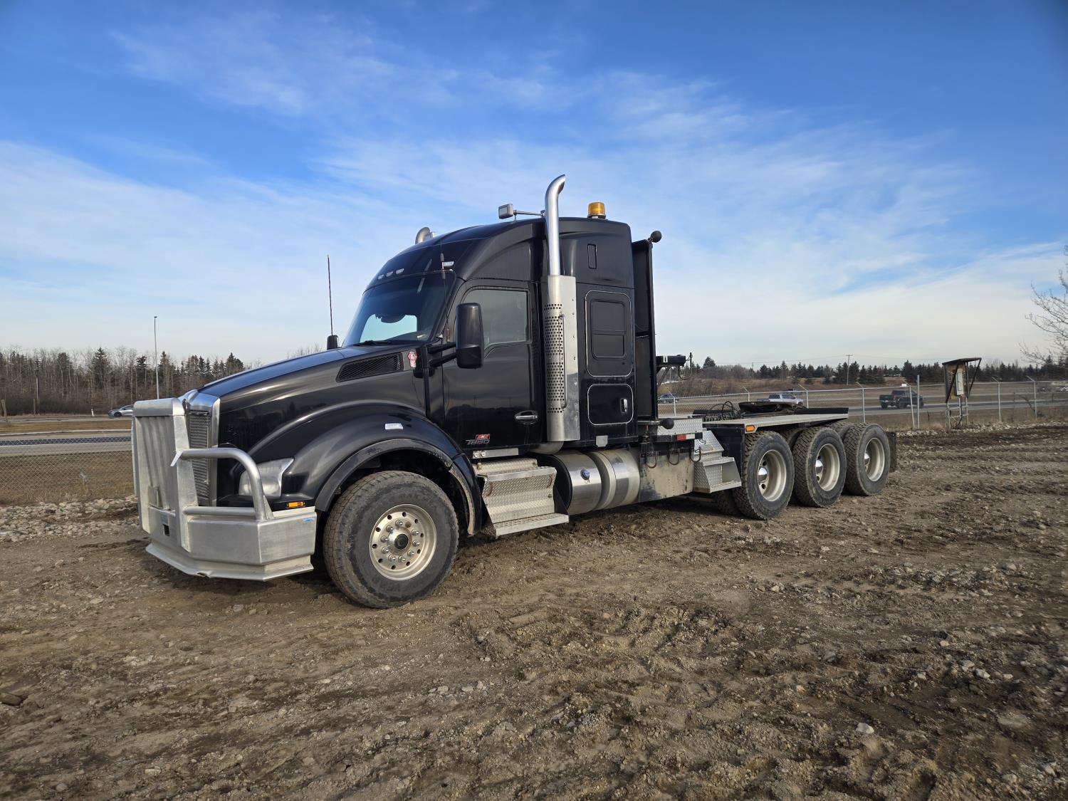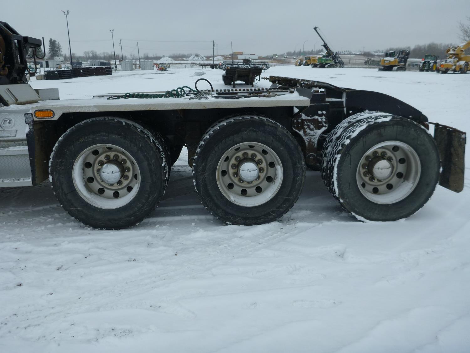 Cummins X15 6 cylinder 565 HP diesel engine, engine brake, Eaton Fuller 18 speed manual transmission, high rise 44 inch sleeper, A/C, cruise control, leather interior, air ride driver seat, radio, stereo, aluminum moose bumper, aluminum headache rack, aluminum tool boxes, beacons, air ride cab, chain holders, Braden hydraulic winch, rear tapered frame with live roll, air ride suspension, 16,000 lb front axle, 71,000 lb rear axles, full lockers, 259 inch WB, all aluminum wheels, 385/65R22.5 front tires, 11R24.5 rear tires