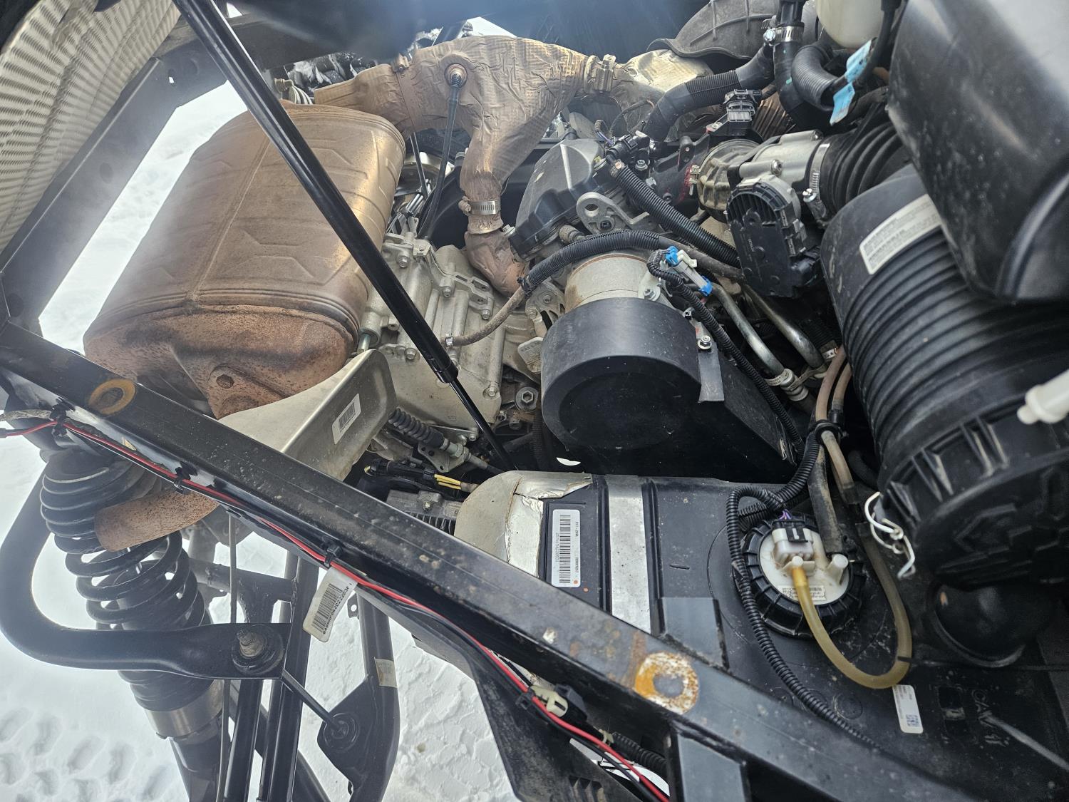 1000 cc fuel injected water cooled engine, automatic transmission, Hi/Lo range, reverse, 4 door enclosed cab, 6 passengers, heater, windshield, P/W, power steering, front winch, manual dump box, receiver hitch, independent suspension, aluminum wheels, 30X10.00R14 tires