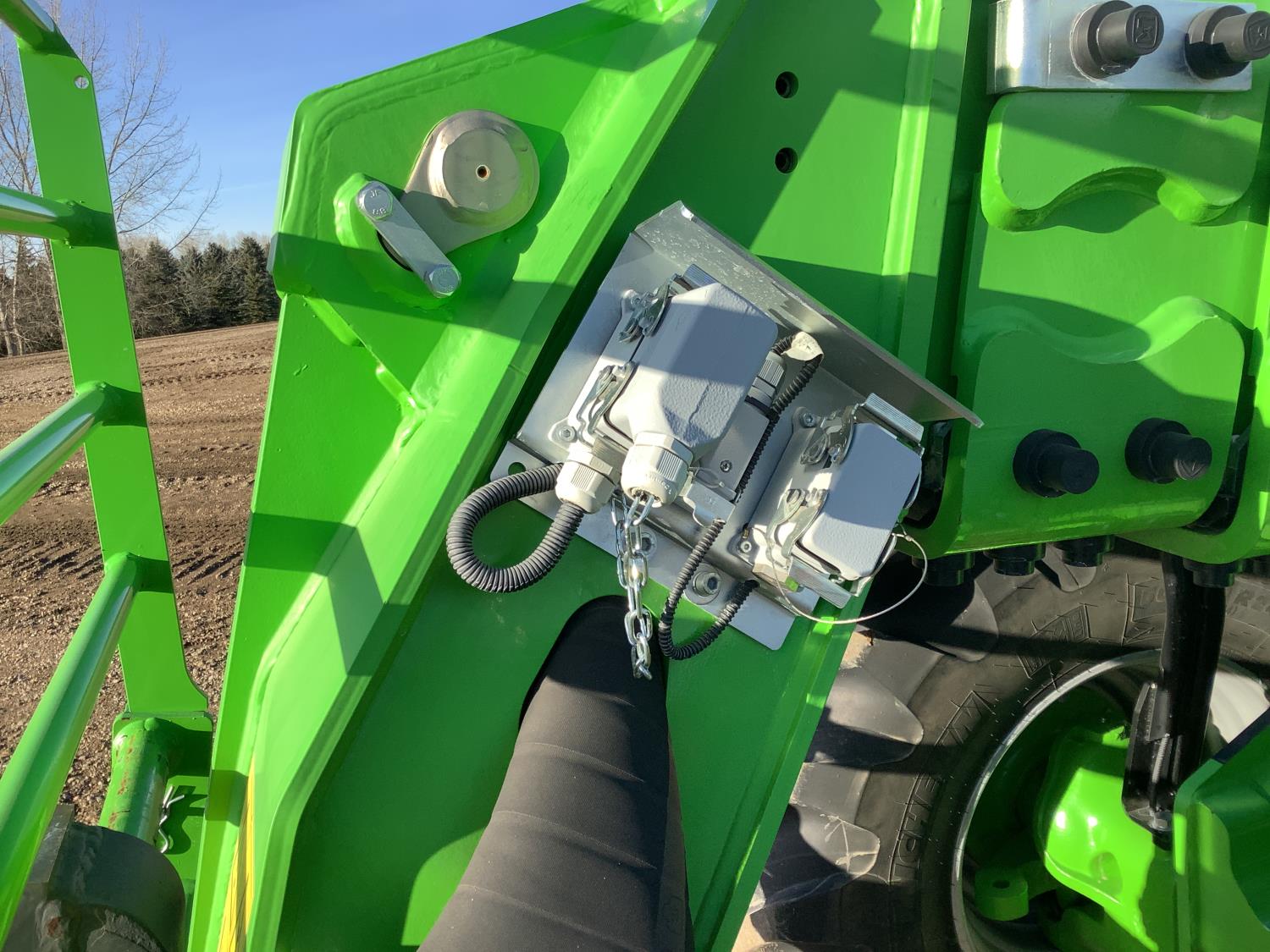 28 ft 10 inch reach, Enclosed cab, A/C, CVT transmission, left hand reverser, pallet forks, 4 rear auxiliary hydraulics, 3 Pt hitch, rear 540/1000 PTO, 500/70R24 tires