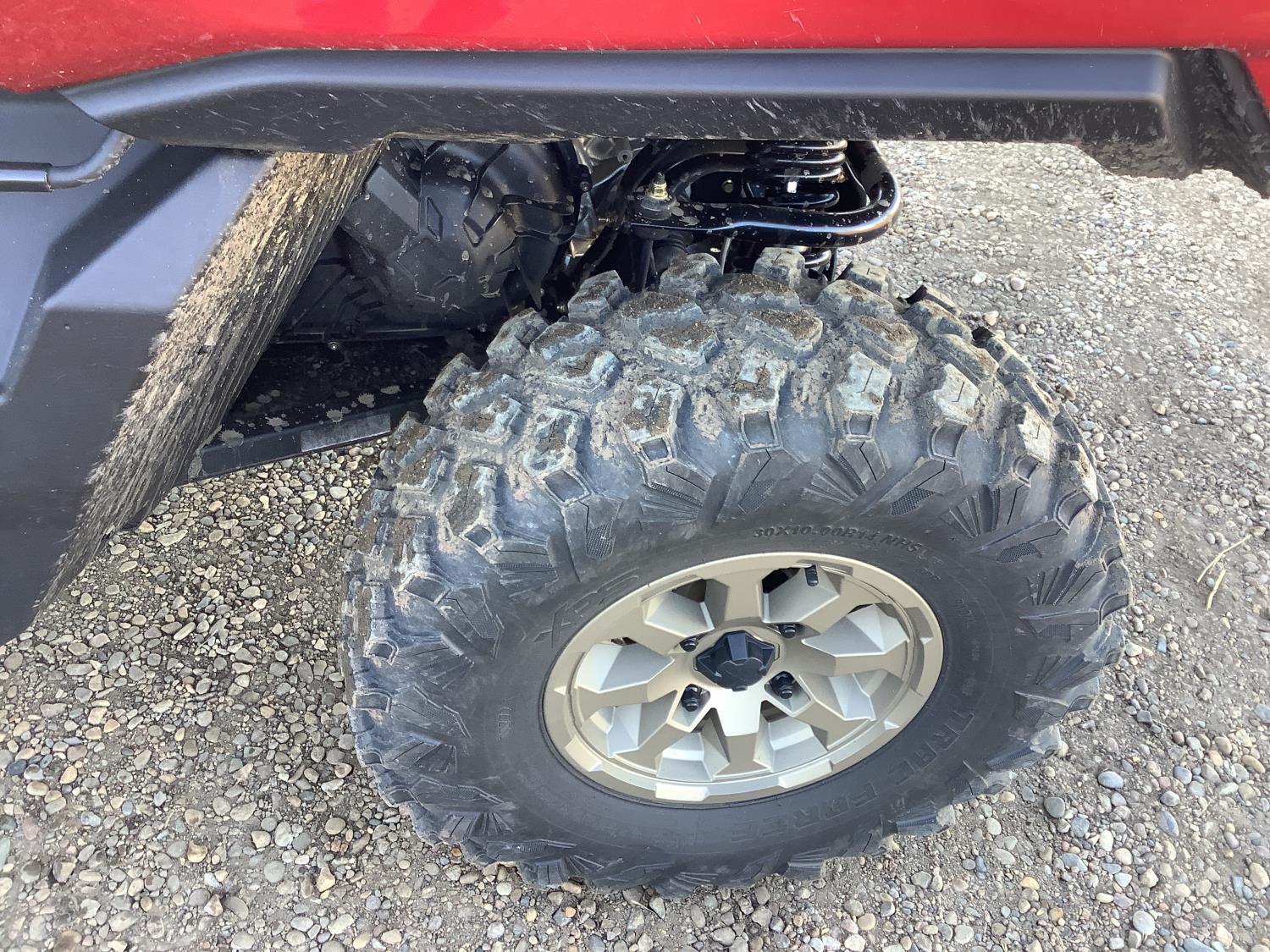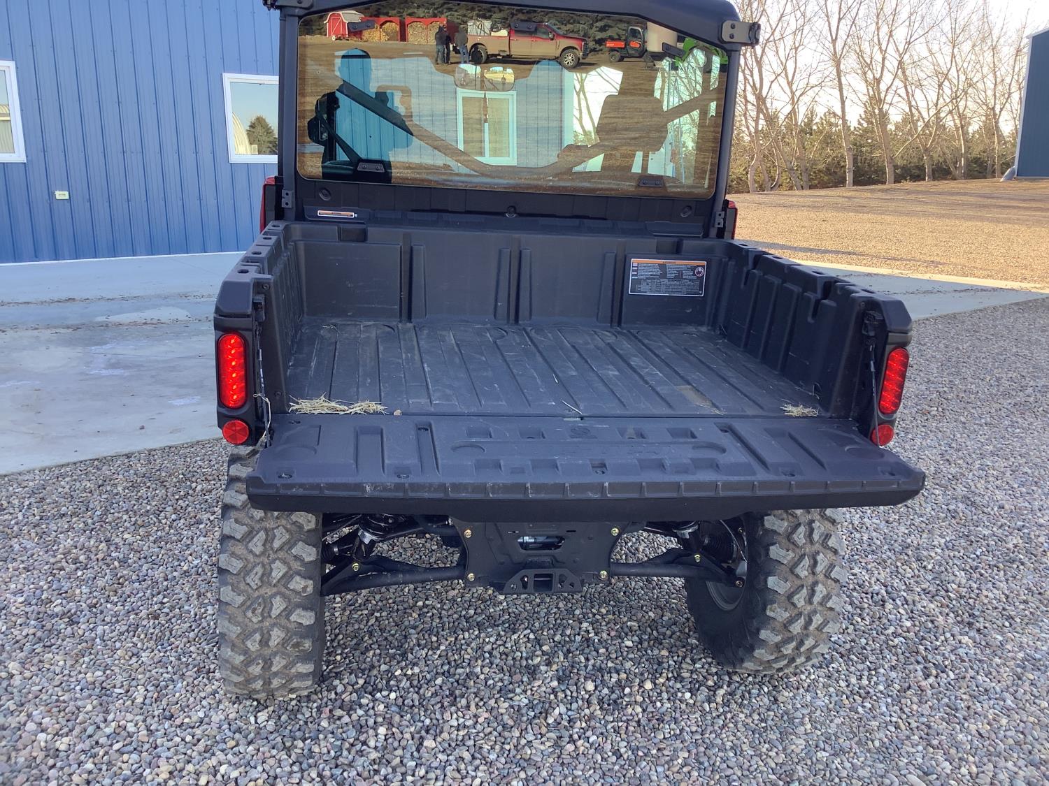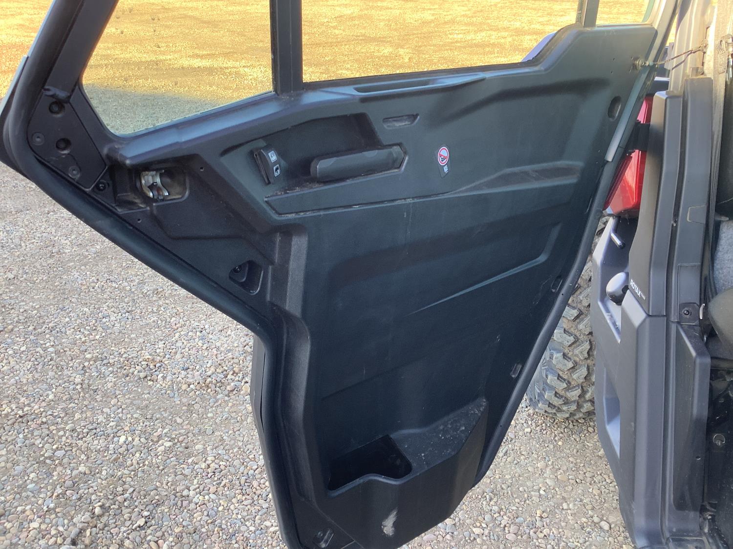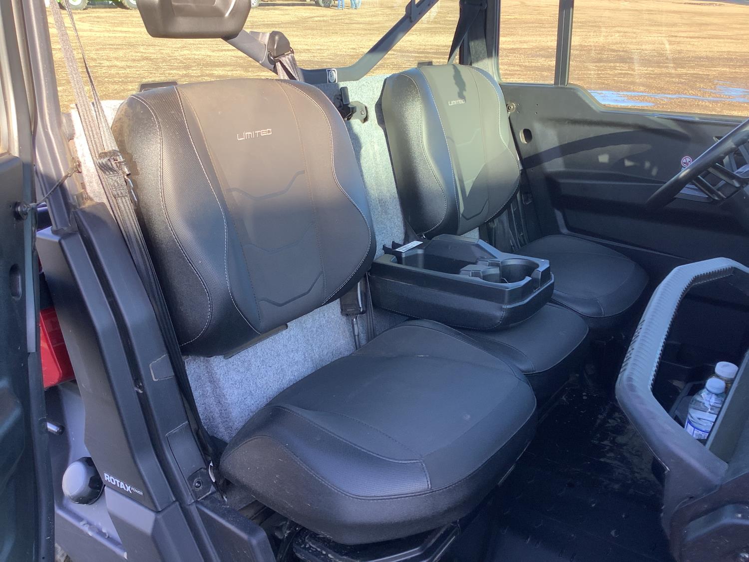 976 cc fuel injected water cooled engine, CVT transmission, 2 door enclosed cab, A/C, heater, P/W, front winch, rear locking differential, front brush guard, heated seats, rear tow hitch, manual tilt box, 30X10.00R14 tires