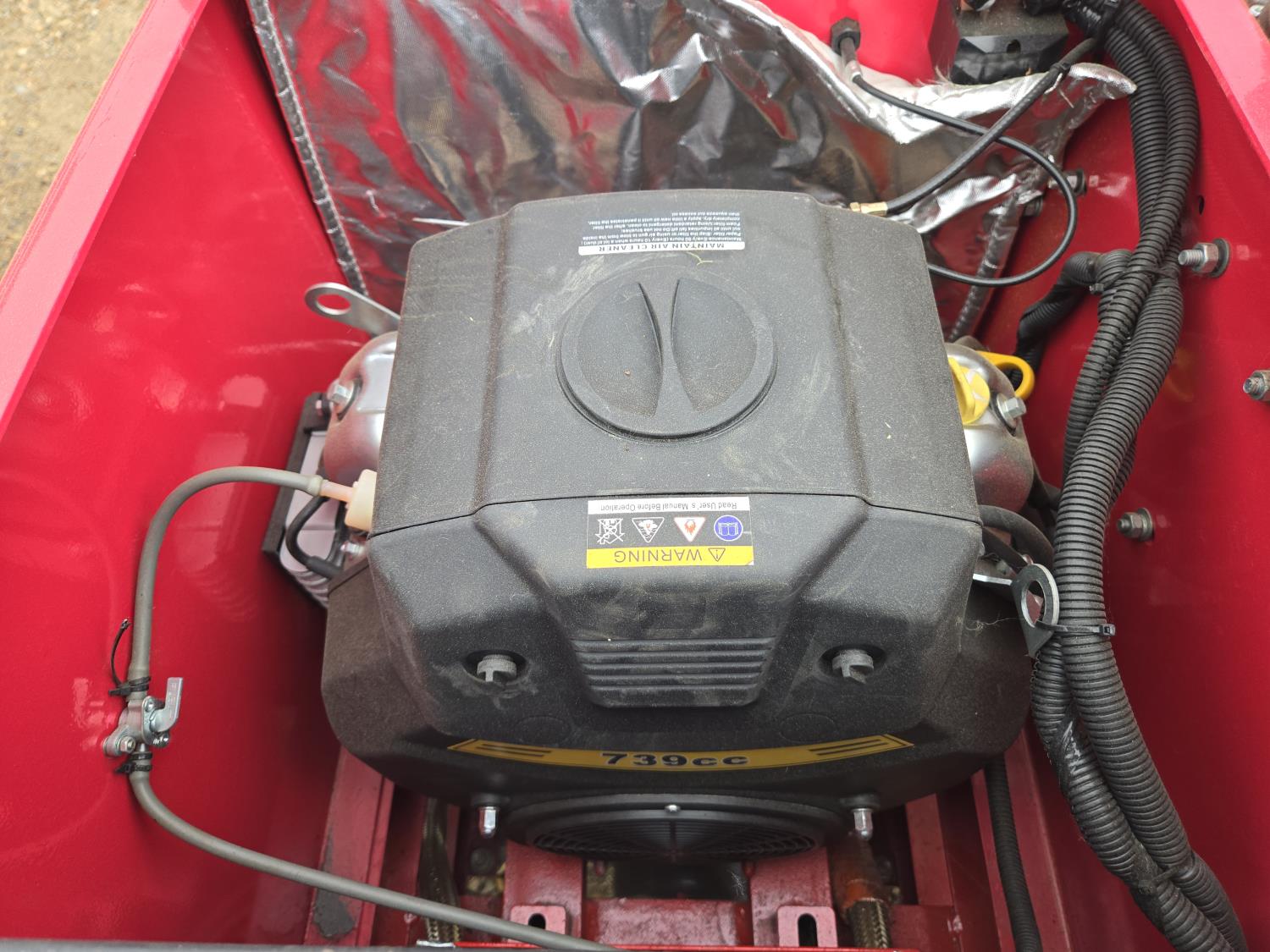 40 inch bucket, 40 inch grapple, 739 cc gas engine, 3 speed standard transmission, 23X8.50-12 tires