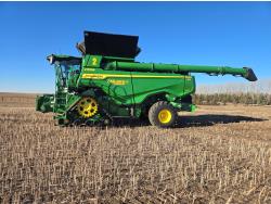 John Deere BP15 15 ft pickup header, fine cut straw chopper, chaff spreader, Ultimate cab package, Signature Edition, Star Fire integrated receiver, Active yield and moister and yield sensors, Pro Drive hydrostatic transmission, 31 ft power folding unloading auger, G5 command Center, powered up grain tank extension, camera, full hopper sensor and more, 750/65R26 rear tires, Warranty started Aug 1, 2025. Basic warranty expires Aug 02, 2026, engine warranty expires Aug 02, 2027, emissions warranty expires Aug 02, 2030, extended power train warranty expires Aug 02, 2029