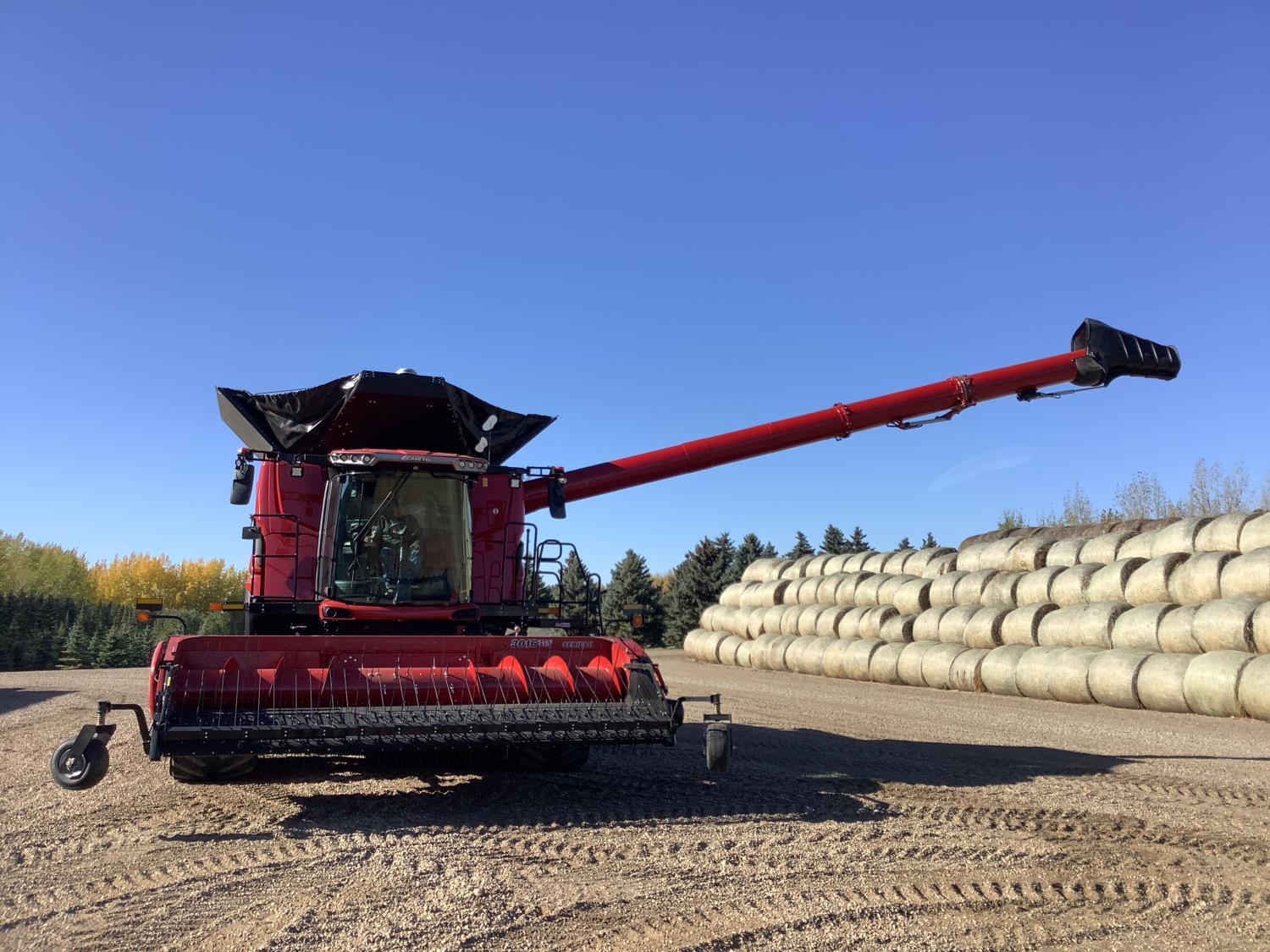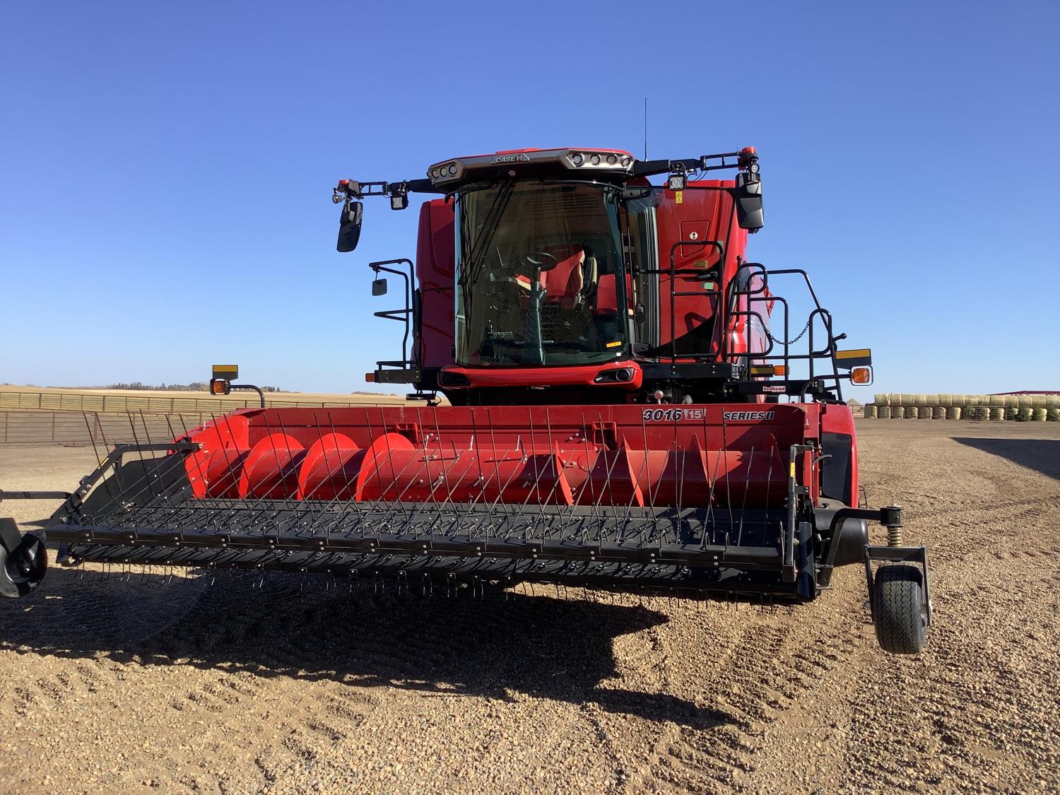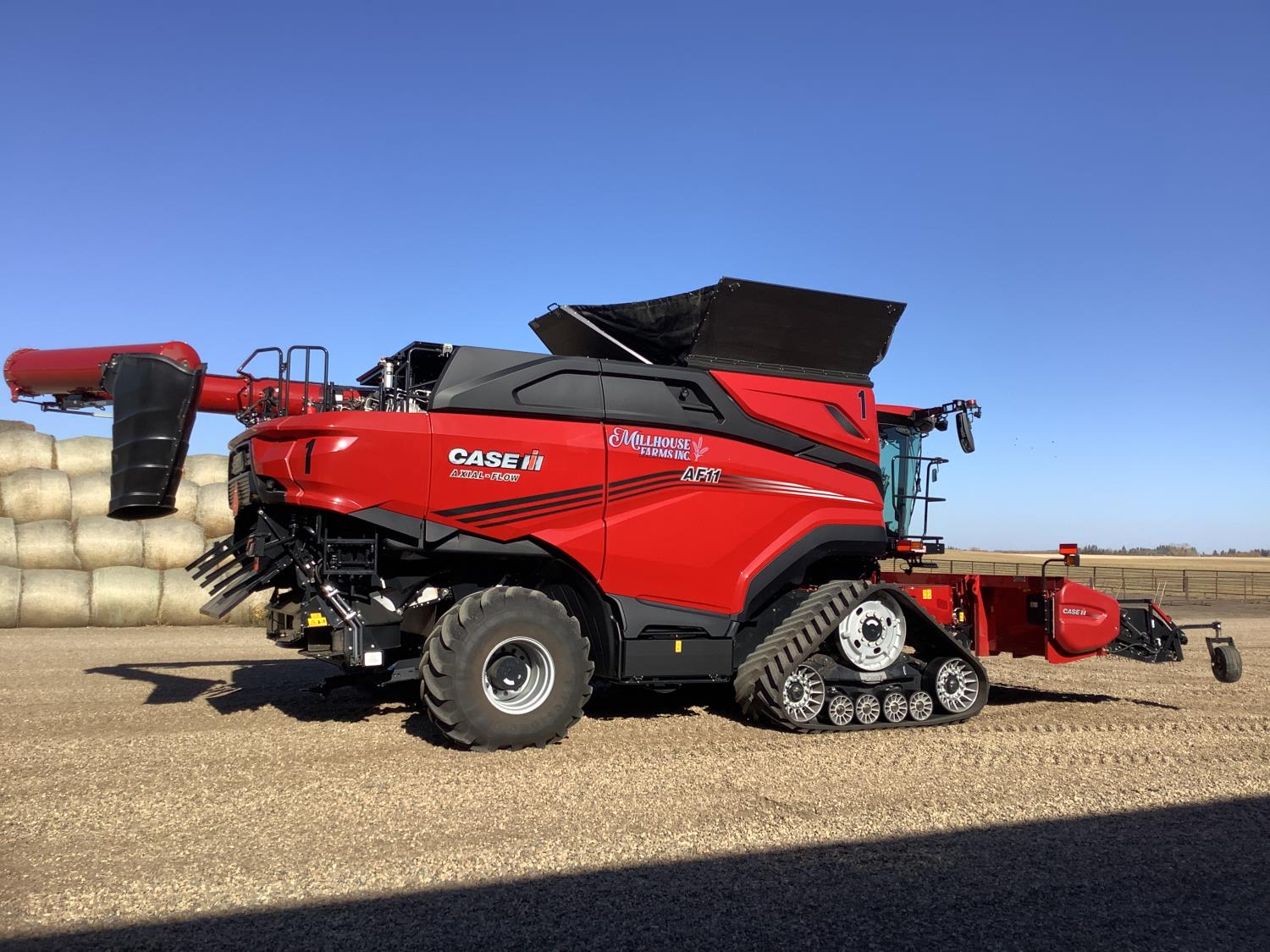 Cab has every option available including climate control seat, buddy seat, radio, AC, heat, every grain monitor that is offered by the manufacturer, 37 ft, Bi-folding unloading auger, AFXL2 Dual Rotor threshing system, Case IH 710 HP engine, rear tow hitch, Case IH 3016 pickup header, chopper, chaff spreader, Case IH track suspension, auto grain bin extension, plus much more. 291 engine and 217 separator hrs. Warranty started in August 2025.