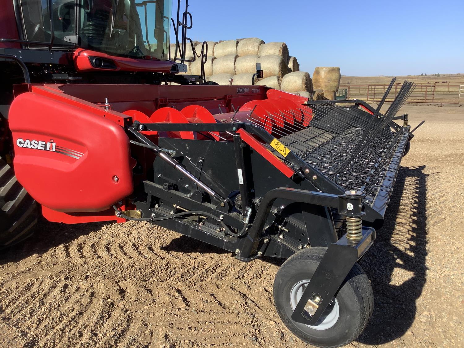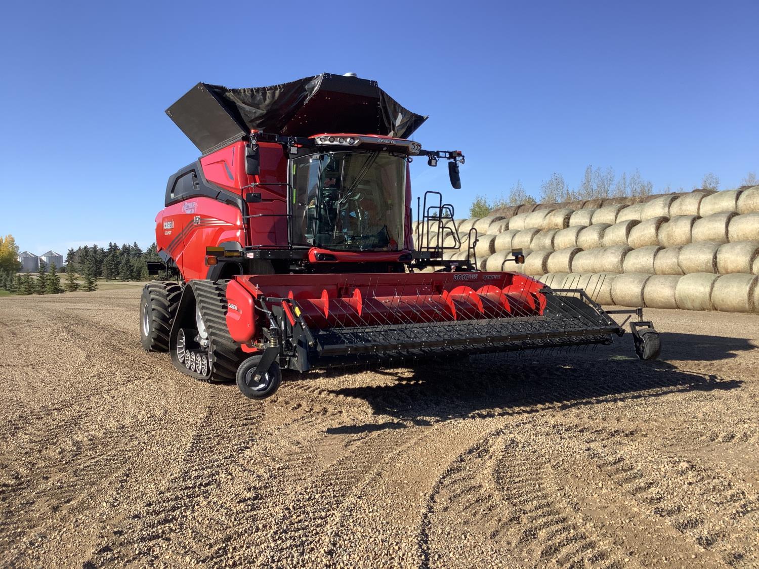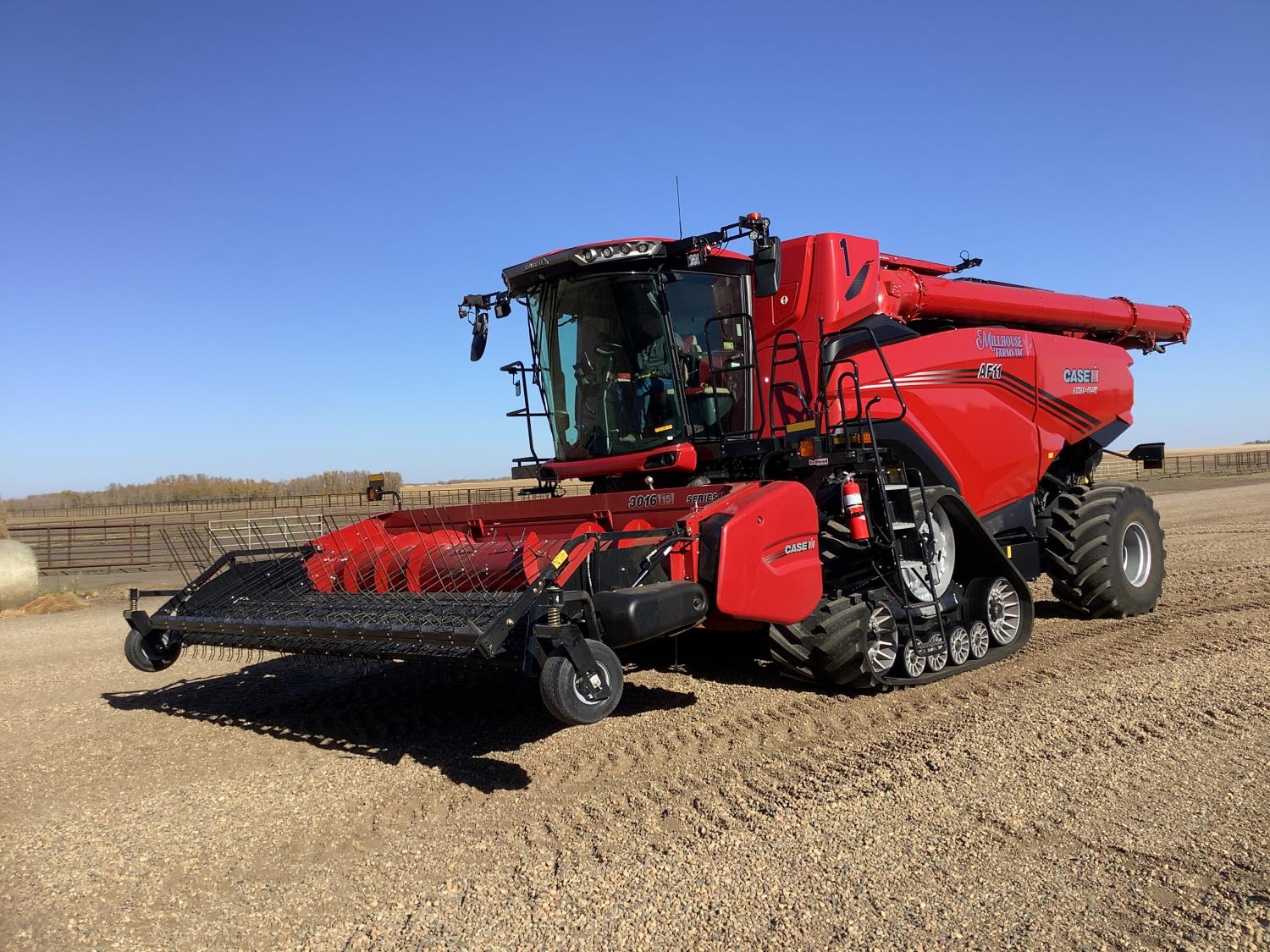 Cab has every option available including climate control seat, buddy seat, radio, AC, heat, every grain monitor that is offered by the manufacturer, 37 ft, Bi-folding unloading auger, AFXL2 Dual Rotor threshing system, Case IH 710 HP engine, rear tow hitch, Case IH 3016 pickup header, chopper, chaff spreader, Case IH track suspension, auto grain bin extension, plus much more. 291 engine and 217 separator hrs. Warranty started in August 2025.