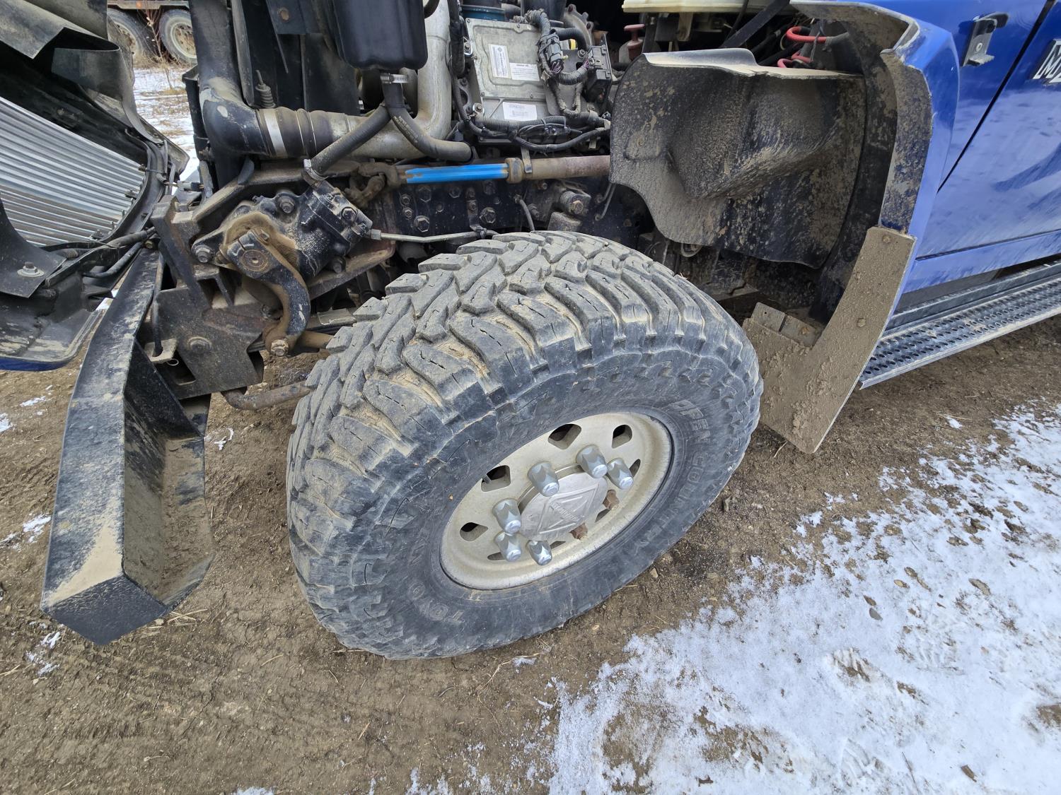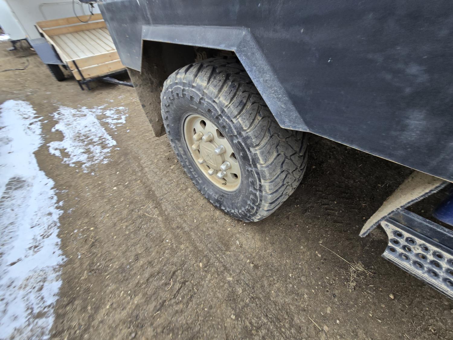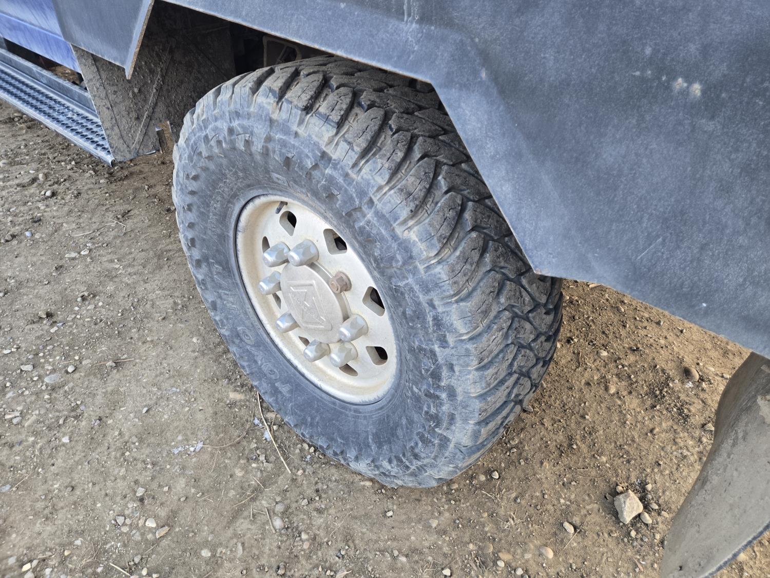 6 liter V8 diesel engine, 5 speed Allison transmission, custom deck with 5TH wheel and fuel tank, original 7 ft box with tonneau cover and fuel tank, 40X15.5R20 Tires