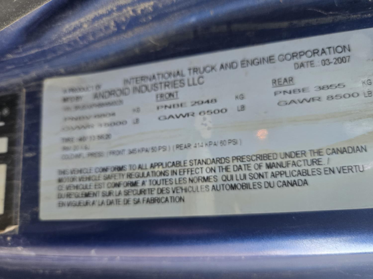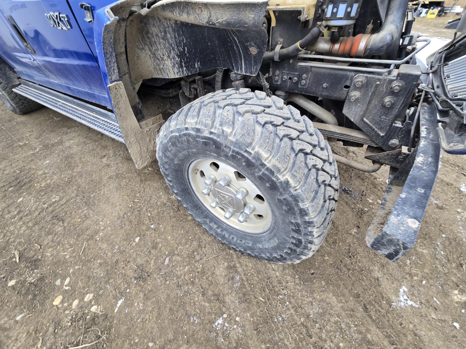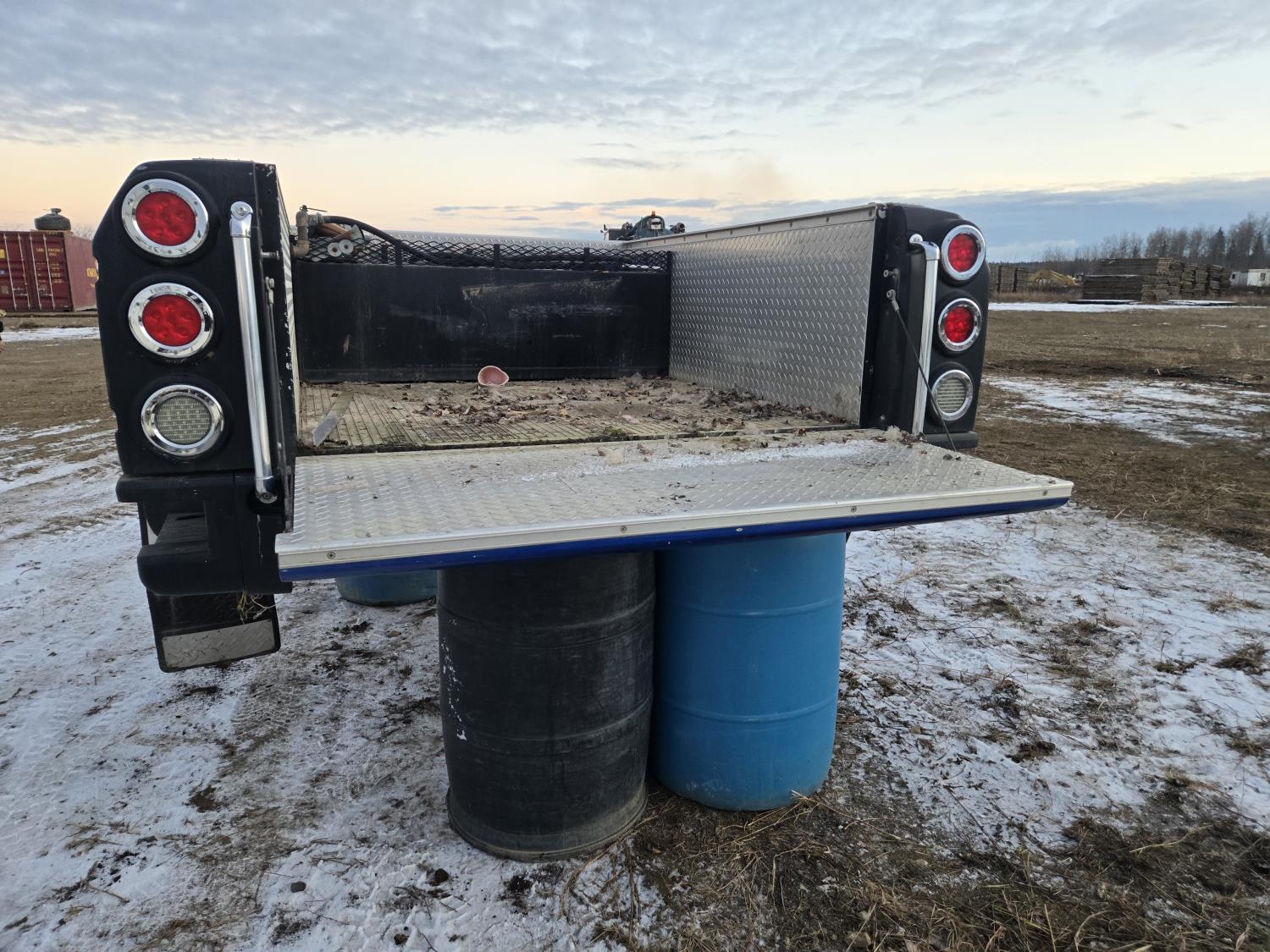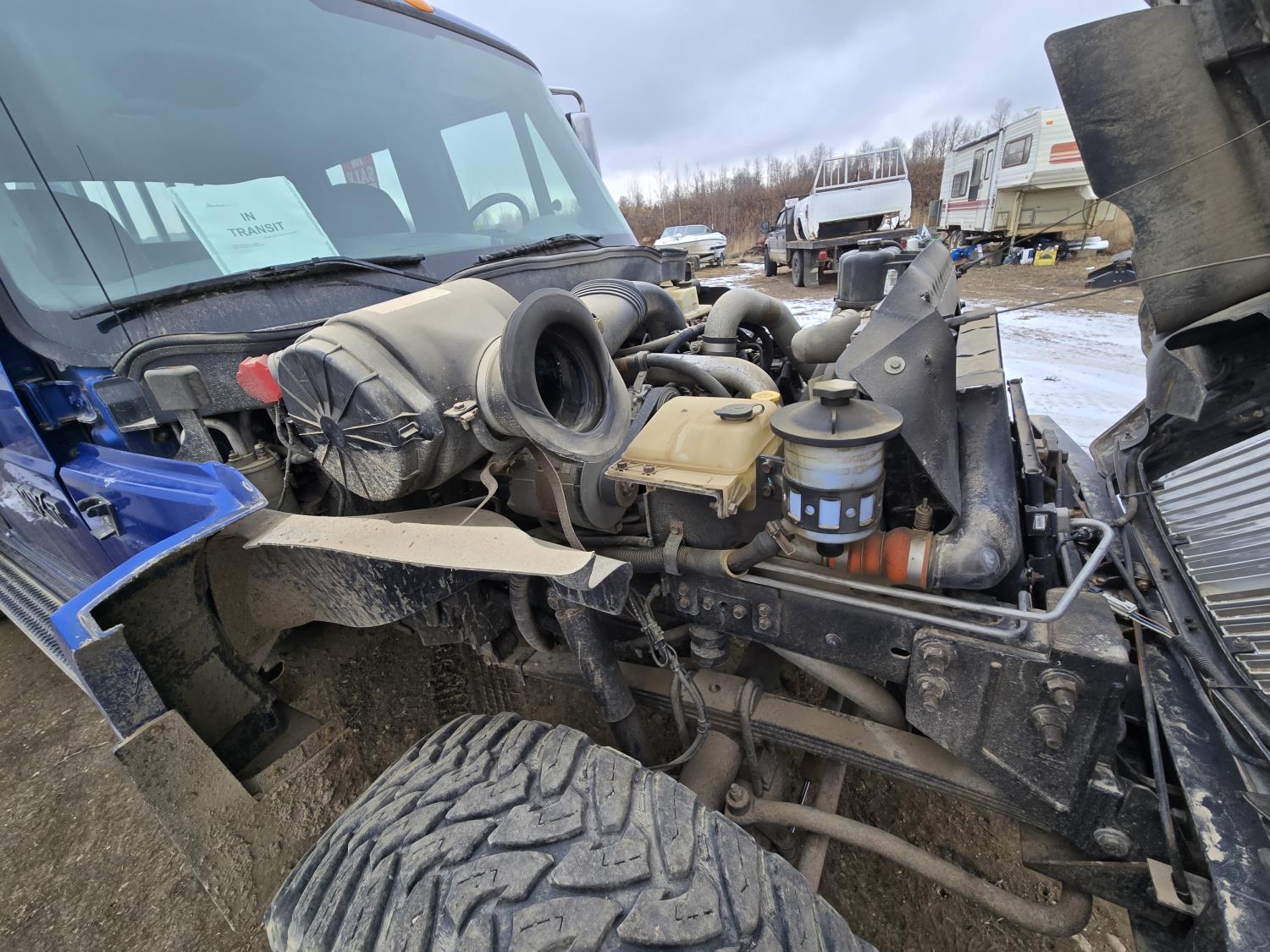 6 liter V8 diesel engine, 5 speed Allison transmission, custom deck with 5TH wheel and fuel tank, original 7 ft box with tonneau cover and fuel tank, 40X15.5R20 Tires