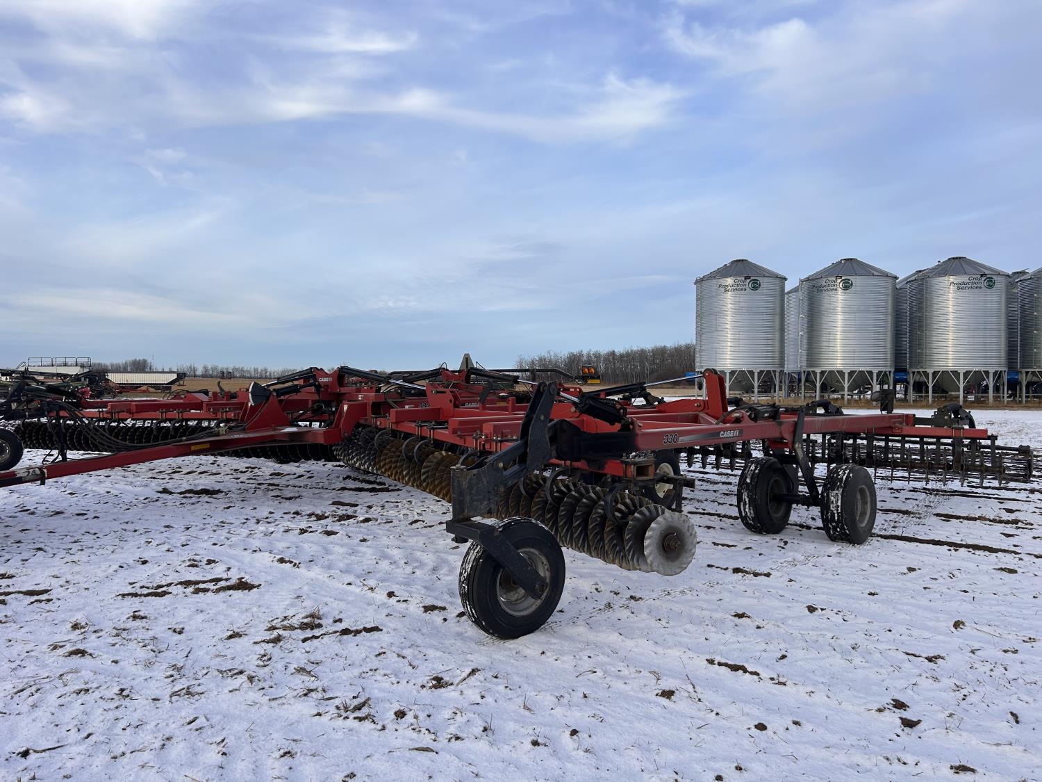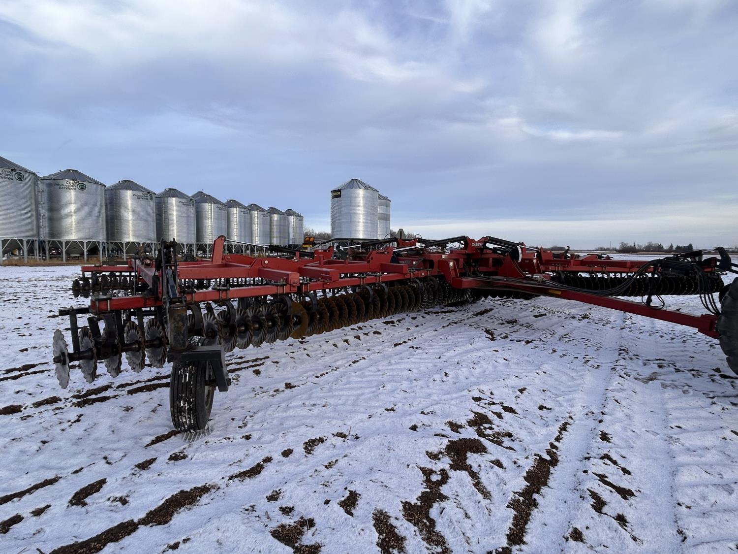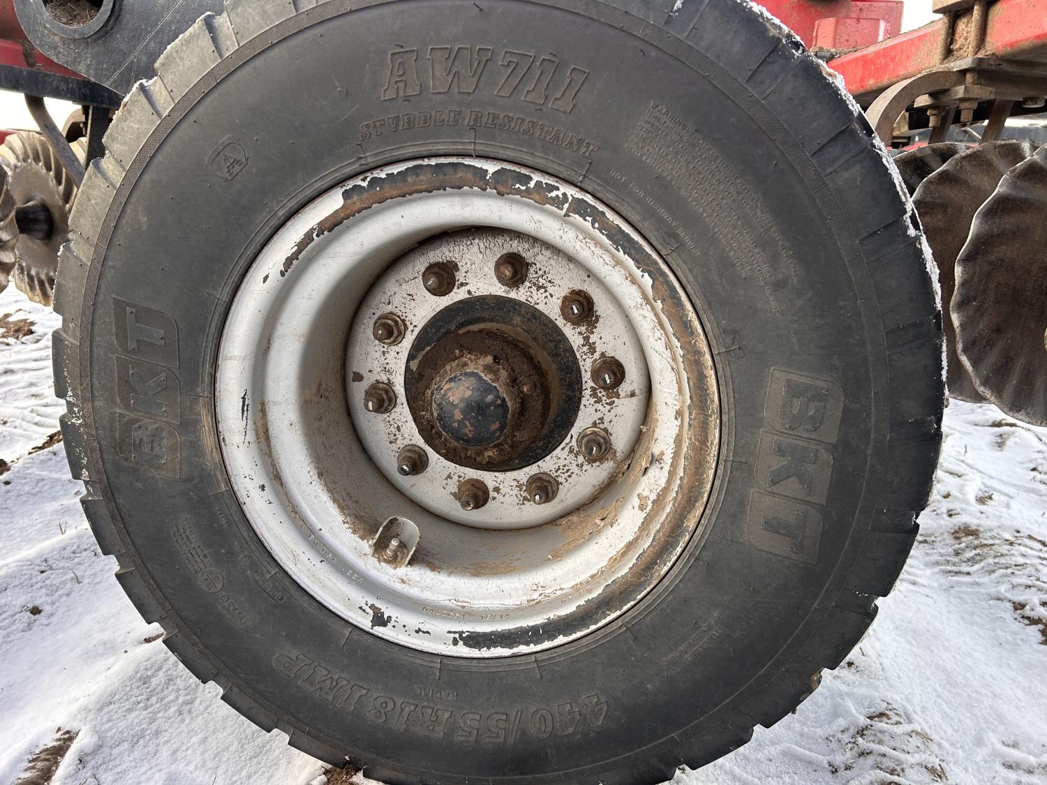 front: 7.5 inch spacing wavy 20.5 inch discs, rear: 7.5 inch spacing wavy 22 inch discs, floating hitch, hitch leveling, scrapers, roller cage baskets, duals main frame and wings, Baskets are being repaired and will be installed before sale date, more pictures to come., 440/55R18 main frame tires, 12.5L-15 FI wing tires