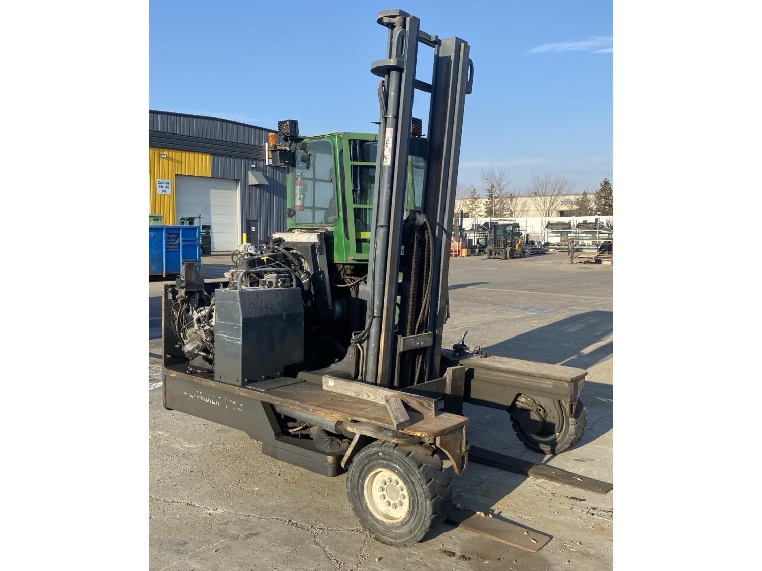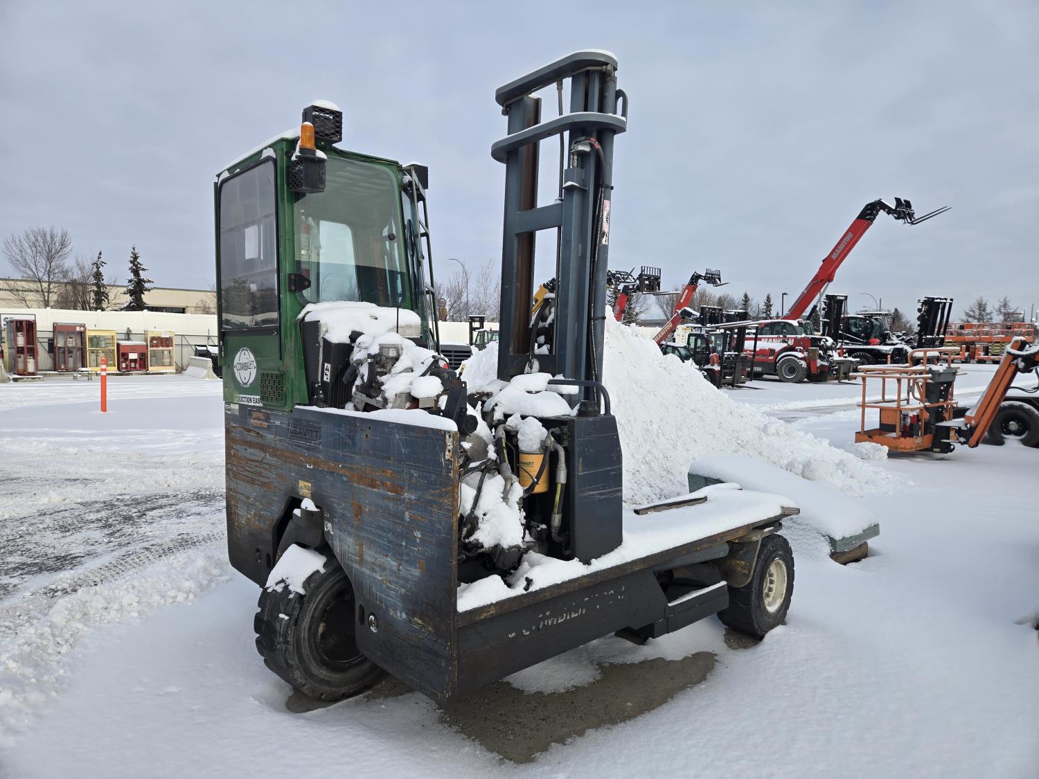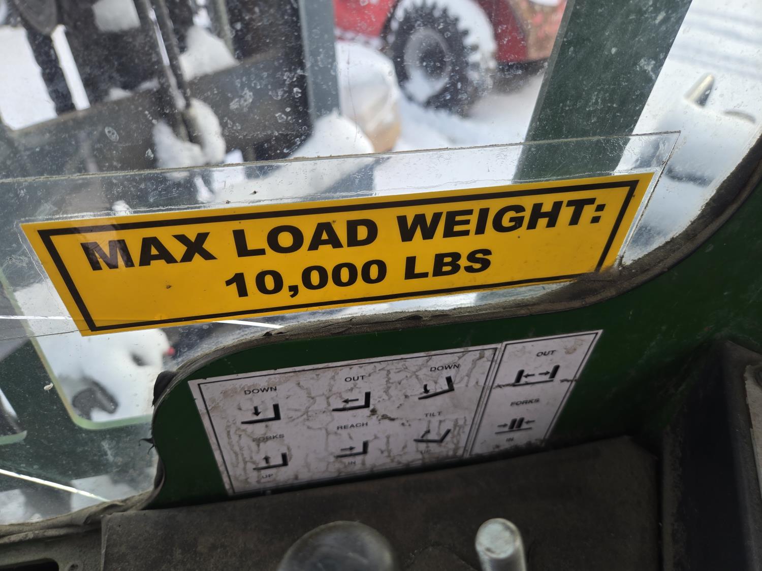 48 inch forks, side shift, enclosed cab, 3 wheel hydraulic drive, 159 inch max lift, 23X10-12 Front, 355/50-15 rear tires