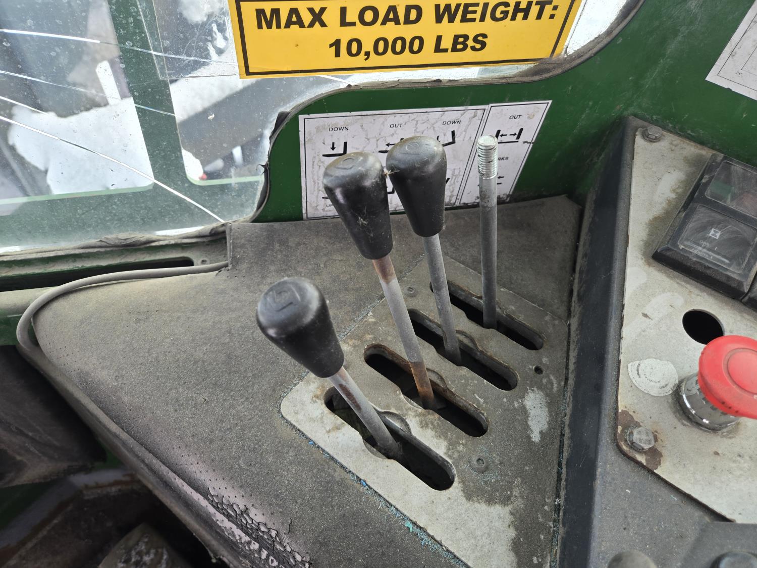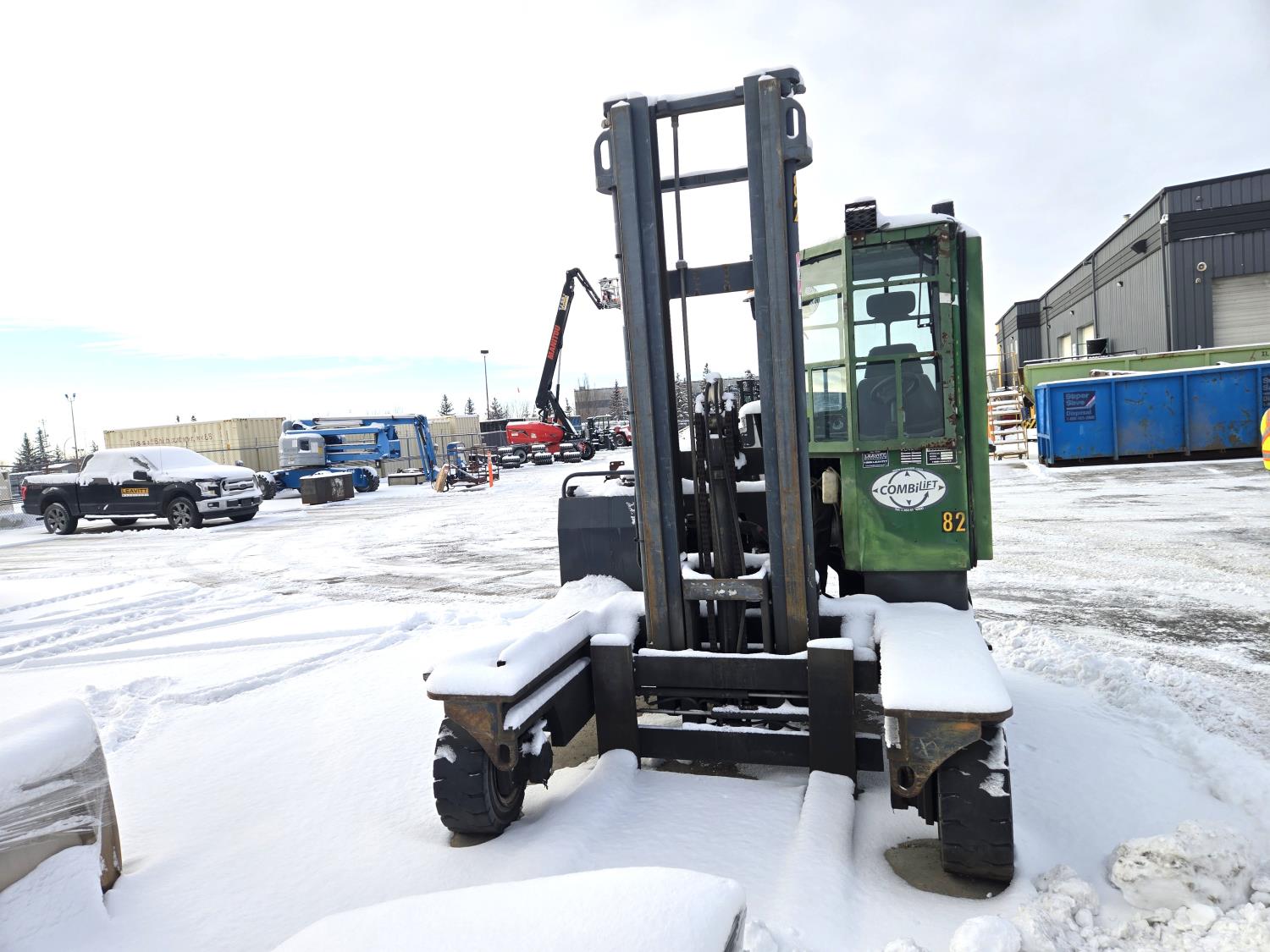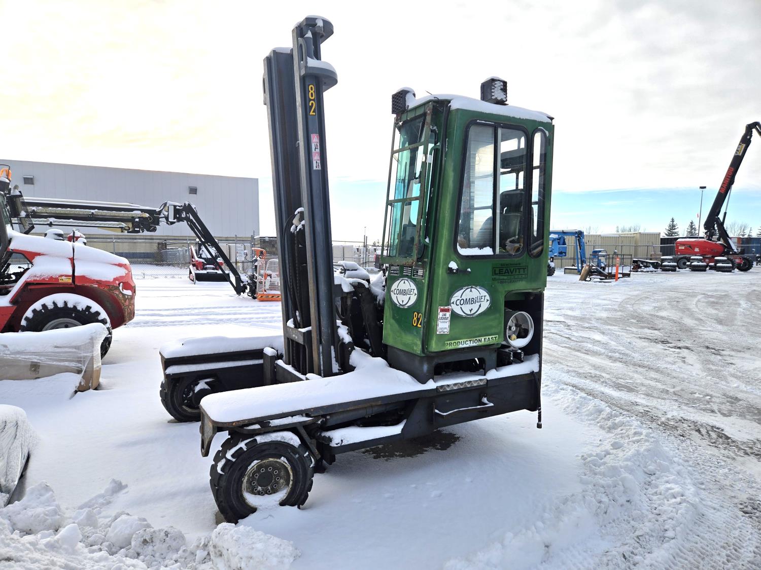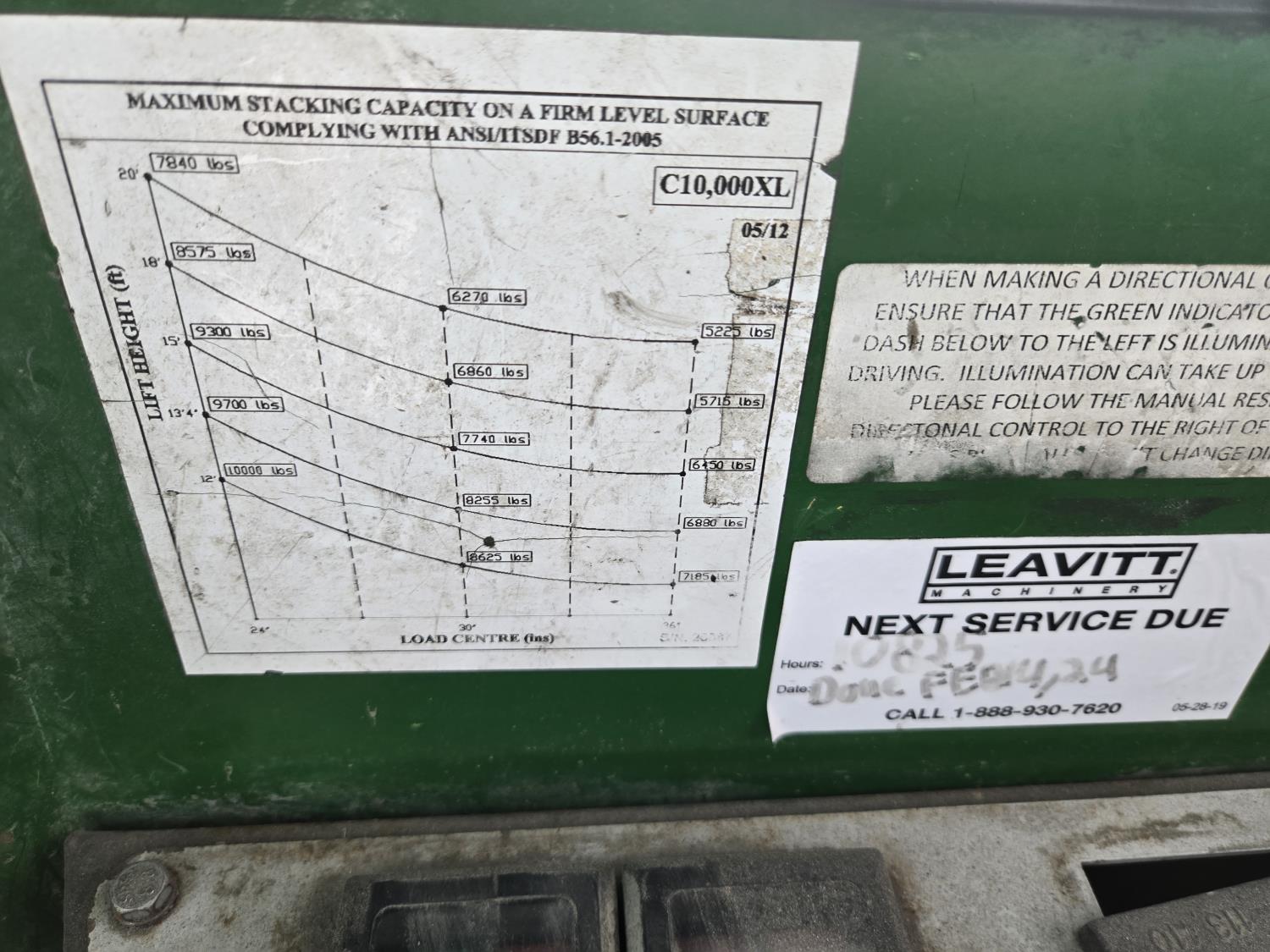 48 inch forks, side shift, enclosed cab, 3 wheel hydraulic drive, 159 inch max lift, 23X10-12 Front, 355/50-15 rear tires