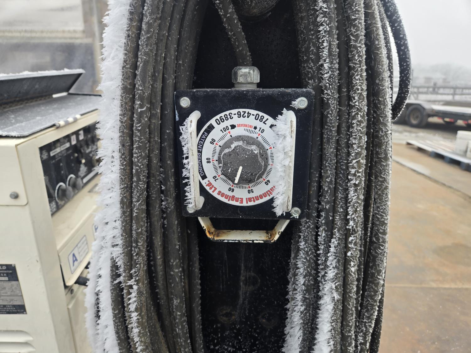 Kubota 1.3 L 4 cylinder diesel engine, positive air shut off, tool storage box, dual fuel tanks, spill containment, fork pockets on skid, (4) adjustable jacks, set up for 16 ft single light tower, hand crank, fold out work bench with vice mount.