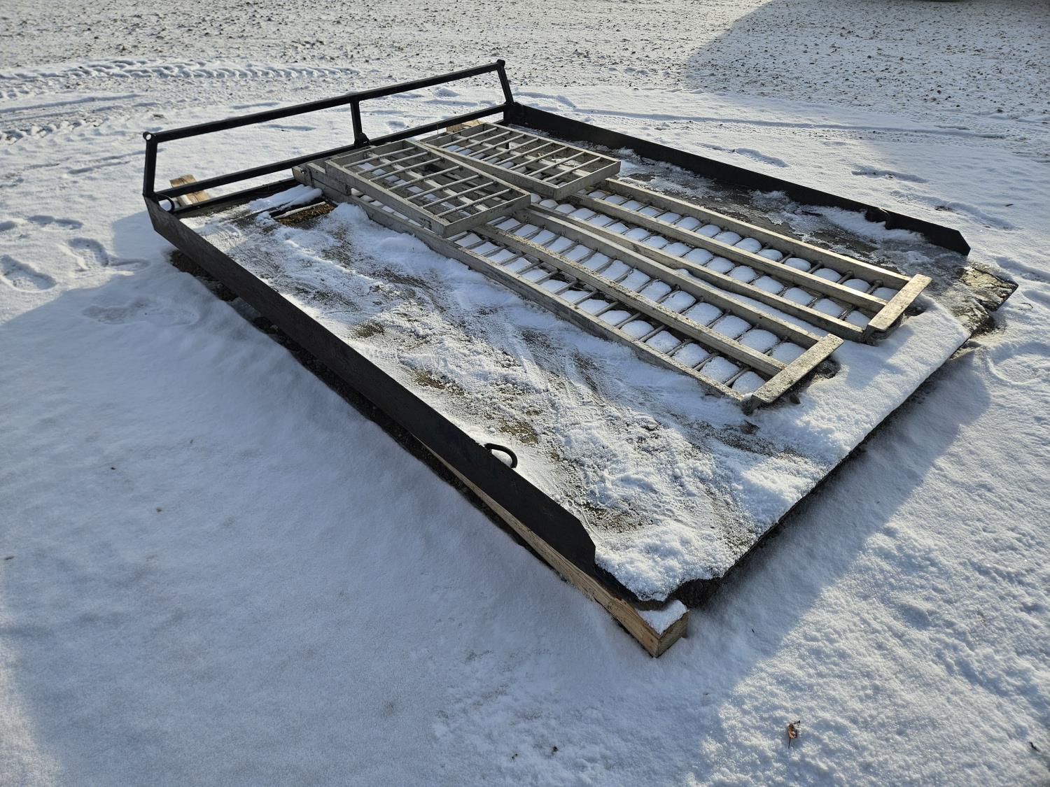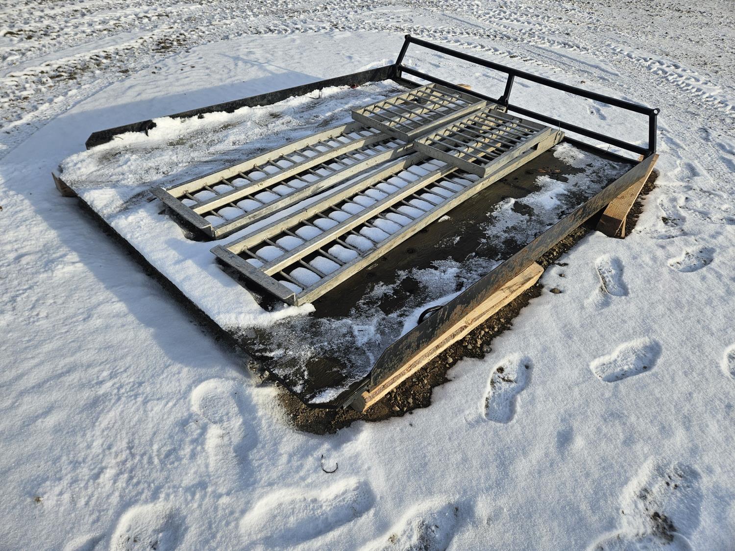 101 inch x 79 inch aluminum ramps, wood decking, steel frame, came off 2012 F350