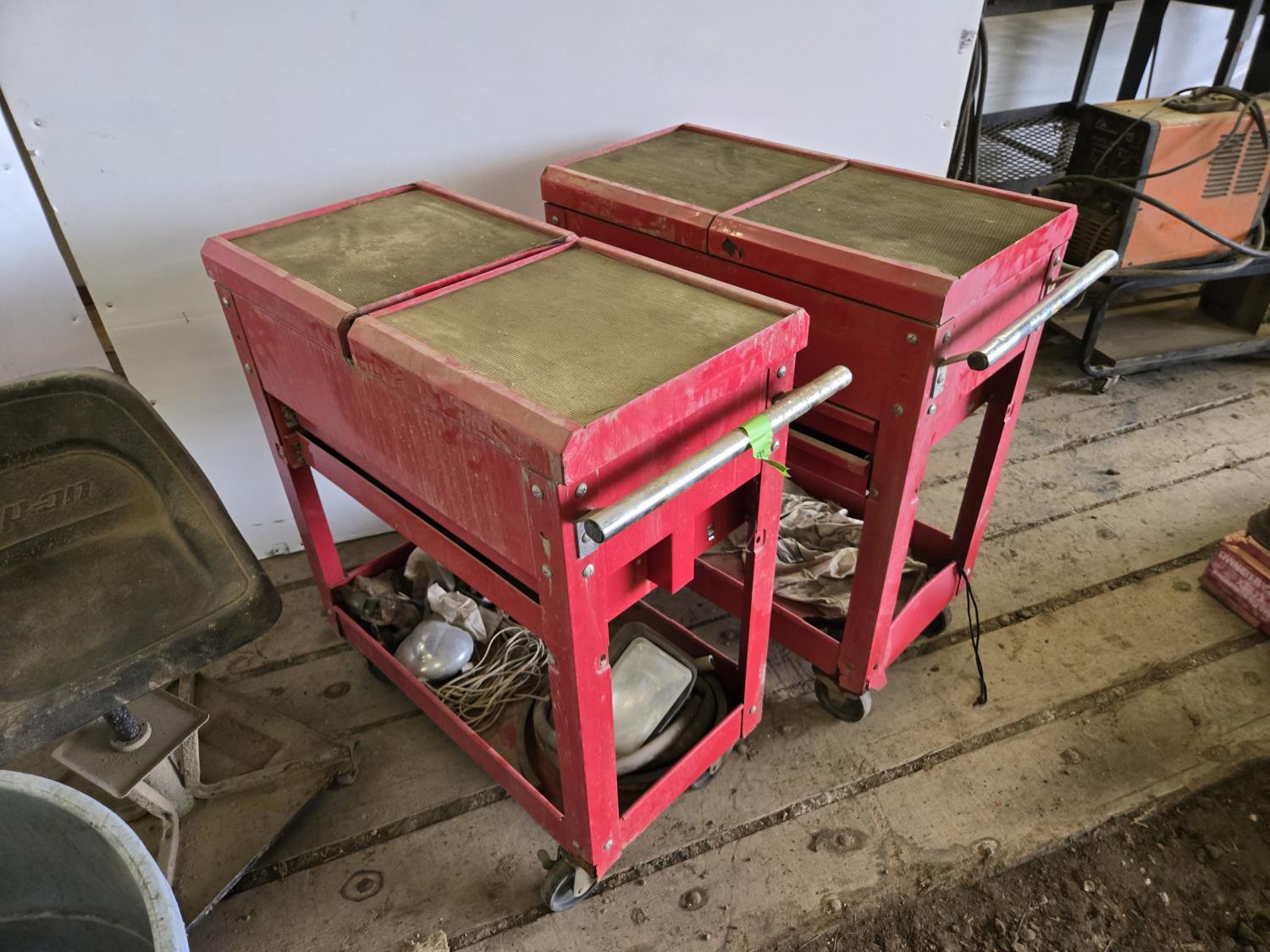 2125 (2) Mechanic's Carts with Contents, Garbage Can, Mechanic's Chair