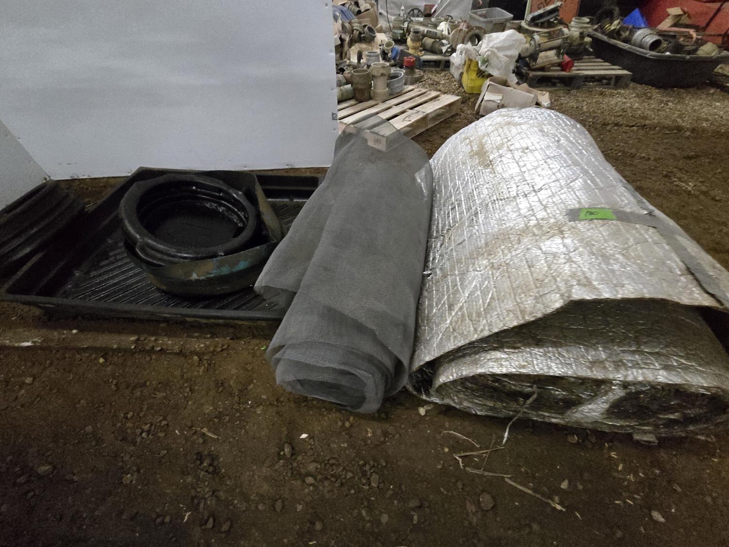 2179 (2) Oil Drain Pans, Roll of Foil Insulation, Roll of Steel Mesh