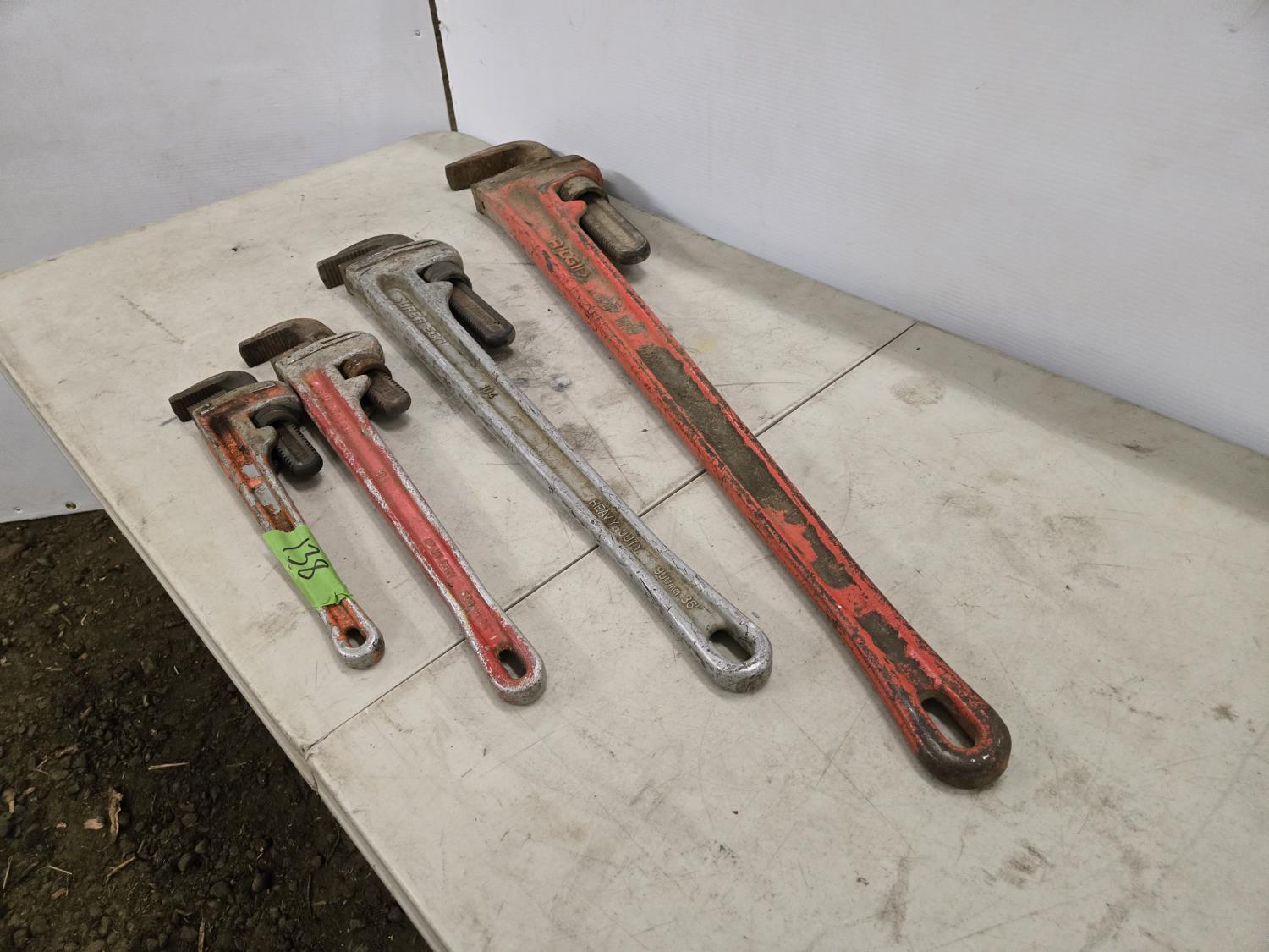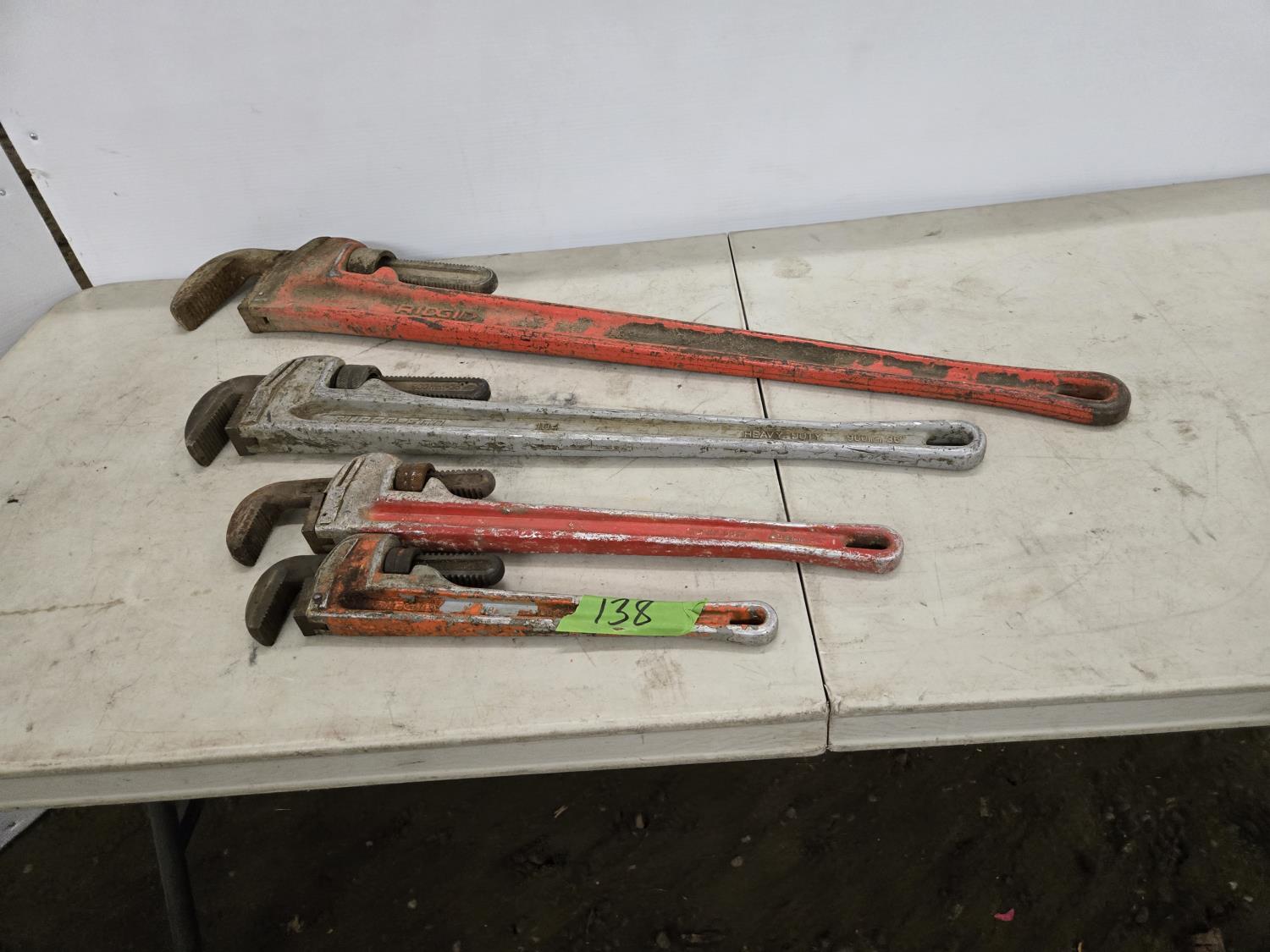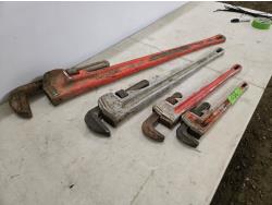 2109 (3) Aluminum Ridgid Pipe Wrenches & (1) Ridgid 48 Inch Pipe Wrench