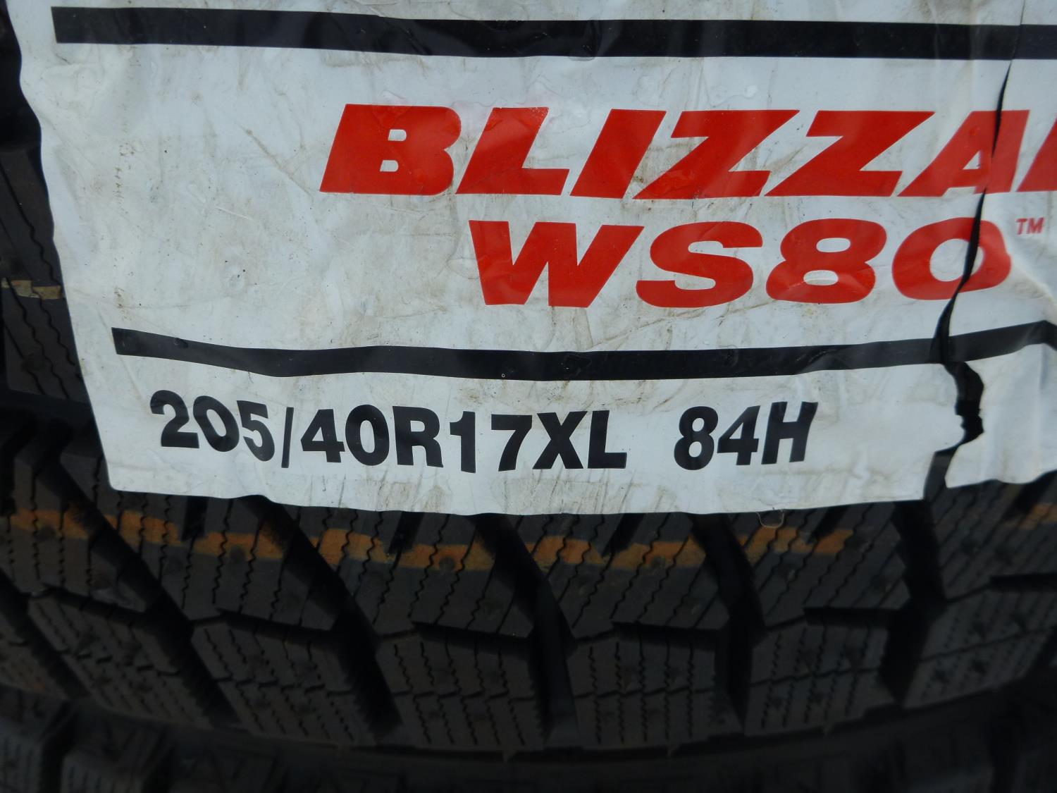 1641 (4) Bridgestone Blizzak WS 80 P205/40R17XL Load Studless Winter Tires (Unused)