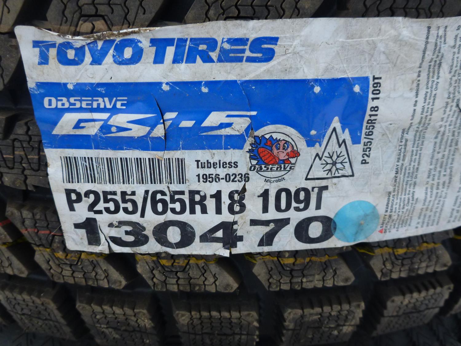 1619 (4) Toyo Observe GSI 5 P255/65R18 Studless Winter Grip Tires (Unused)