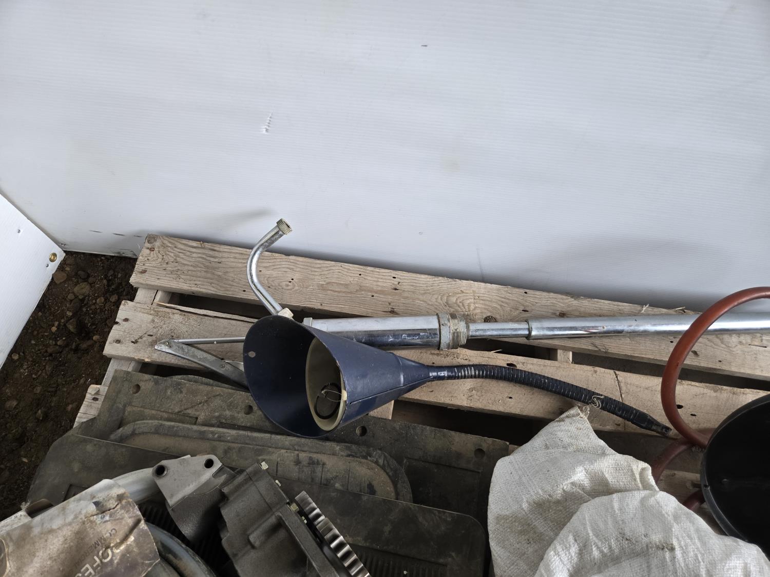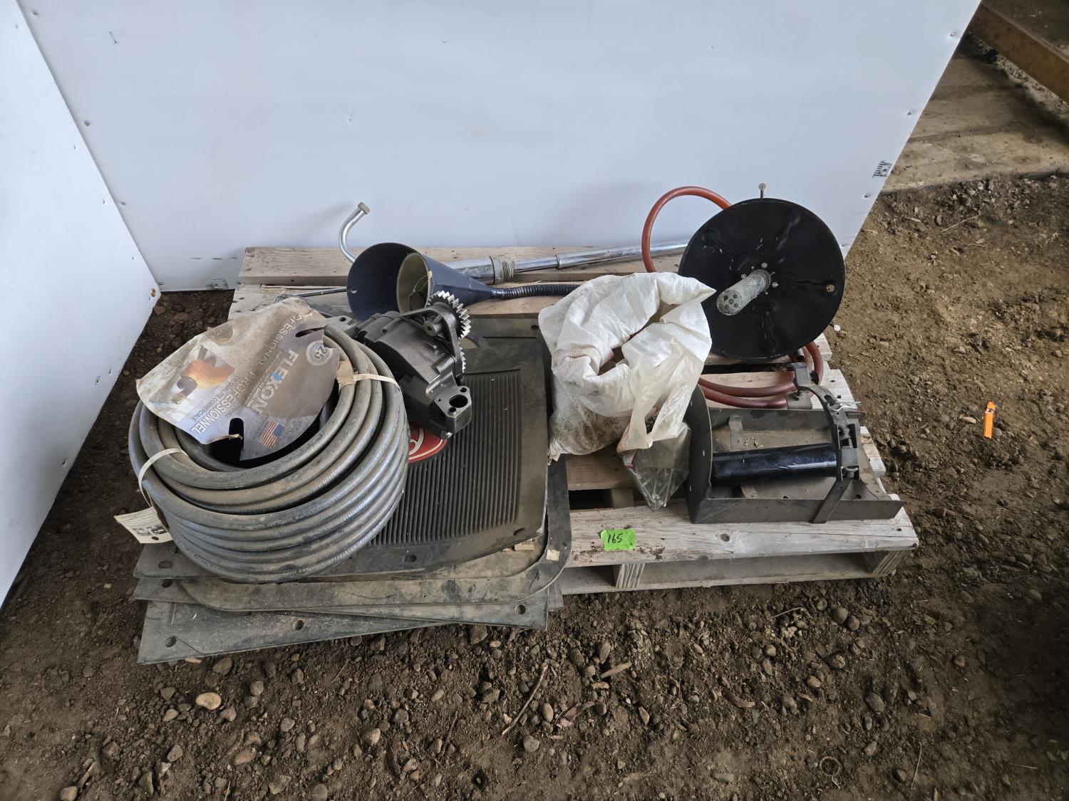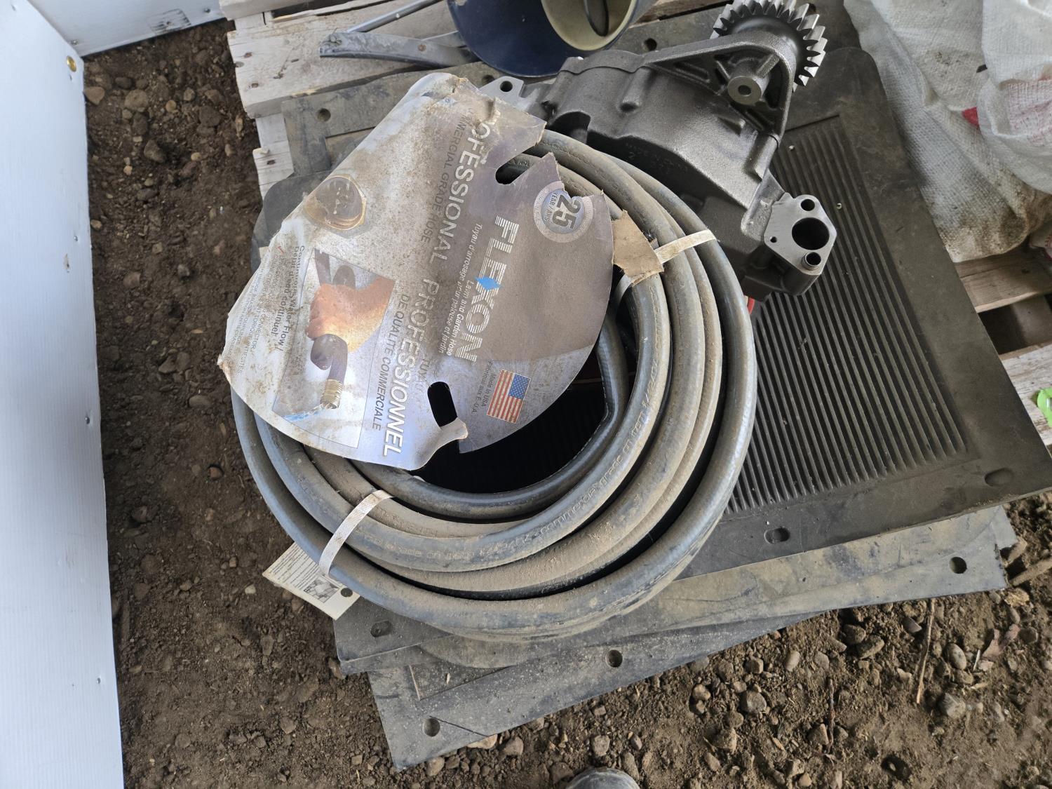 2151 (8) Truck Mud Flaps, 80 Ft Garden Hose, (2) Pail Pumps & Truck Water Pump