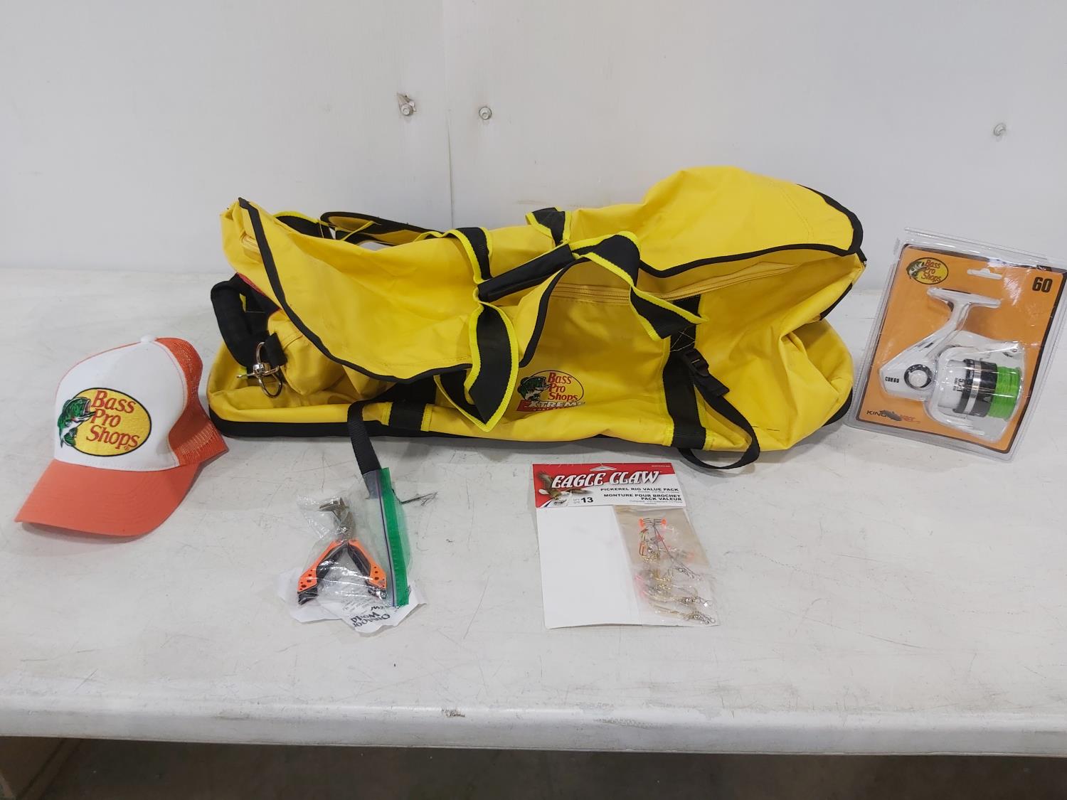 1200 Bass Pro Shops Boat Bag, King Kat Spinning Reel, Multi-Tool, Pickerel Rigs and Hat