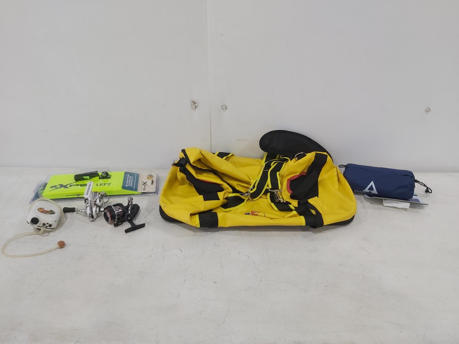 1220 Bass Pro Shops Extreme Boat Bag, Ascend Ultralight Air Pad, (2) Spinning Reels and XL Planer Board