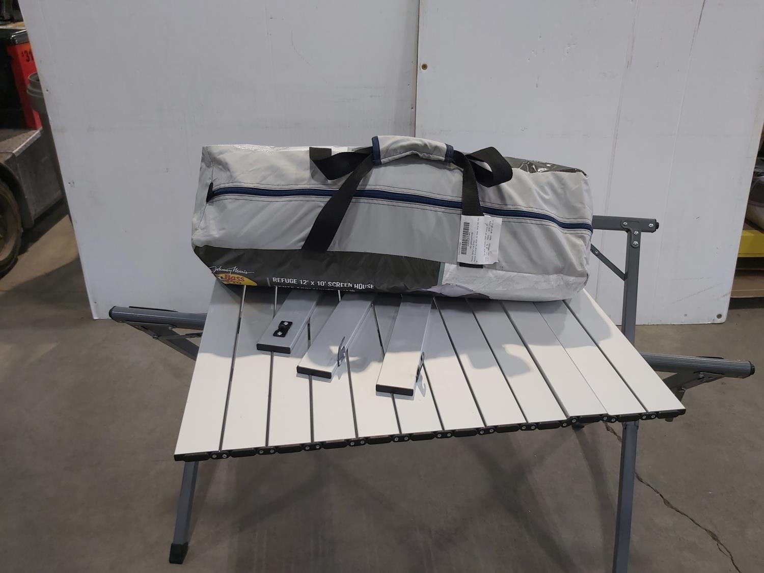 1327 Bass Pro Shops Refuge 12 Ft X 10 Ft Screen House and Roll-Top Camping Table