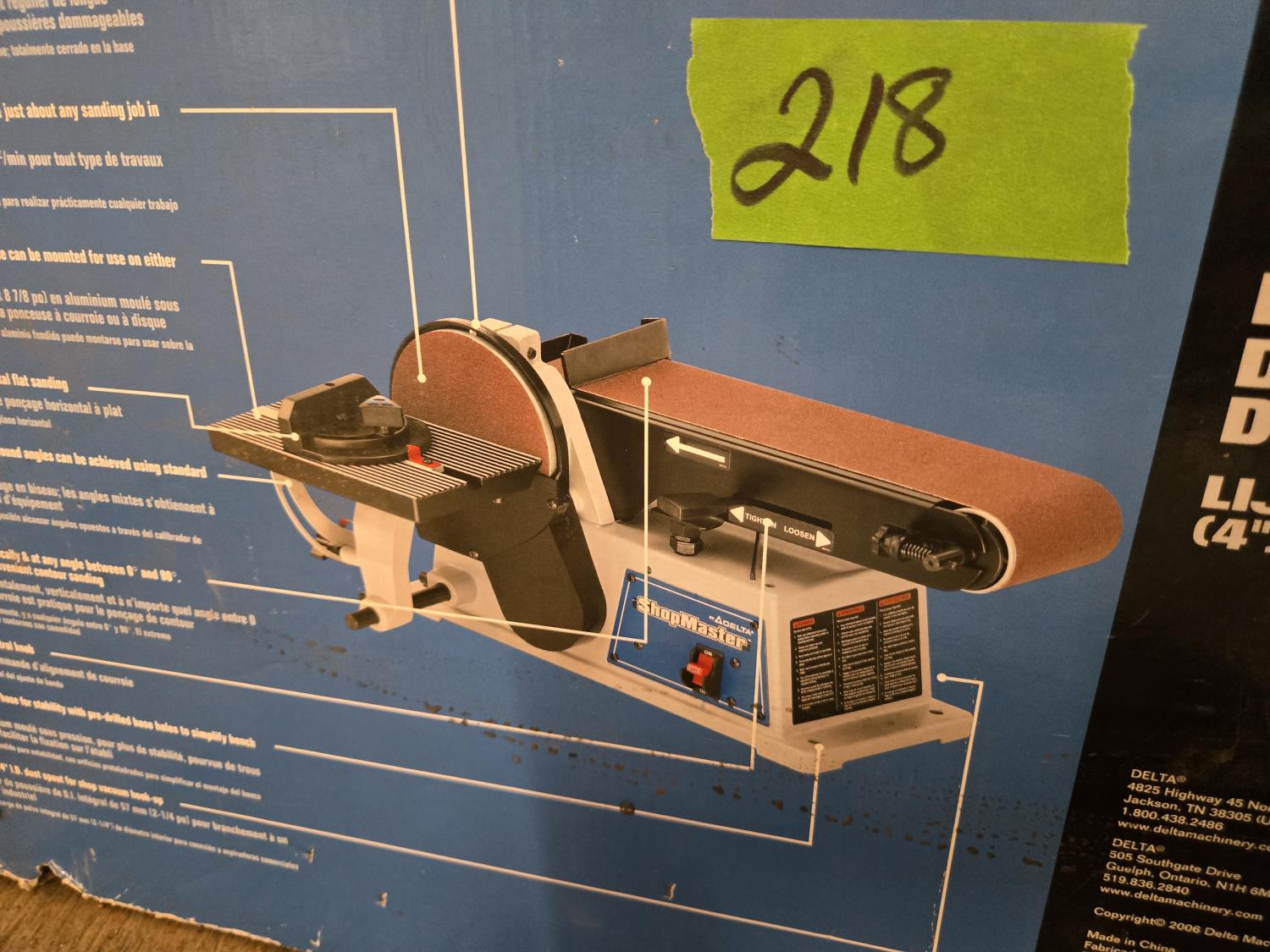2118 Delta 4 Inch Belt Sander with 6 Inch Disc Sander (Unused)