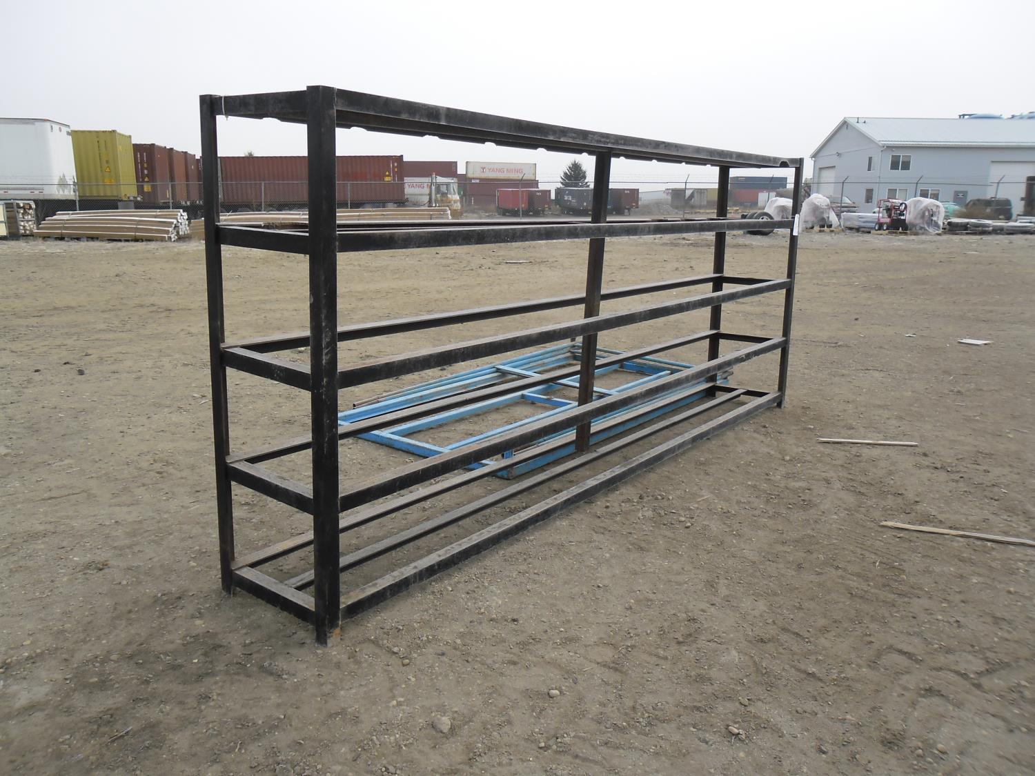 shelf unit measures 20 inch x 144 inch x 60 inch, scaffolding measures 52.5 inch x 100 inch x 84 inch