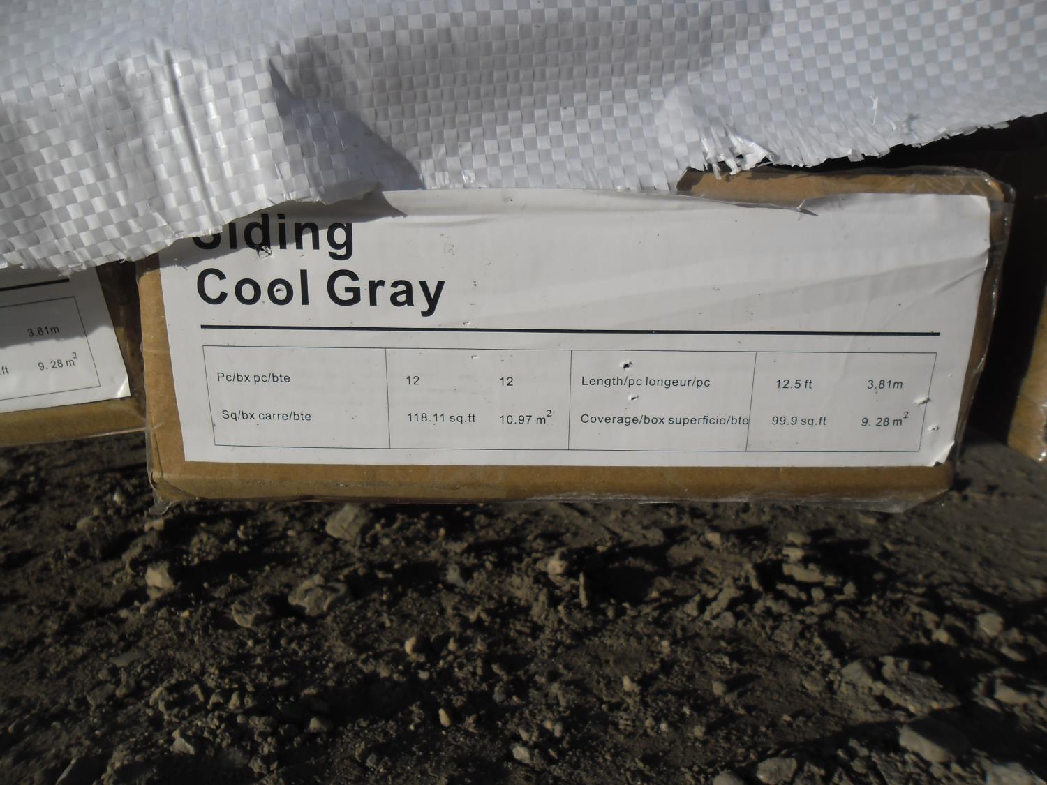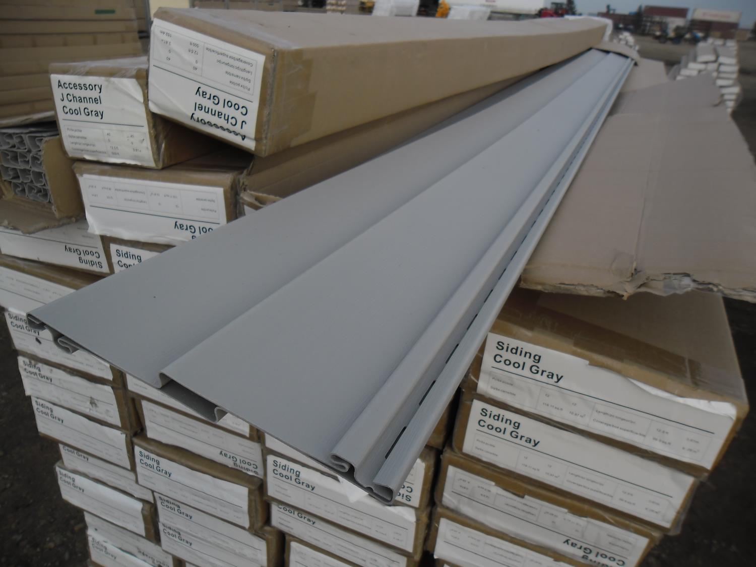 Large Qty of 12.5 Ft Cool Grey Vinyl Siding and J Channel (Unused)