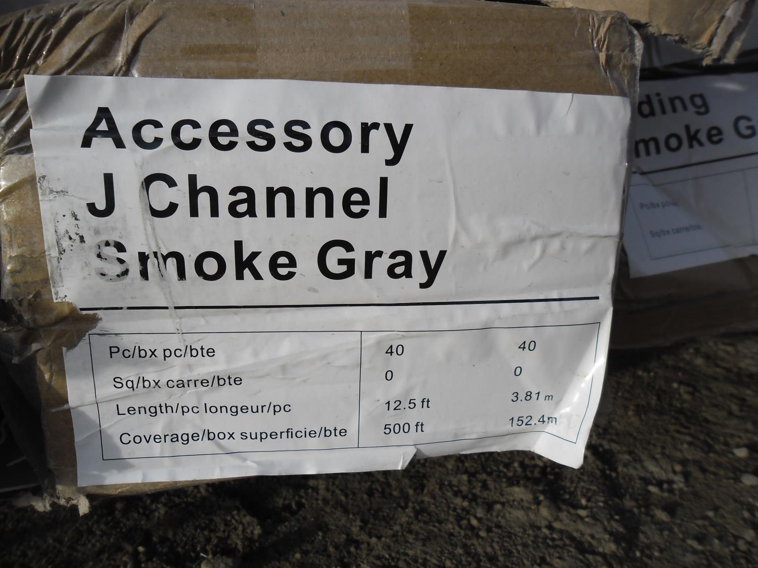 (12) pieces of vinyl per box, (40) pieces of J channel per box; 2 skids