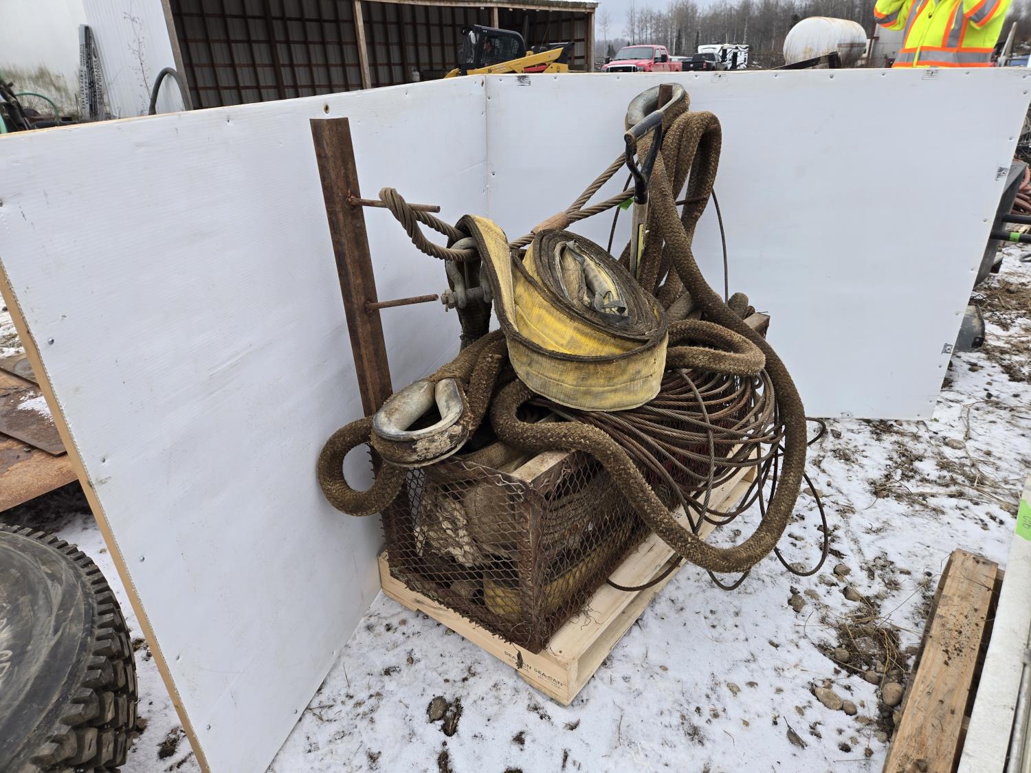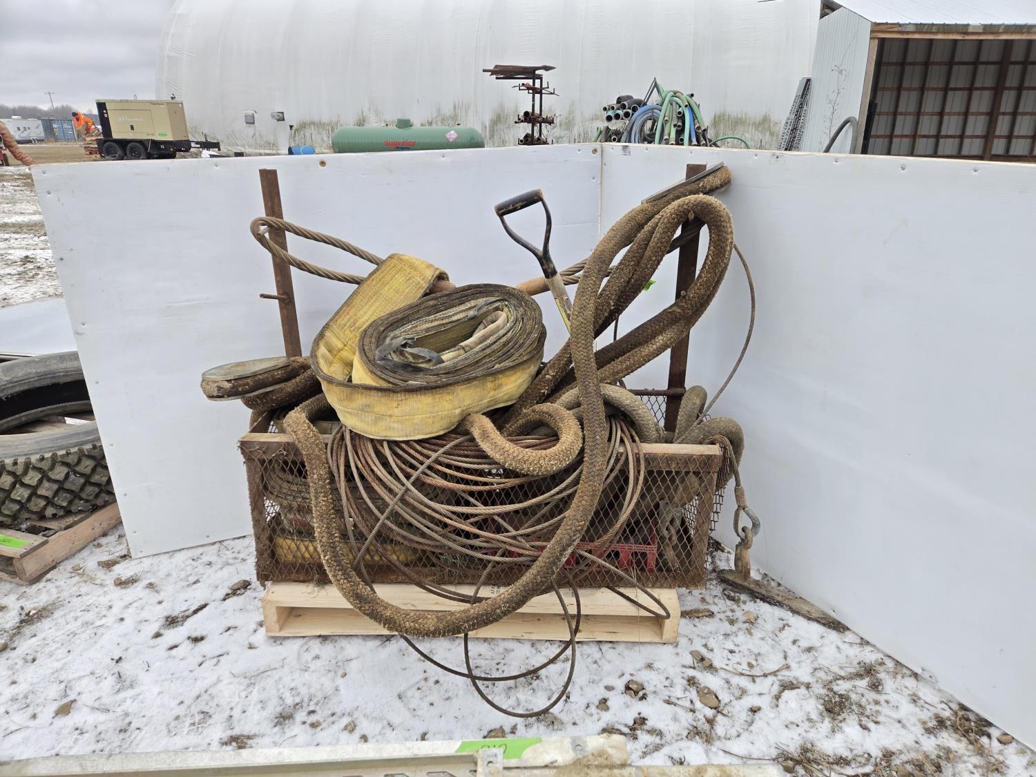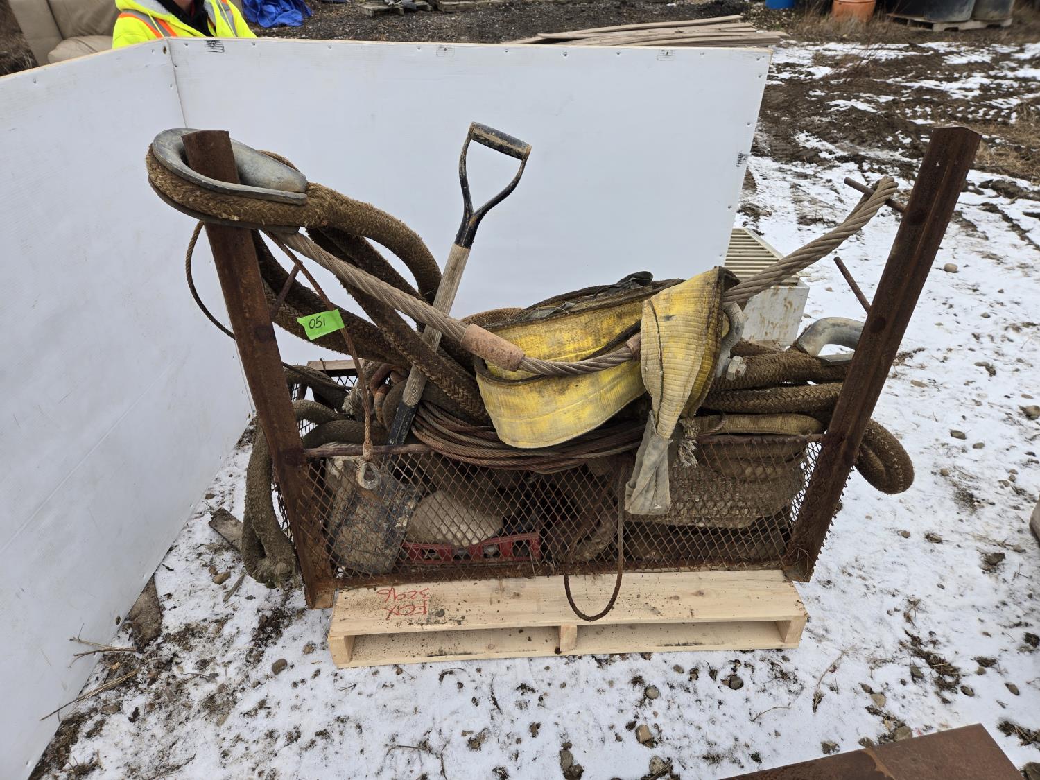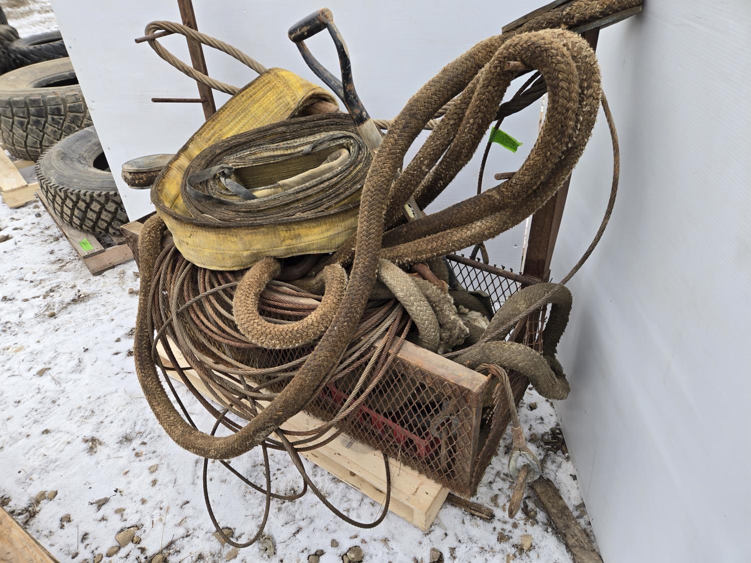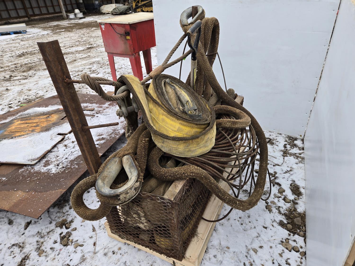 2063 Metal Cage with Misc Slings, Cables, Tow Rope