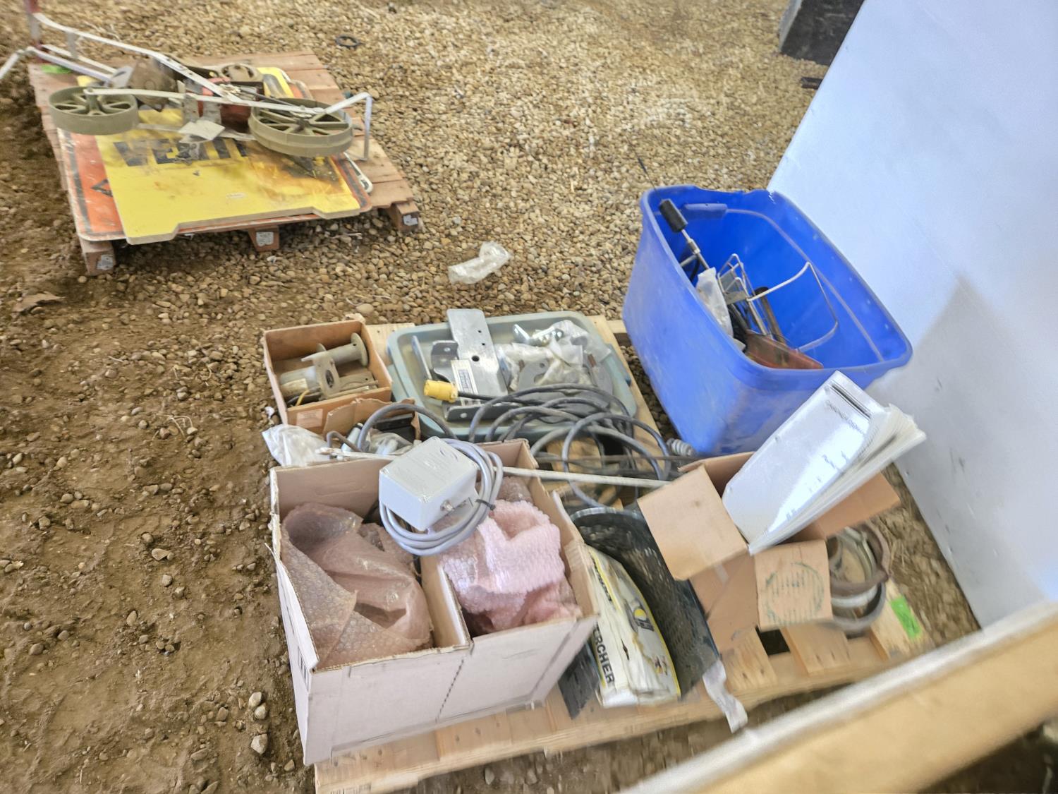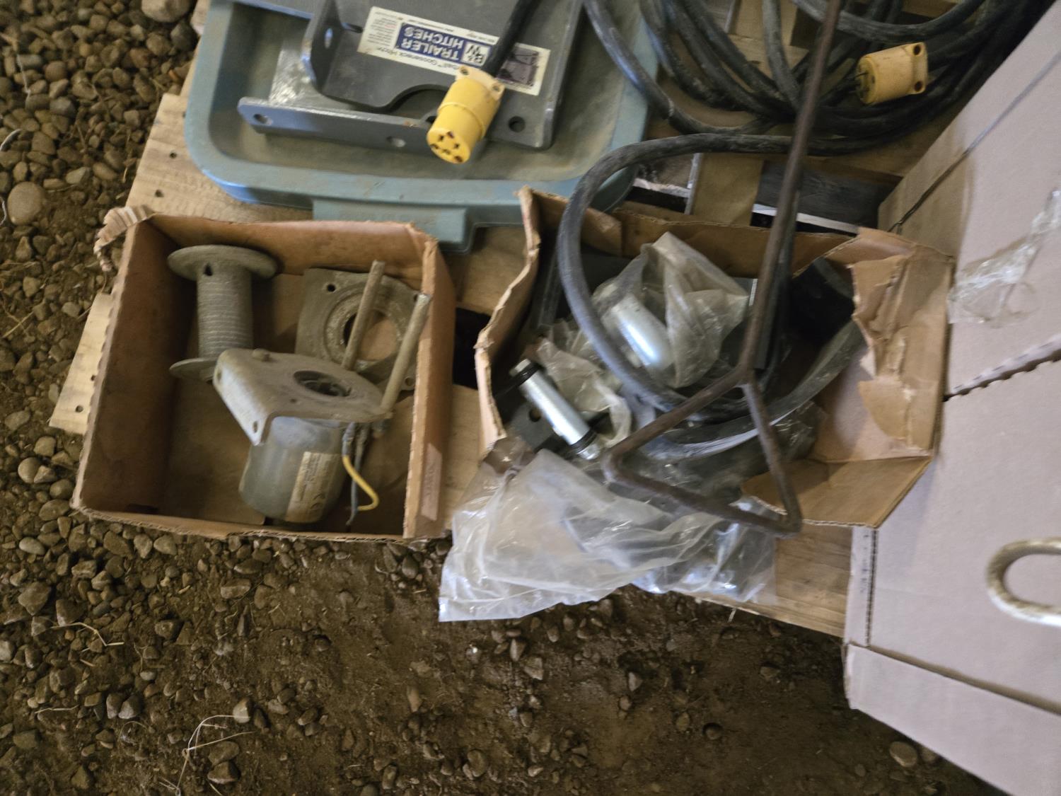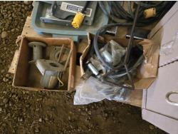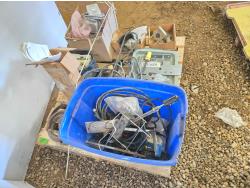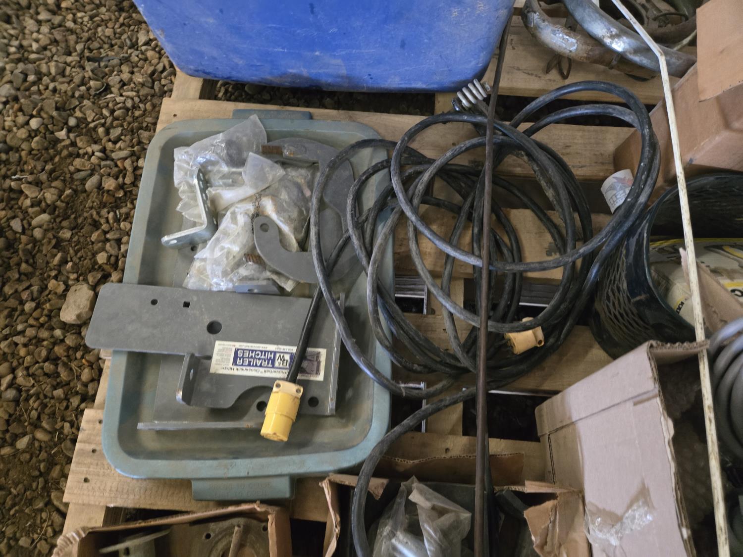 extension cord, trailer hitch brackets, Qty of Miratron Radio receivers, Tri plex plunger pump, miscellaneous items