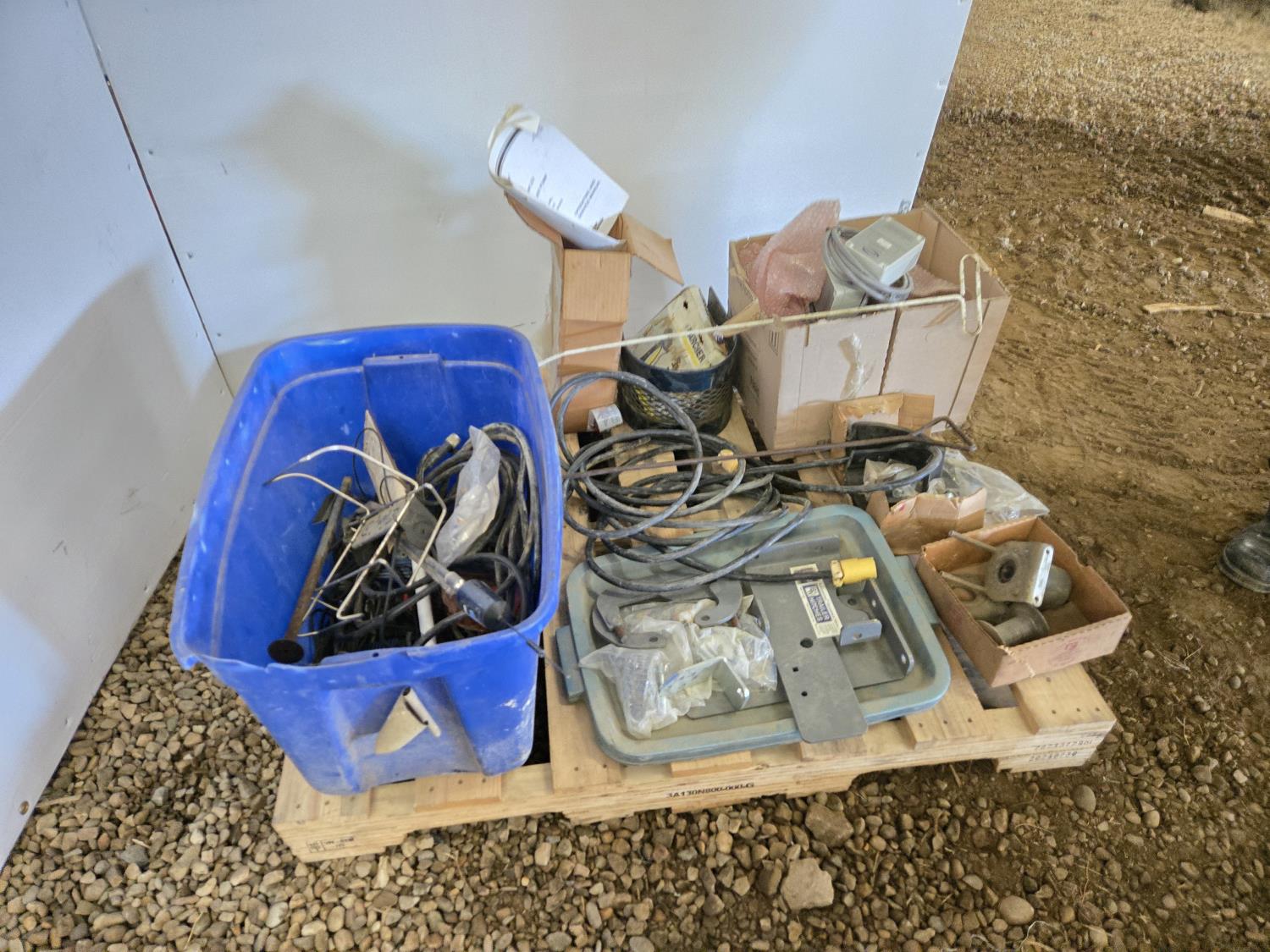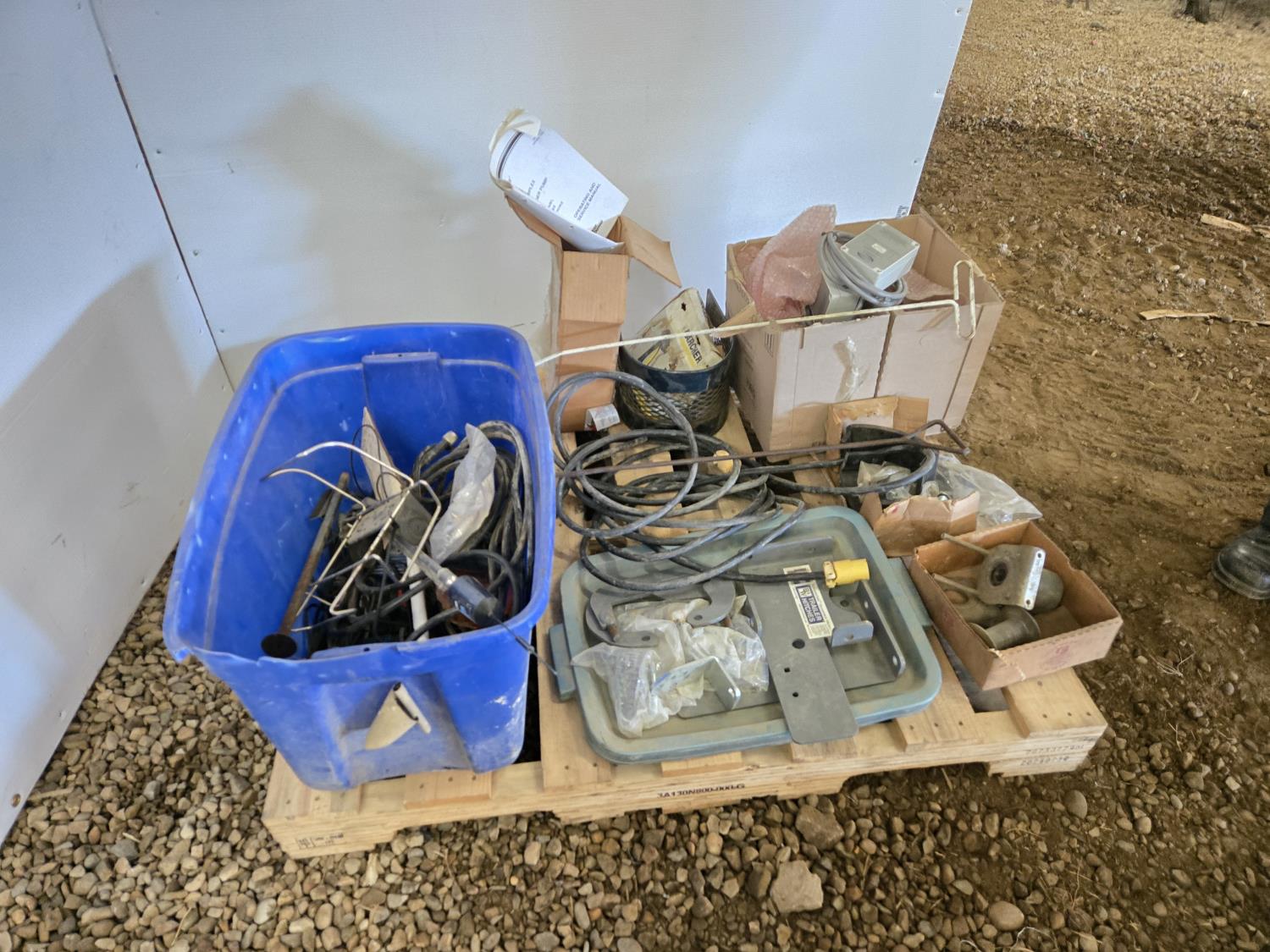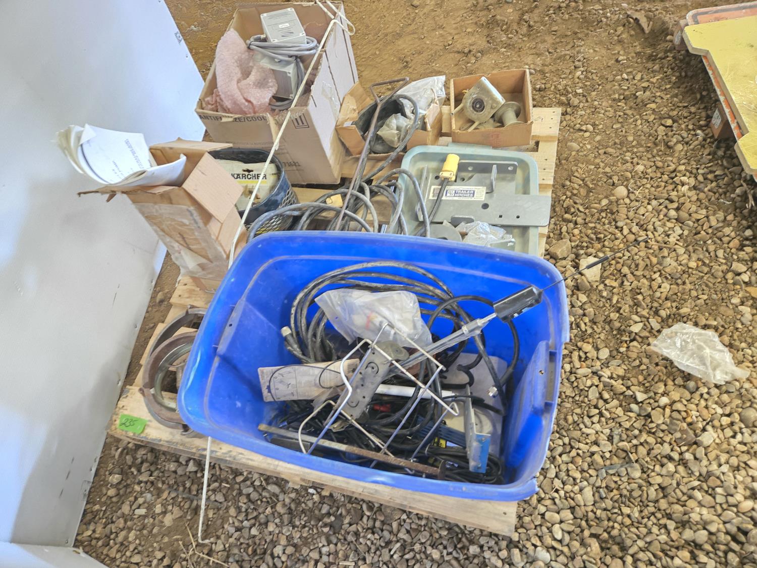 extension cord, trailer hitch brackets, Qty of Miratron Radio receivers, Tri plex plunger pump, miscellaneous items