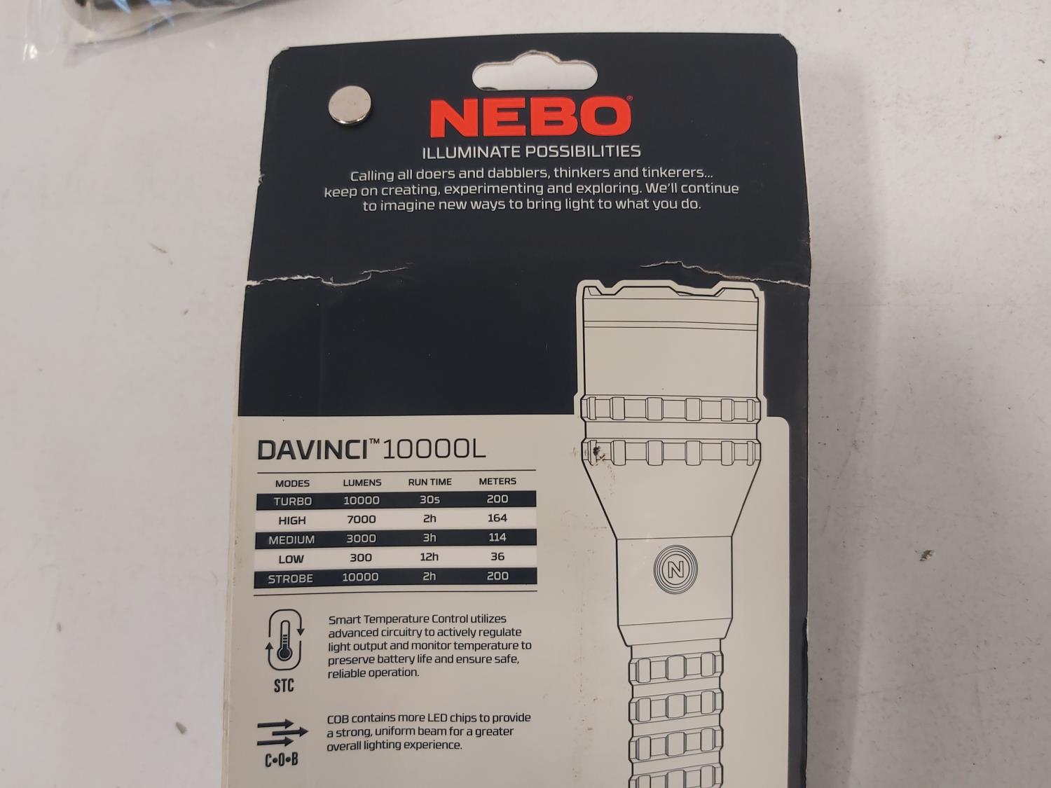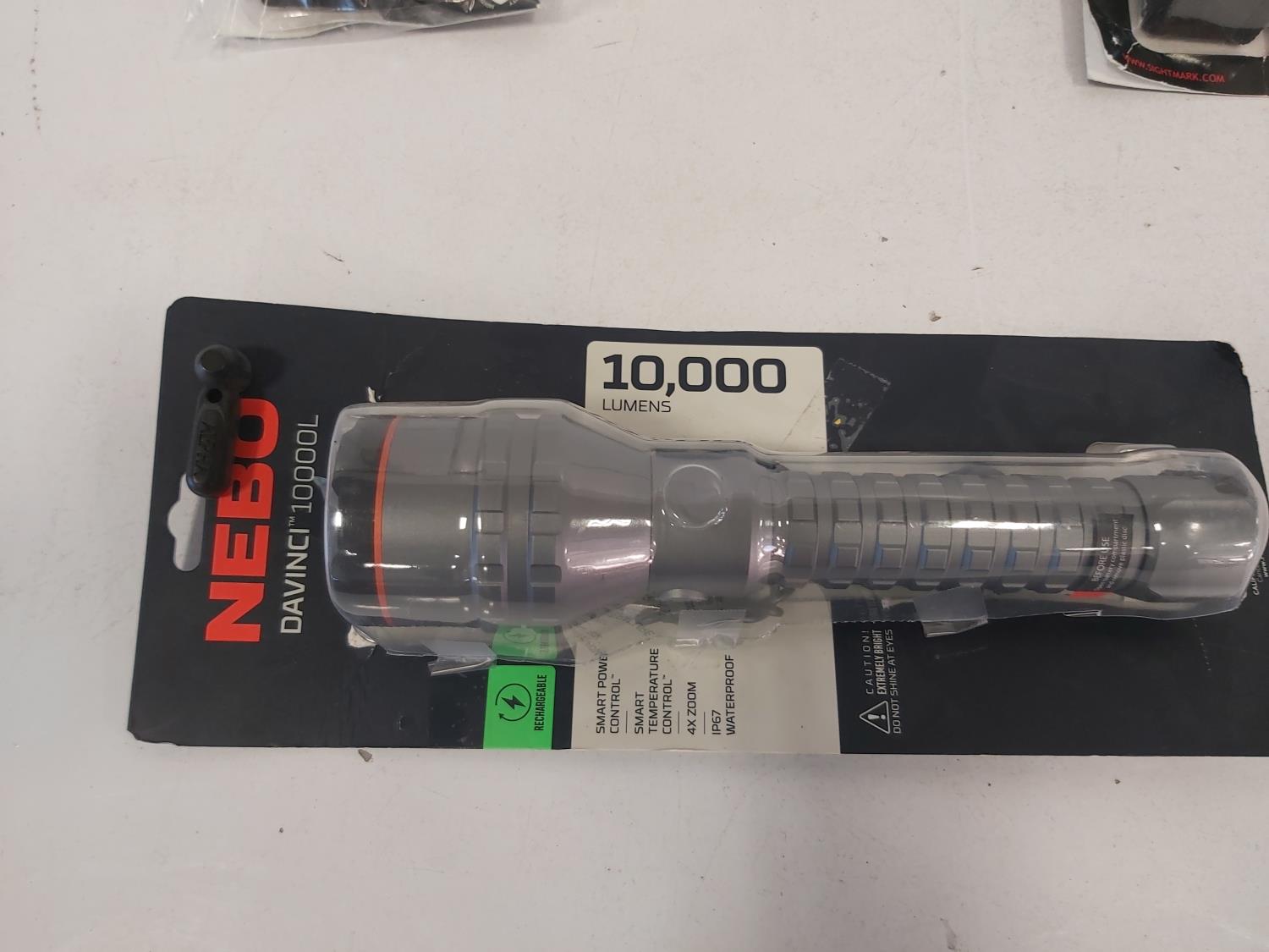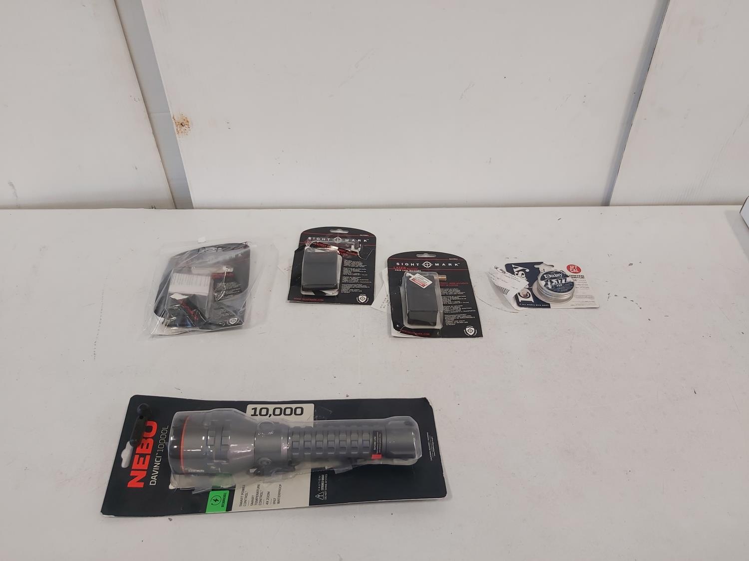 1049 Nebo 10,000 Lumen Flashlight, (3) Laser Boresights and Daisy .177 Caliber Pellets