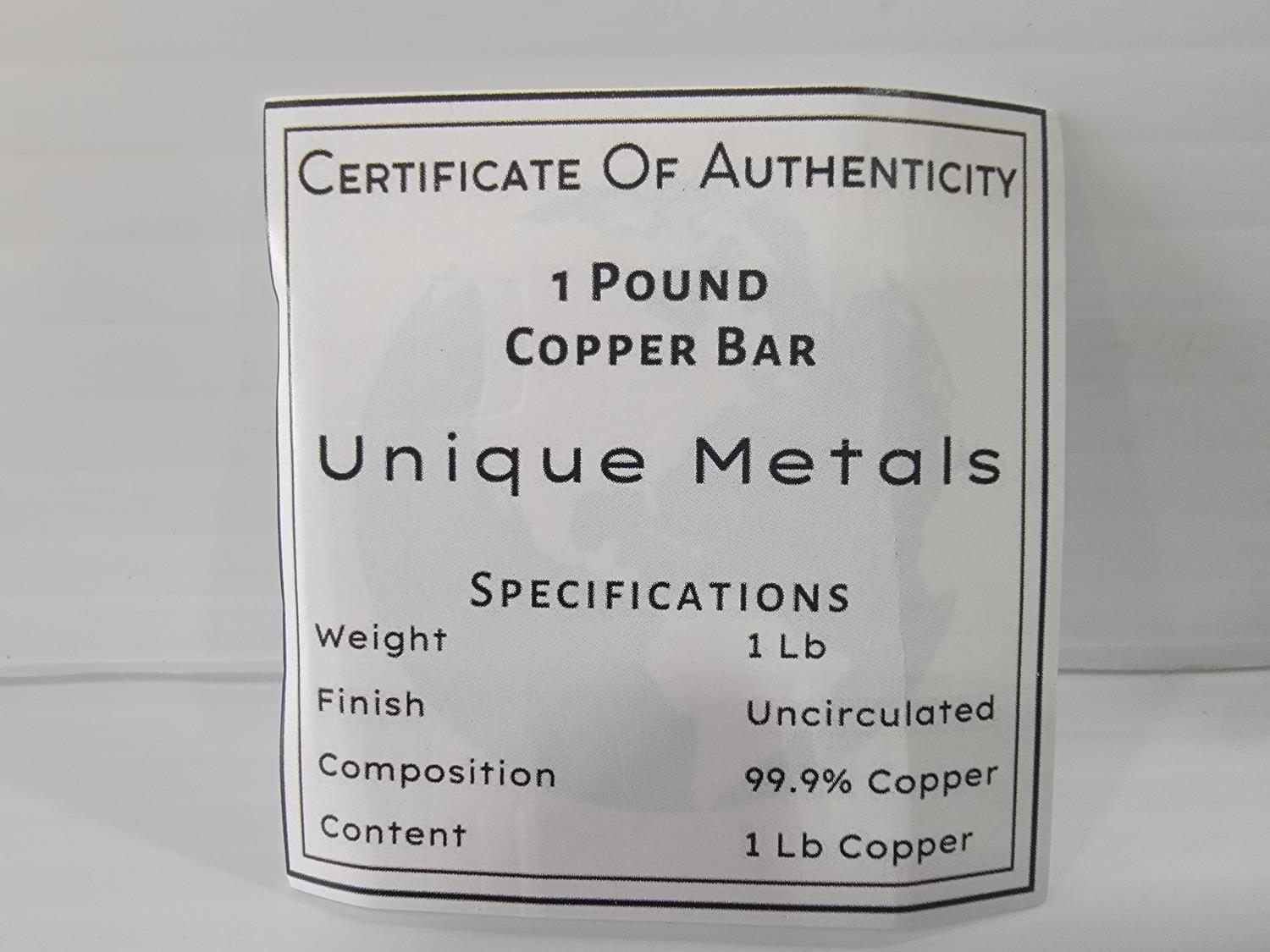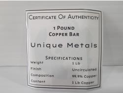 1389 One Pound .999 Fine Copper Bar