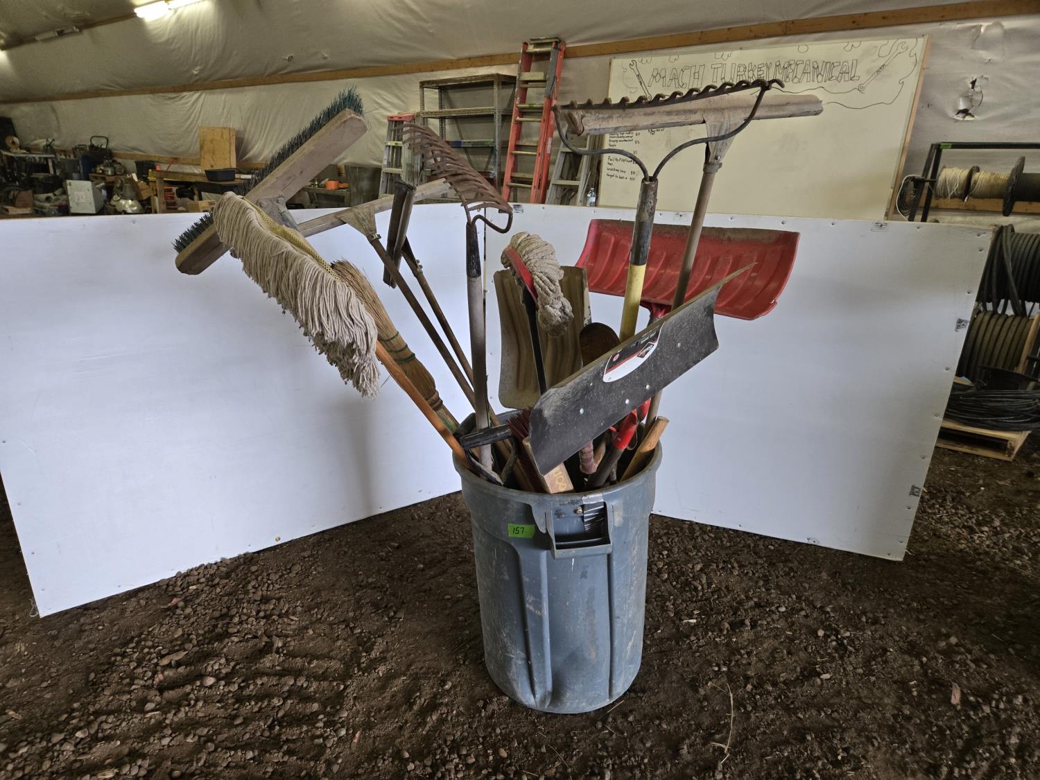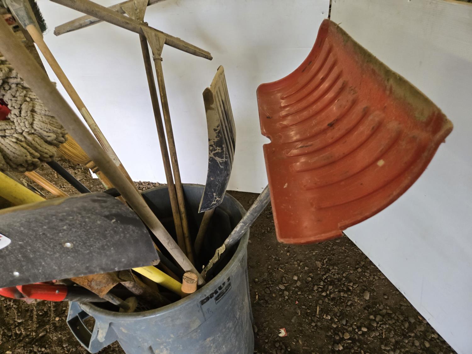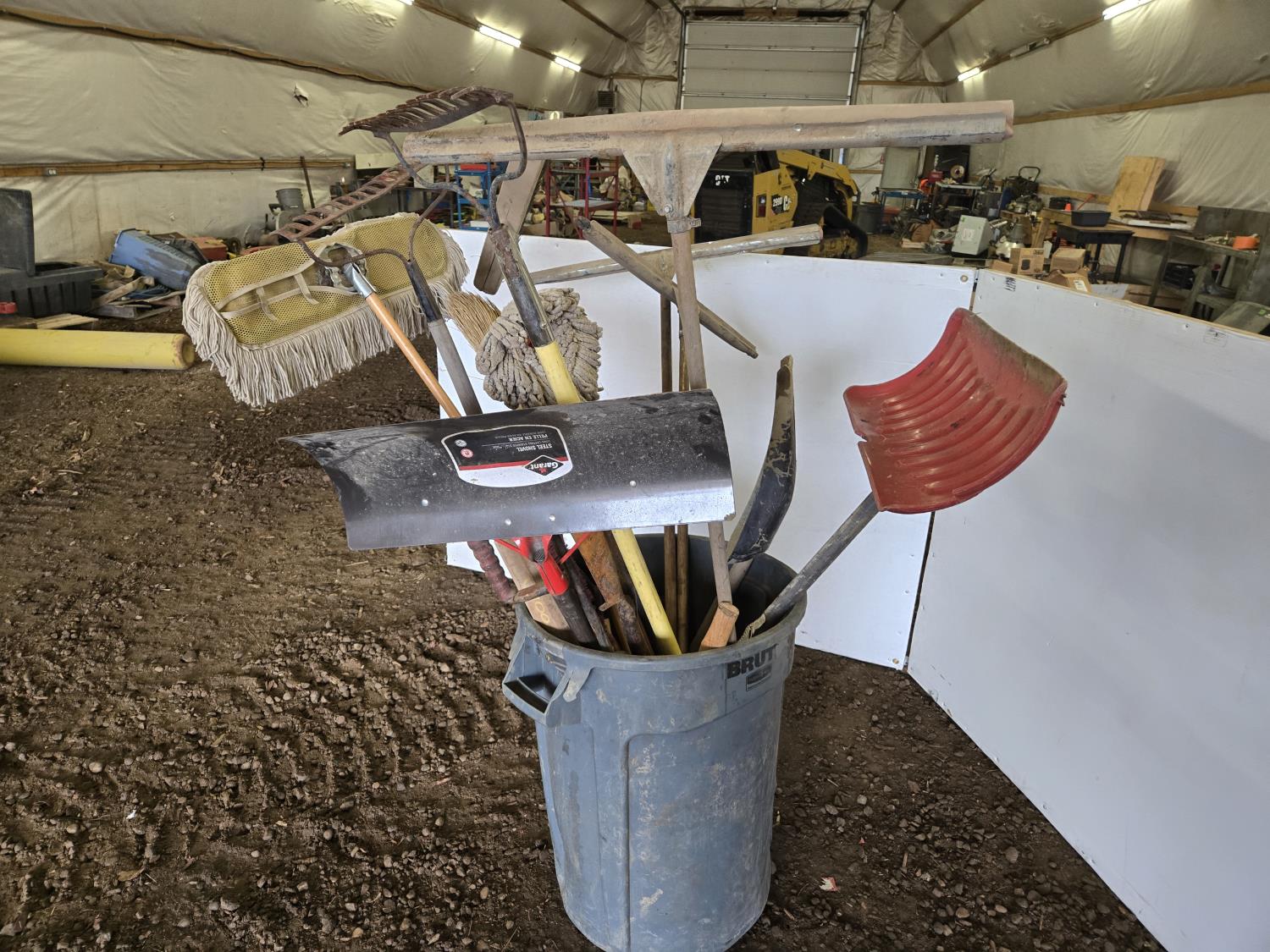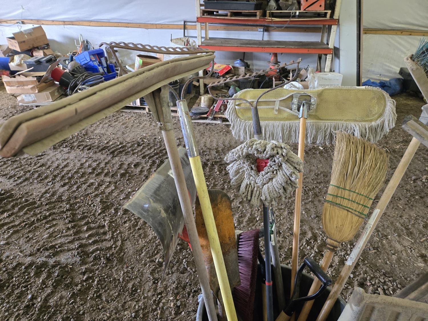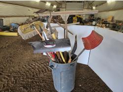 Shovels, brooms, rake, picks, miscellaneous