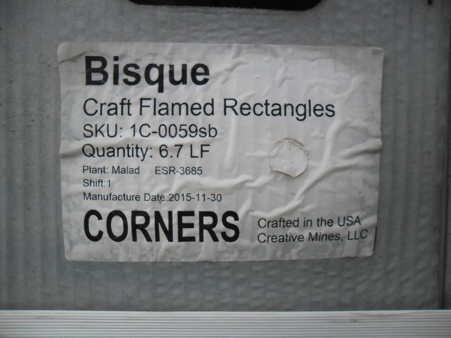 1732 Qty of (16) Boxes Bisque Craft Flamed Rectangular Corners Masonry Veneer