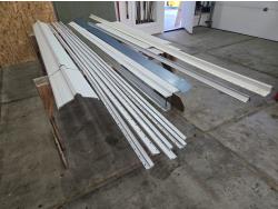 (5) 10 ft & (1) 8 ft metal ridge cap, (6) 12 ft white J trim, (2) 1.5 inch X 1.5 inch galvanized flashing, (2) 10 ft bottom of wall white trim, (3) 10 ft blue metal flashing, (3) 60 inch pieces of white soffit, (3) white 10 ft roof edge flashing, (3) white PVC drip flashing, (1) 10 ft white 6 inch fascia, (1) Smartside 4X8 ft green siding panel, (1) 1/2 inch OSB 4X8 sheathing
