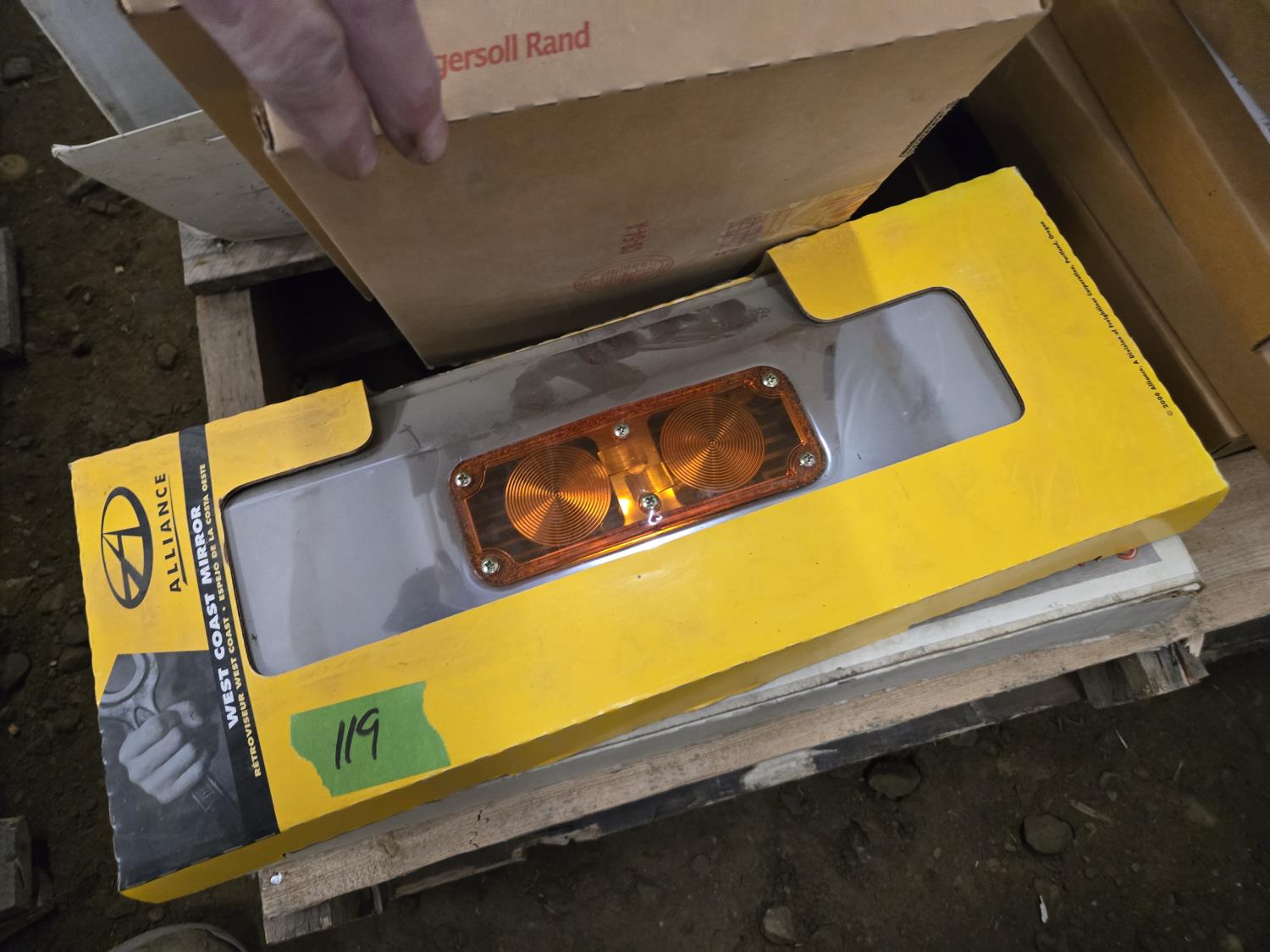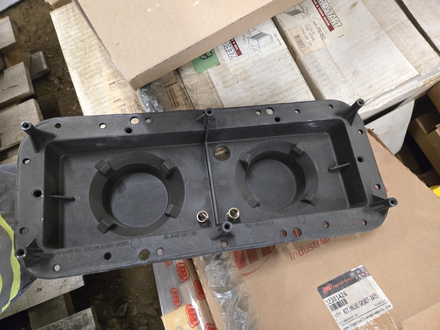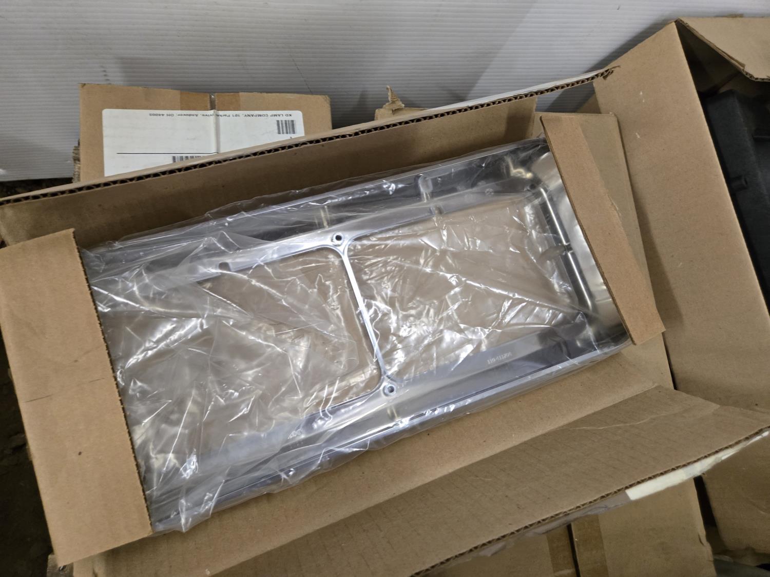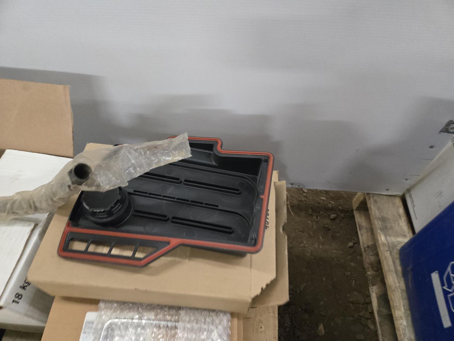 breather element covers, headlight retaining rings, (2) truck mirrors, headlight visor, (2) cab heaters, filter brackets, light fittings, miscellaneous parts
