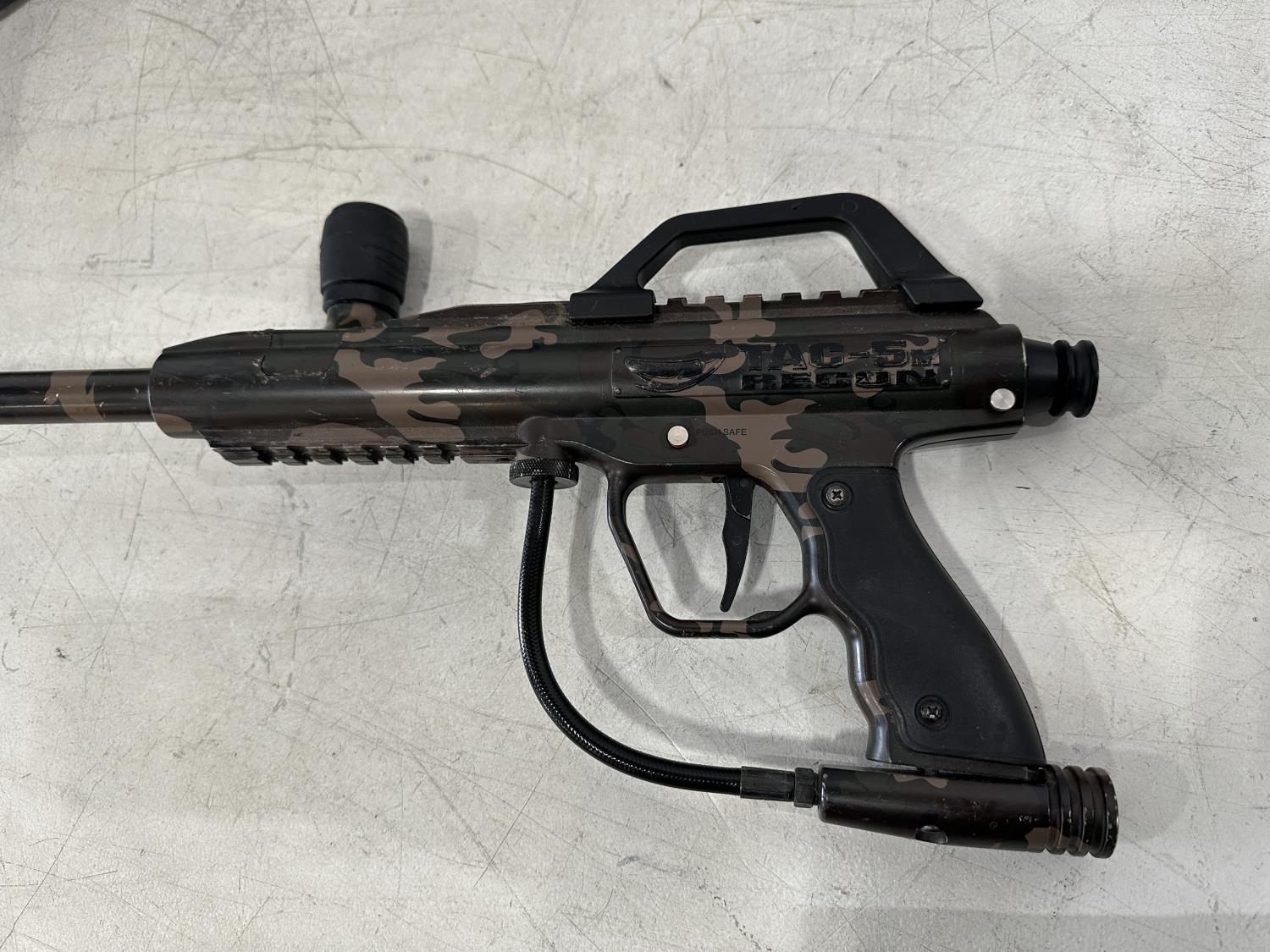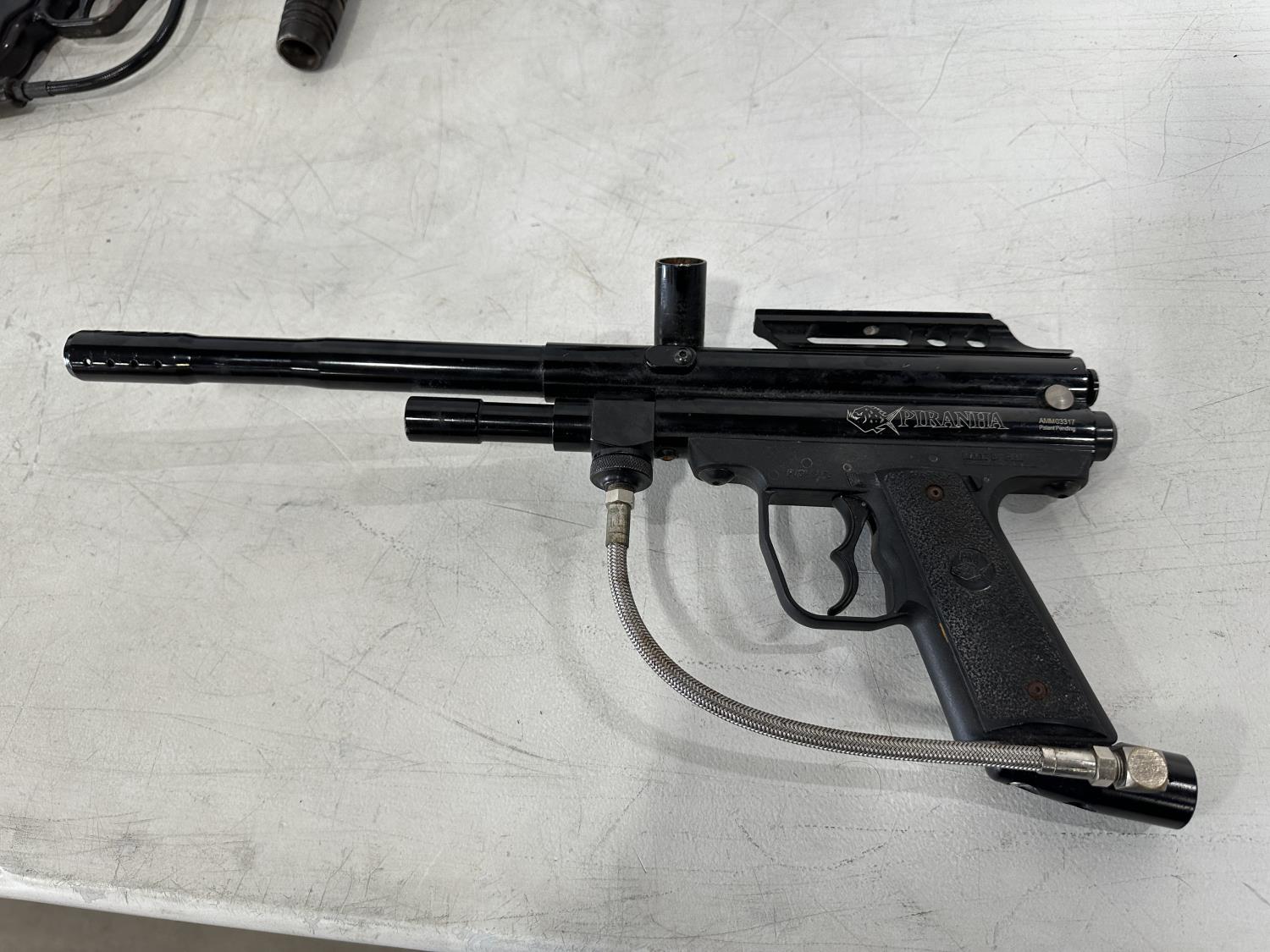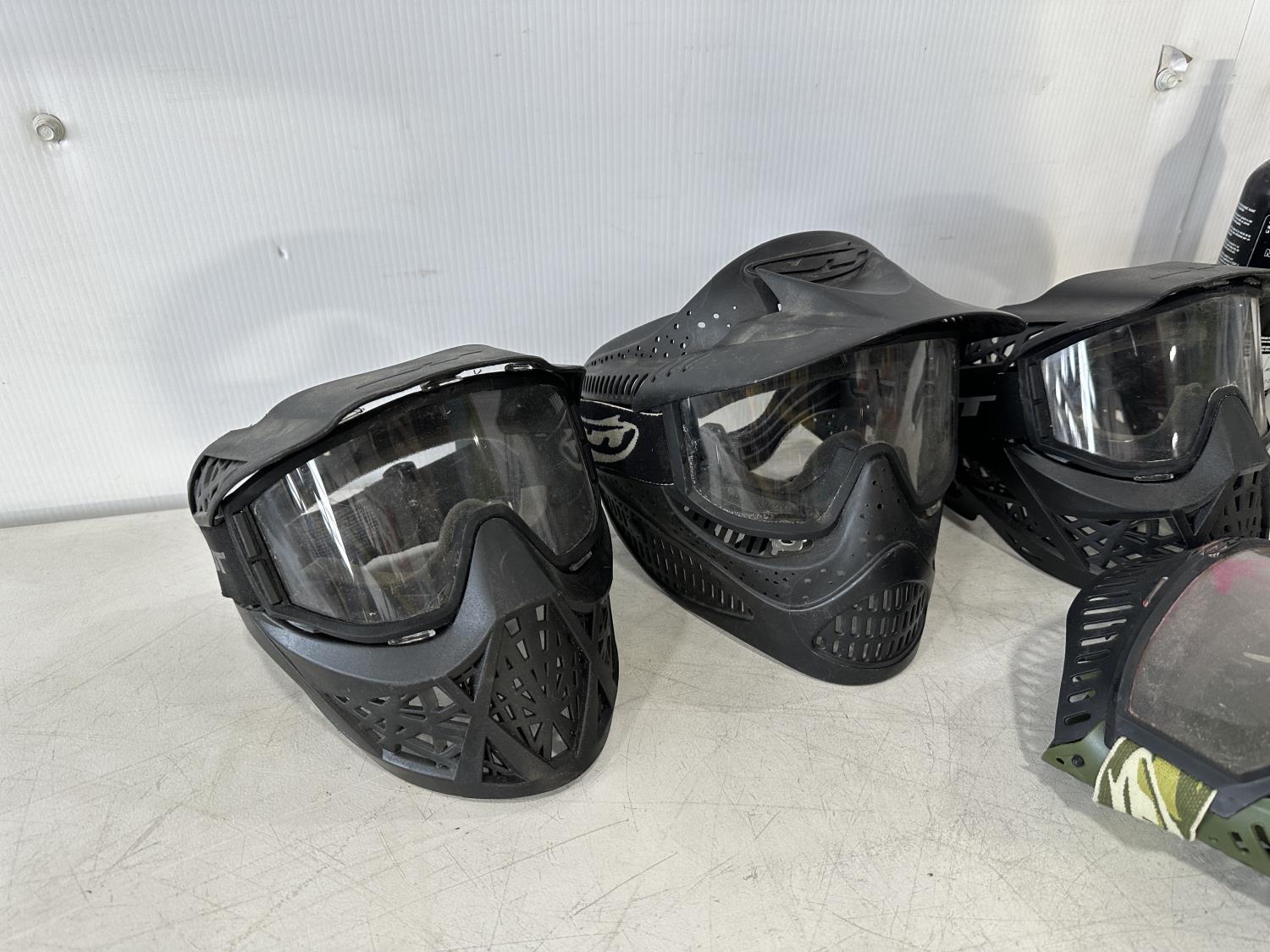 (2) paintball guns, (4) masks, (2) cylinders and (2) hoppers