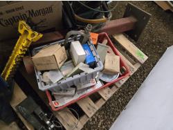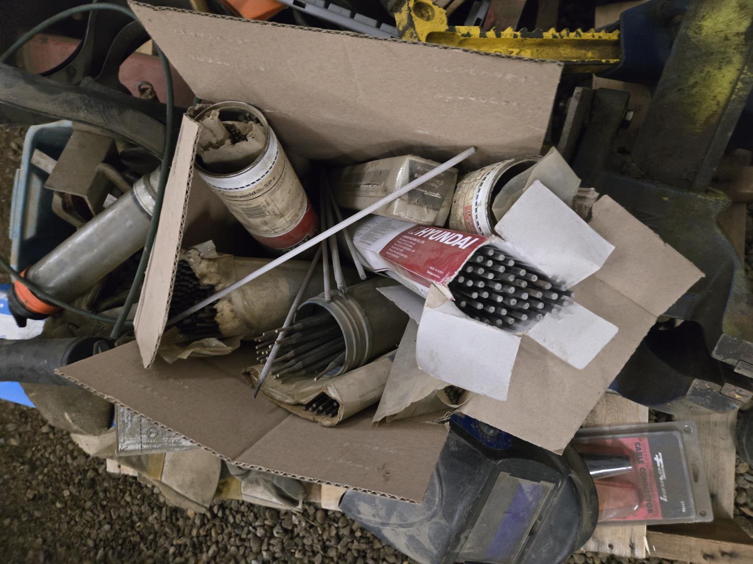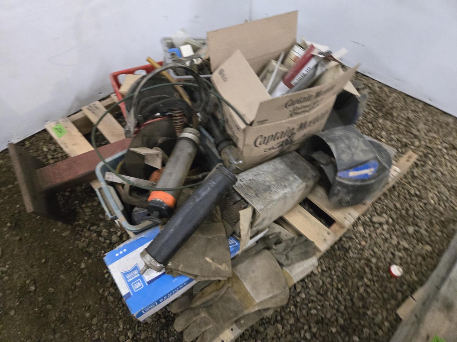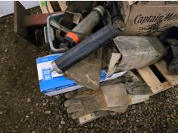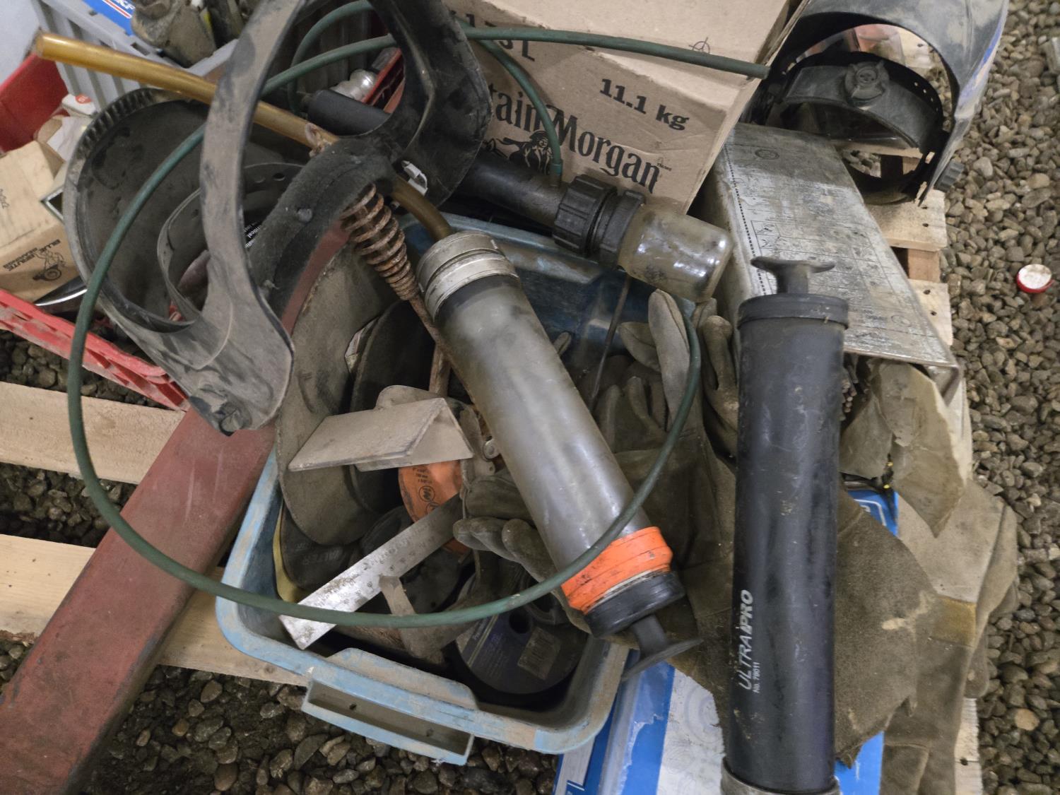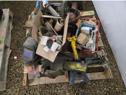 5 inch vise, 4 ton jack stand, gloves, cable connectors, welders helmet, miscellaneous parts and tools