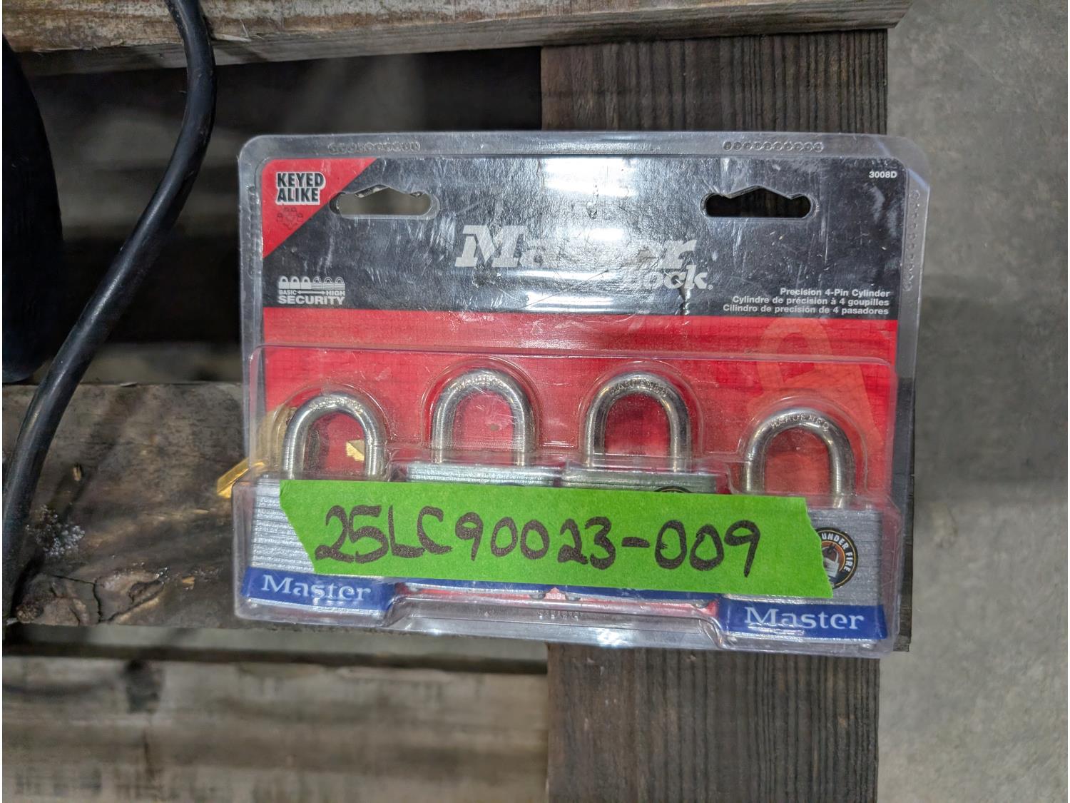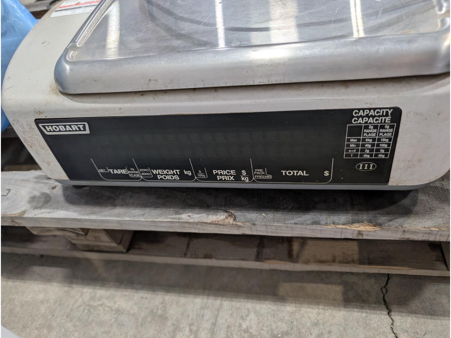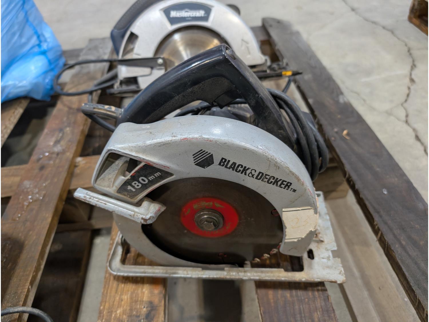 Hobart scale, polypropylene disposable coveralls, disposable boots, Master locks, (2) 7-1/4 inch circular saws