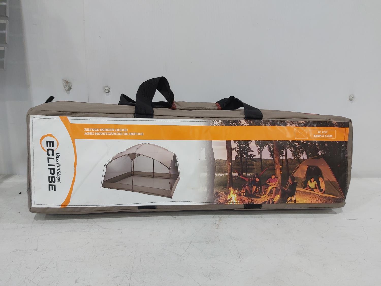 1209 Bass Pro Shops Eclipse Refuge 12 Ft X 10 Ft Screen House and Lightweight Folding Table
