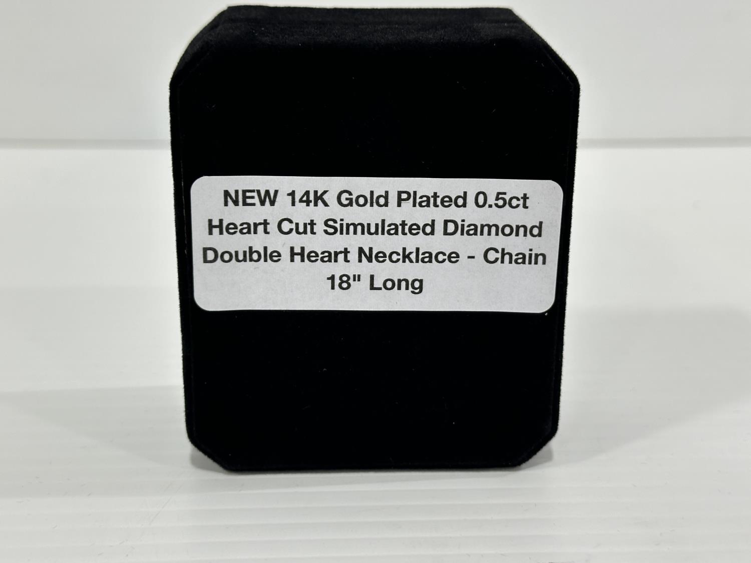 1479 Smartlife 14K Gold Plated 0.5 Ct Heart Cut Simulated Diamond Double Heart Necklace (Unused)